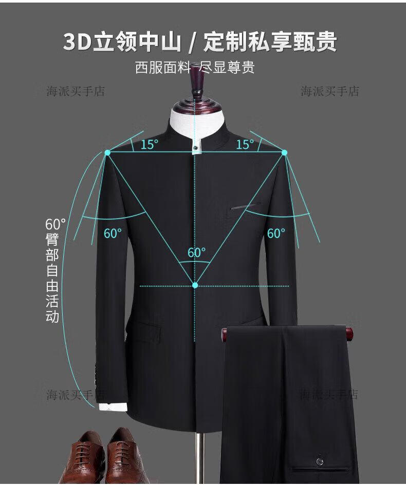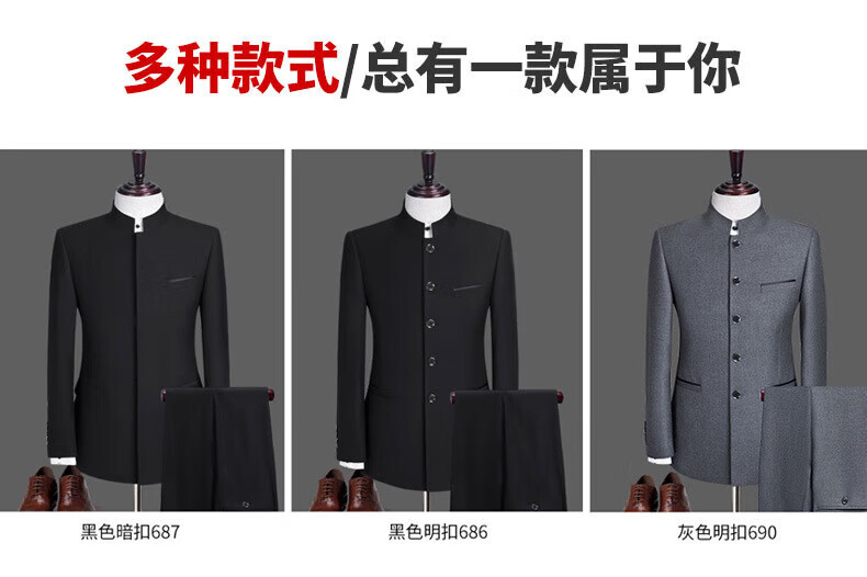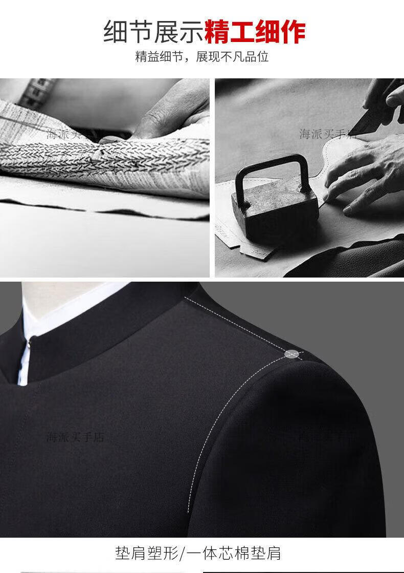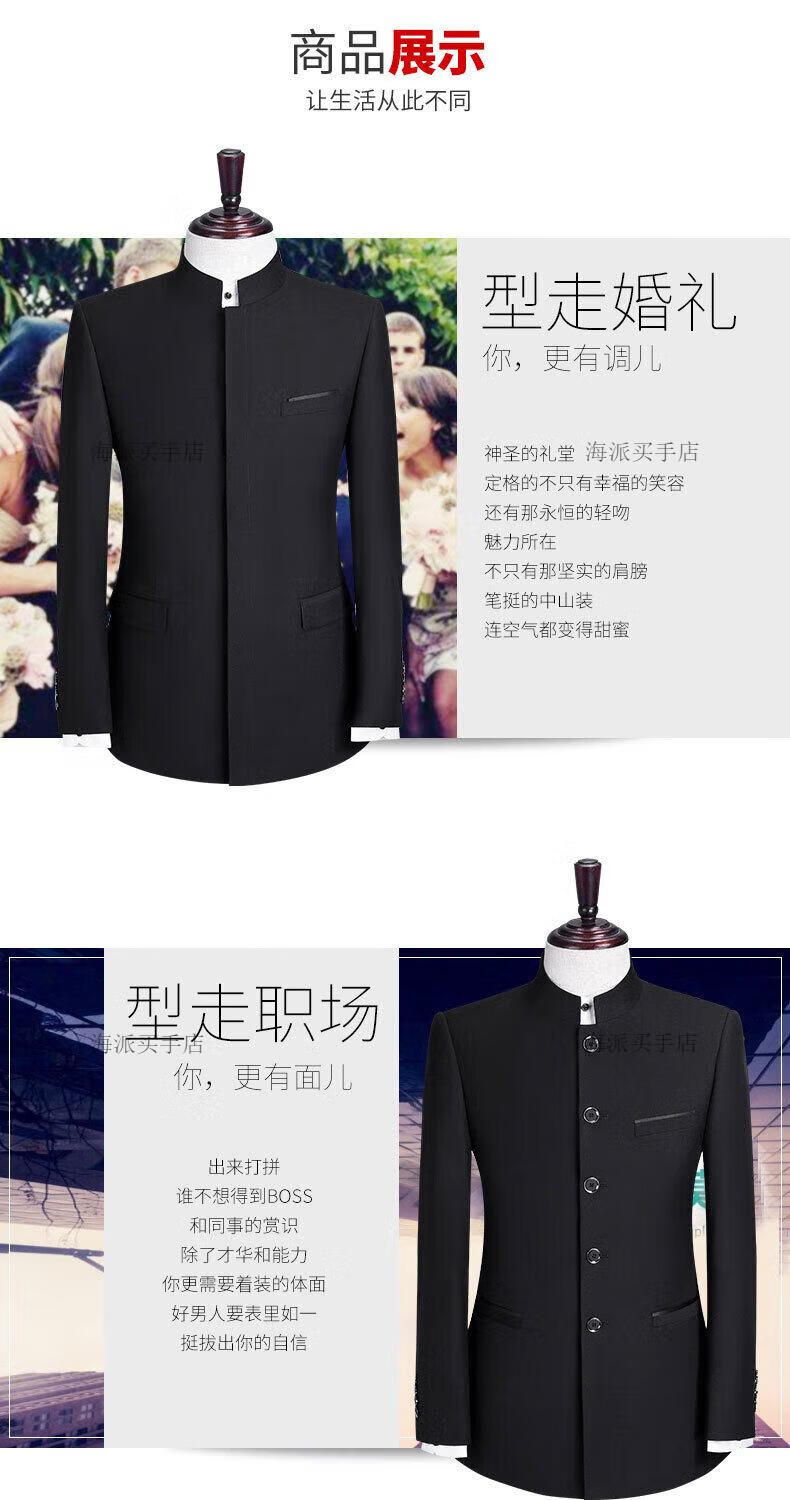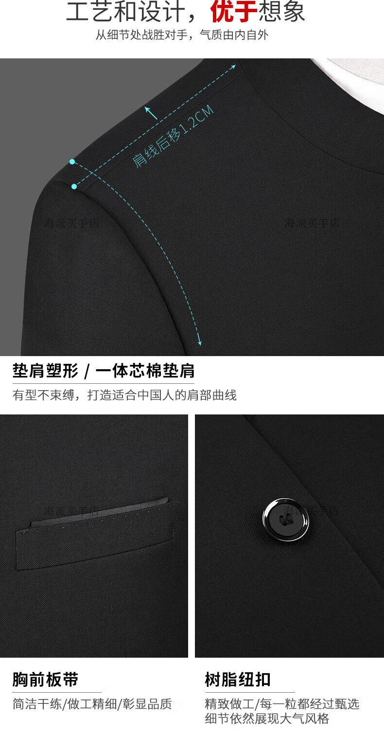 SUSTYLE luxury high-end brand men's high-end Chinese tunic suit men's Chinese stand-up collar suit slim and versatile Chinese dress clothing hidden button black top + pants gift box 170/114 M