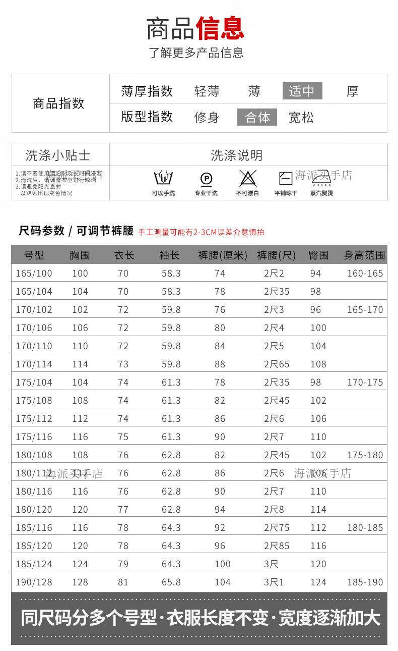 China (cm) 165 / 88-90 170 / 96-98 175 / 108-110 180 / 118-122 185 / 126-130