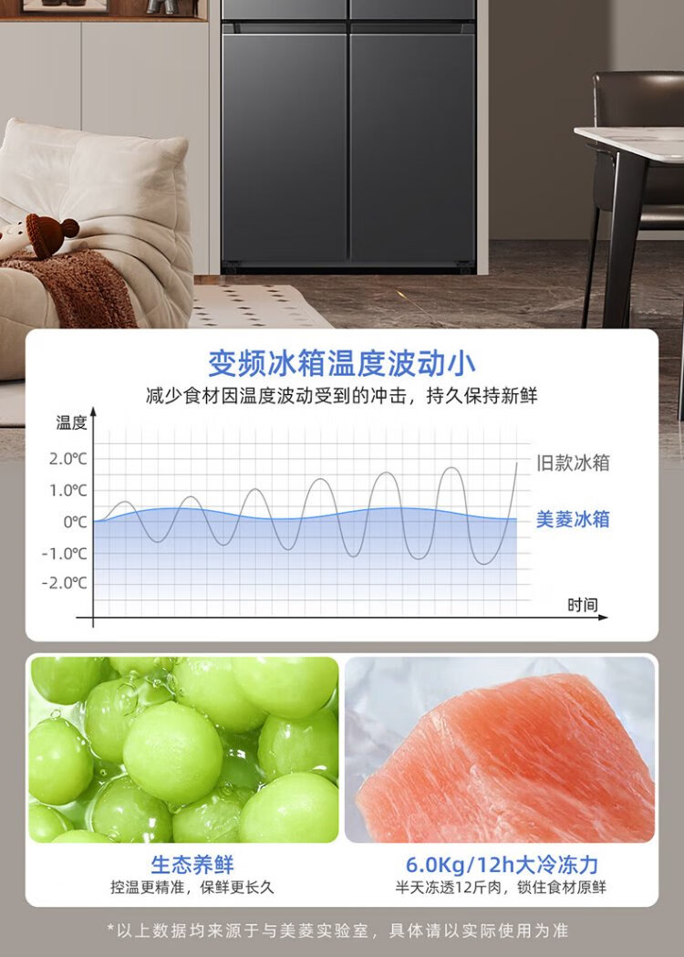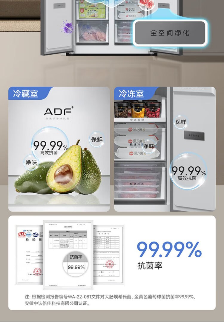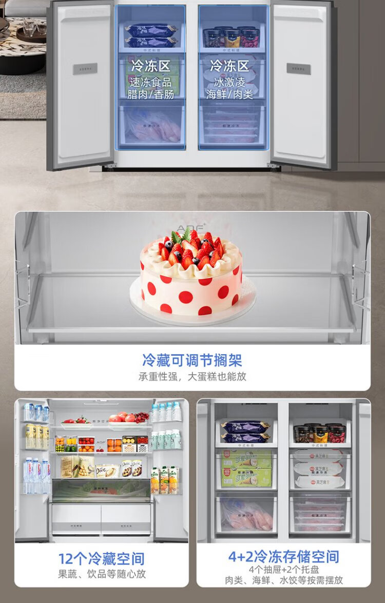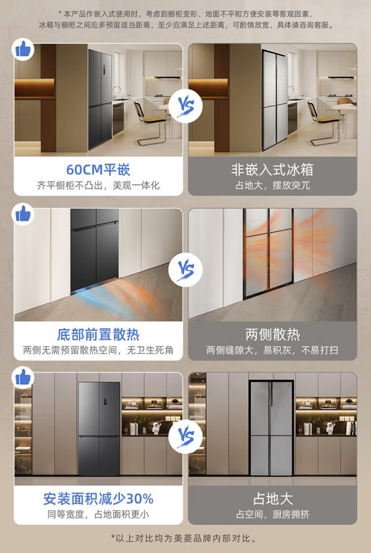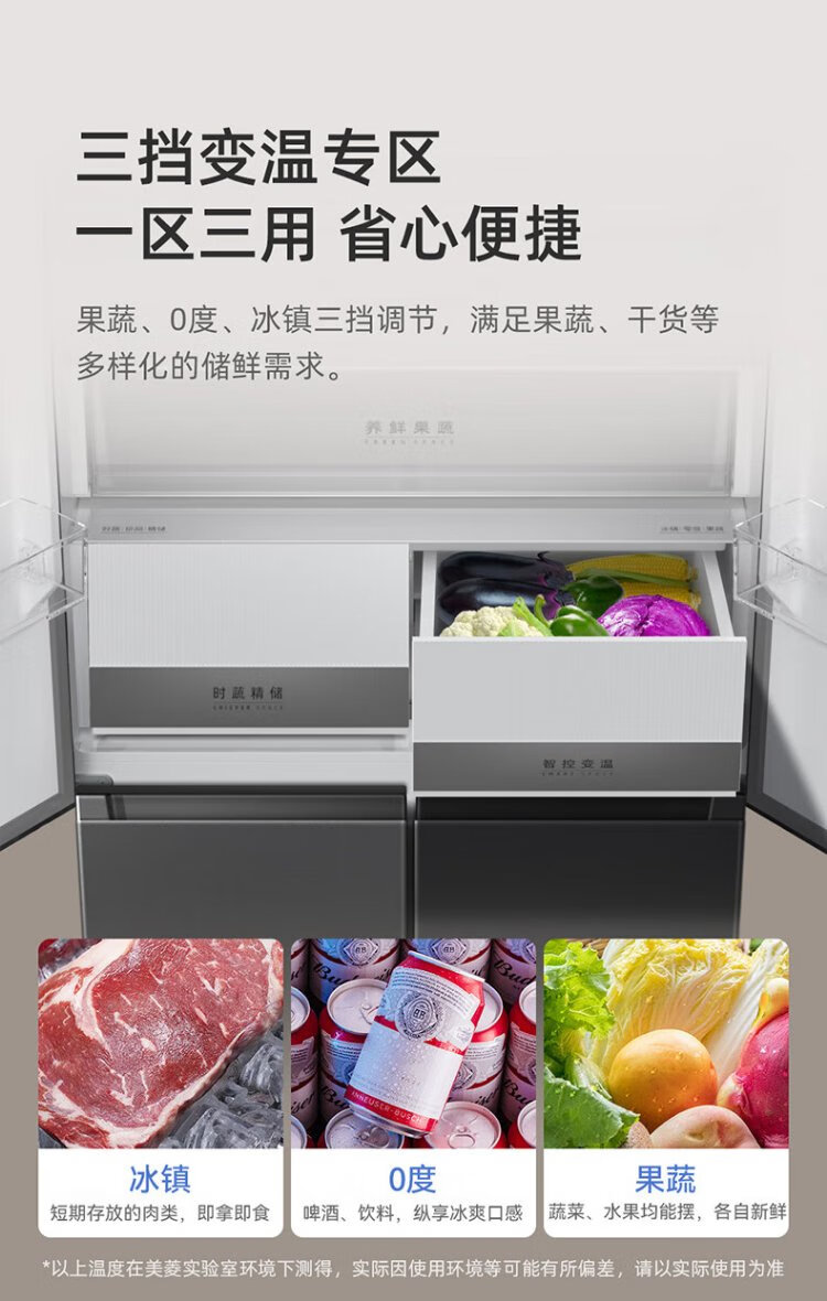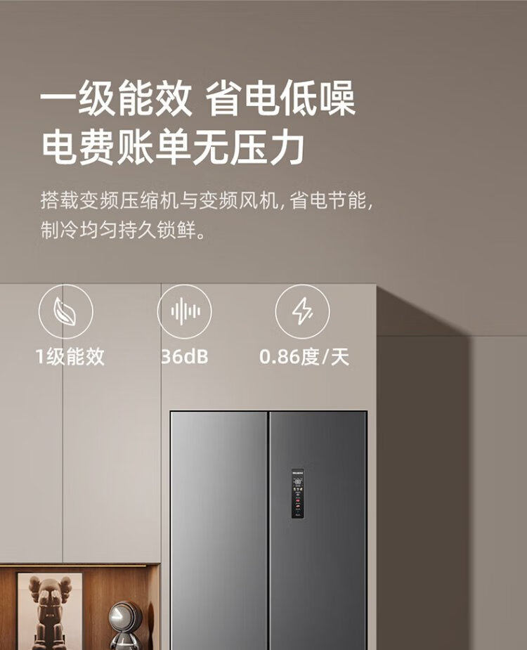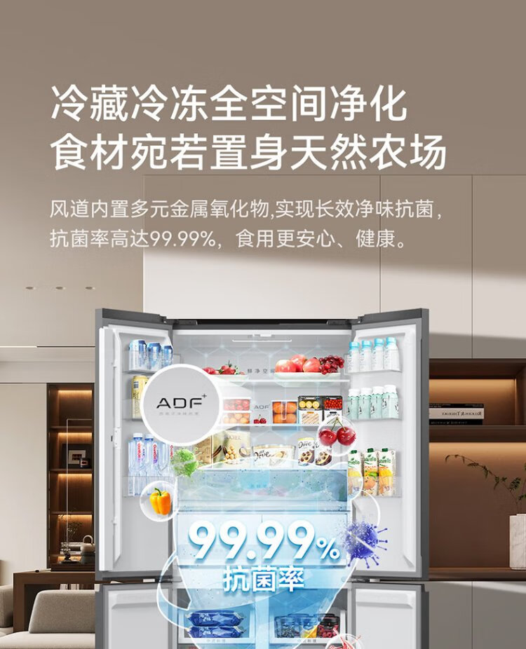 MeiLing worry-free built-in refrigerator 500 liters cross-door four-door household ultra-thin zero-level built-in 60cm first-class energy efficiency air-cooled frost-free large capacity net odor subsidy refrigerator BCD-500WP9CZX-Ya Yun Gray