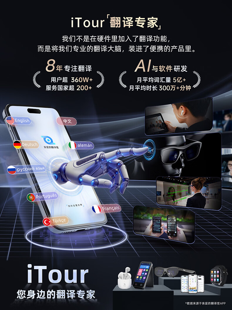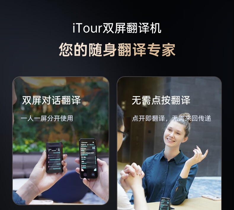Dear translator, iTour dual-screen translator, hundreds of languages, real-time online translation, offline translation, dialogue translation artifact, traveling abroad, studying in Chinese and English, dual-screen detachable iTour dual-screen translator