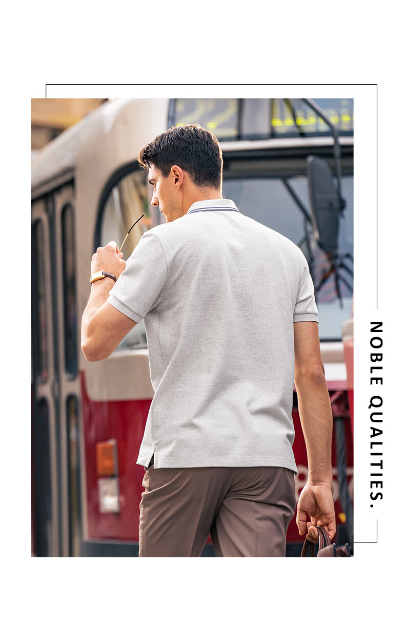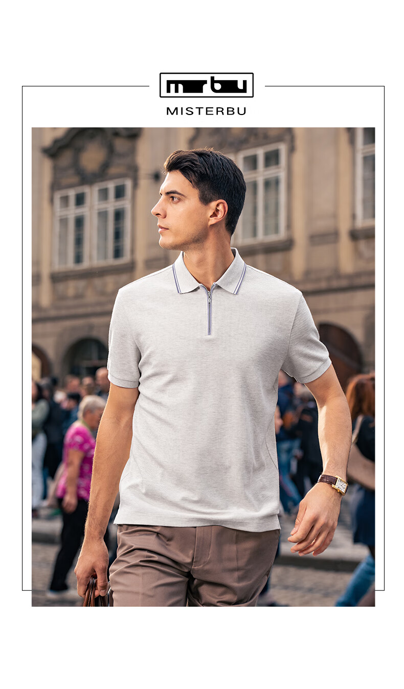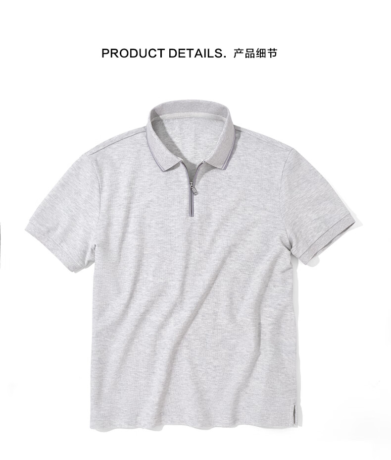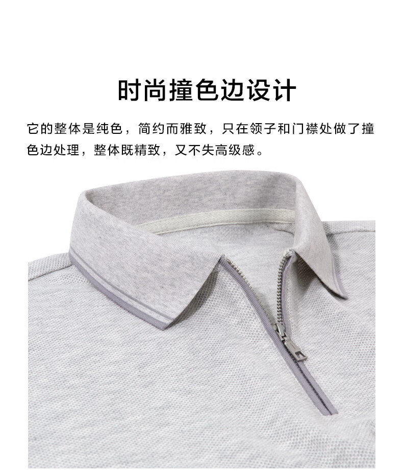 Mr. Bu's fashionable contrasting color zipper fly POLO shirt for men in summer pure cotton moisture-wicking short-sleeved AT16062 off-size clearance Volcanic Ash XL (180)
