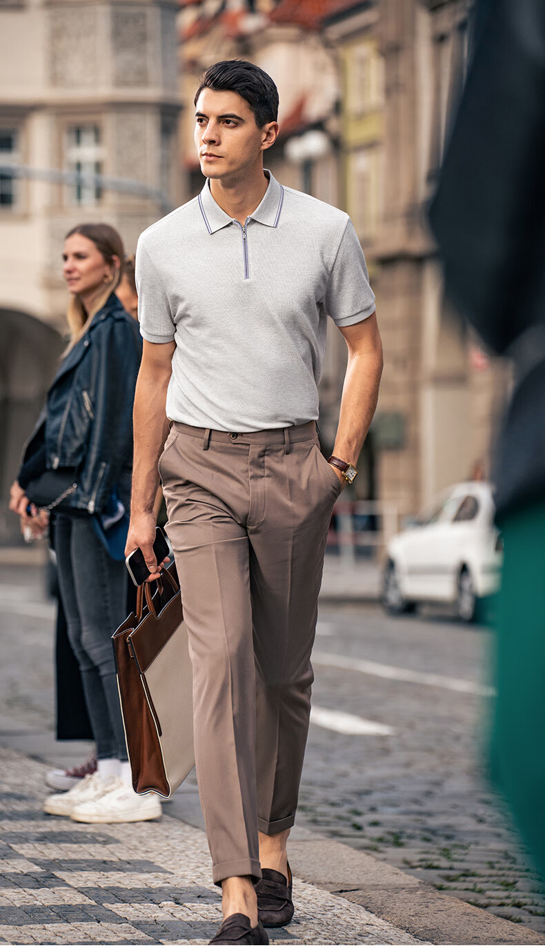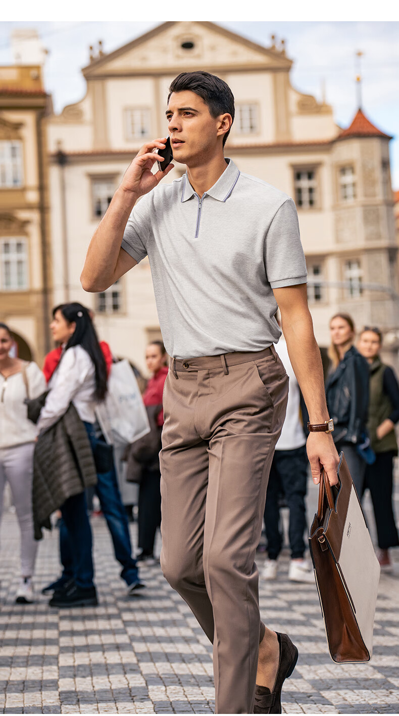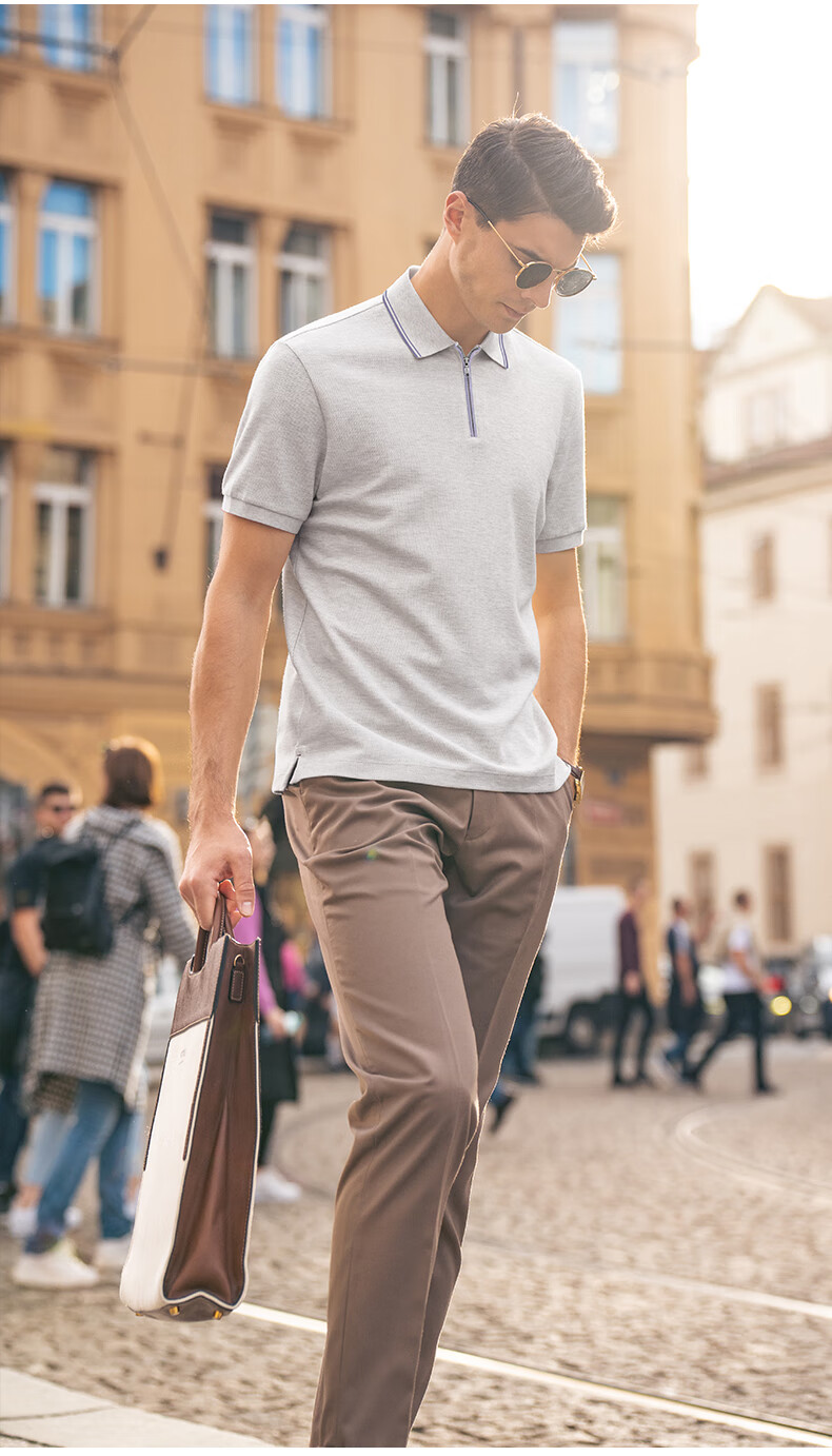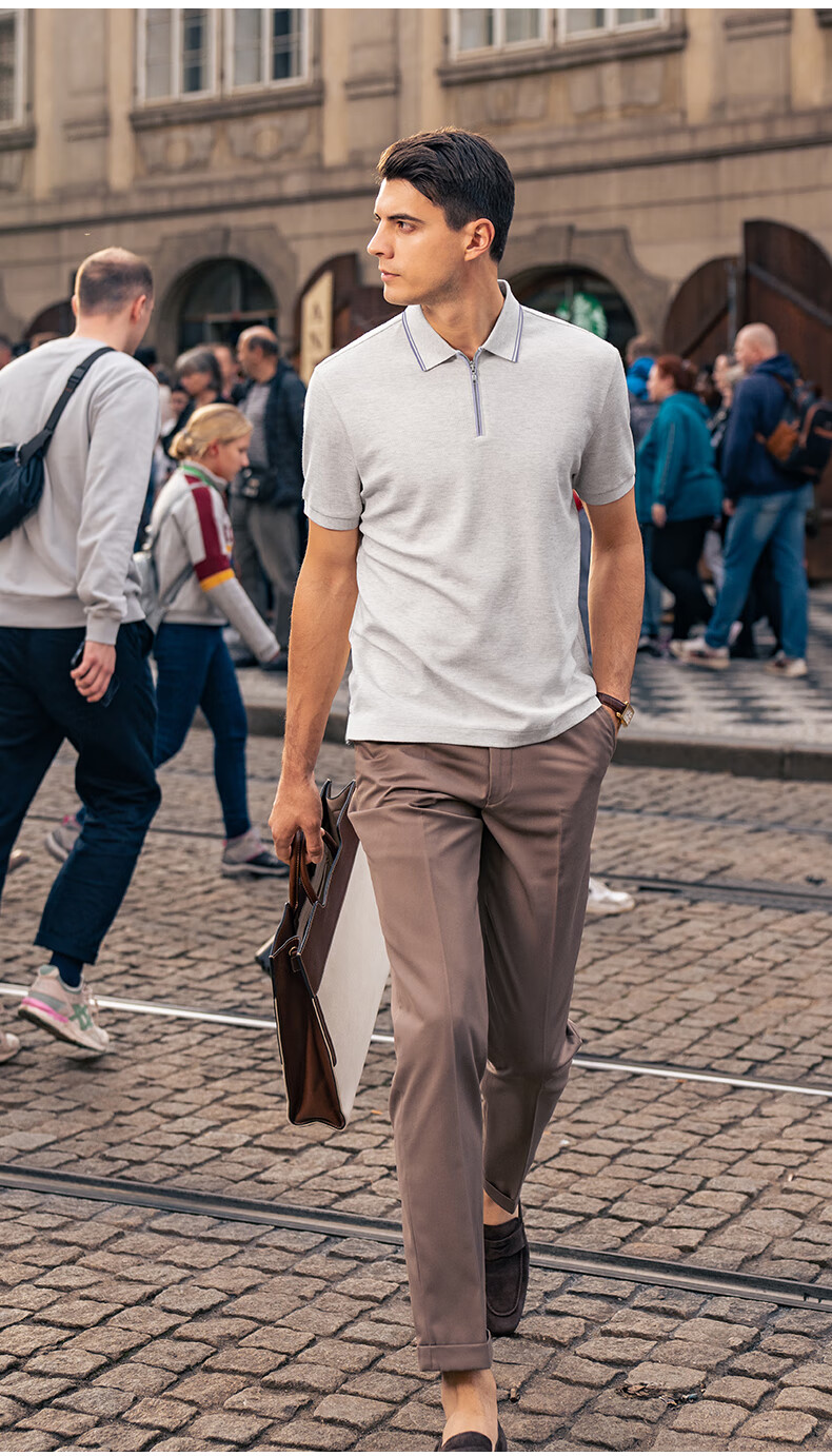 Mr. Bu's fashionable contrasting color zipper fly POLO shirt for men in summer pure cotton moisture-wicking short-sleeved AT16062 off-size clearance Volcanic Ash XL (180)