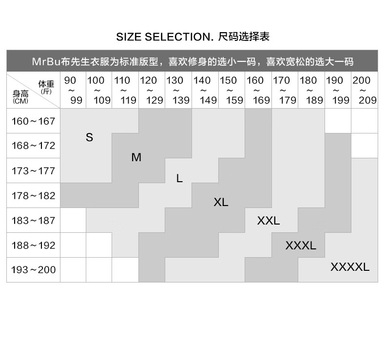 China (cm) 160-165/84-86 165-170 / 88-90 167-172 / 92-96 168-173 / 98-102 170-176 / 106-110