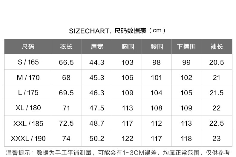China (cm) 165 / 88-90 170 / 96-98 175 / 108-110 180 / 118-122 185 / 126-130