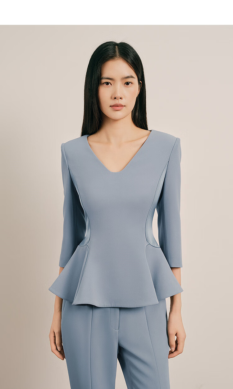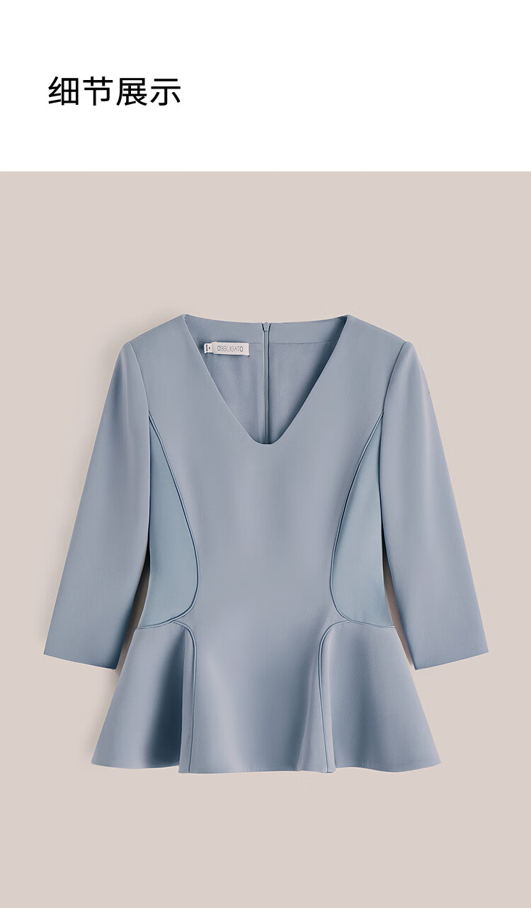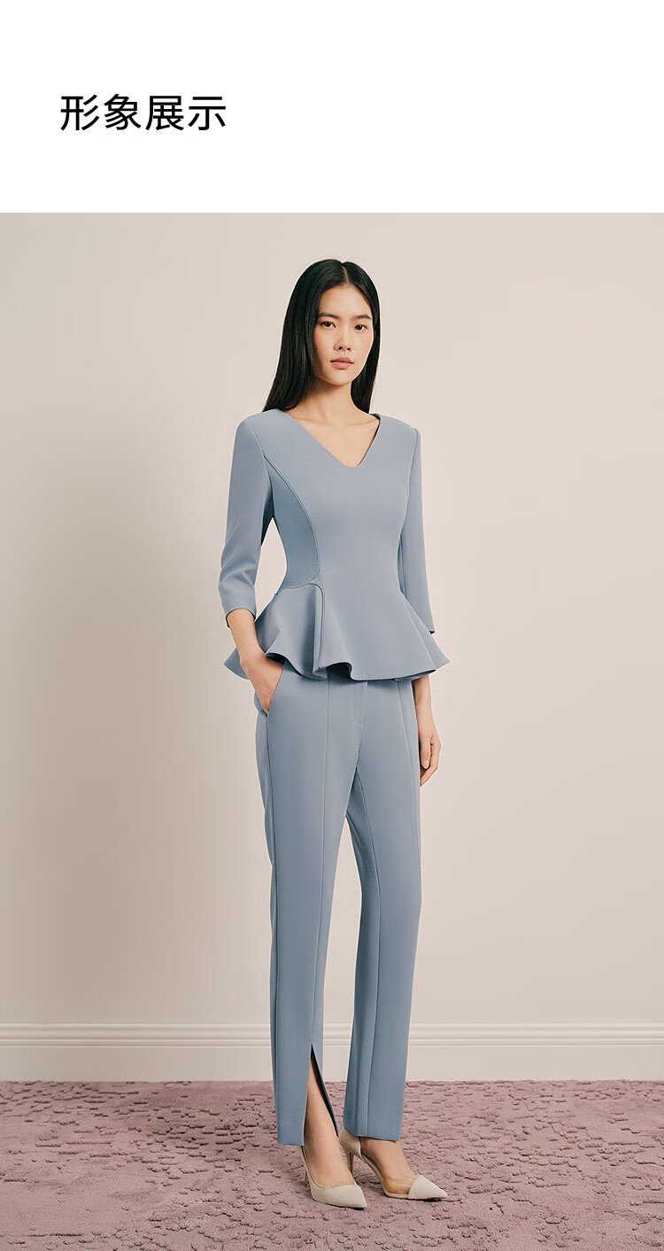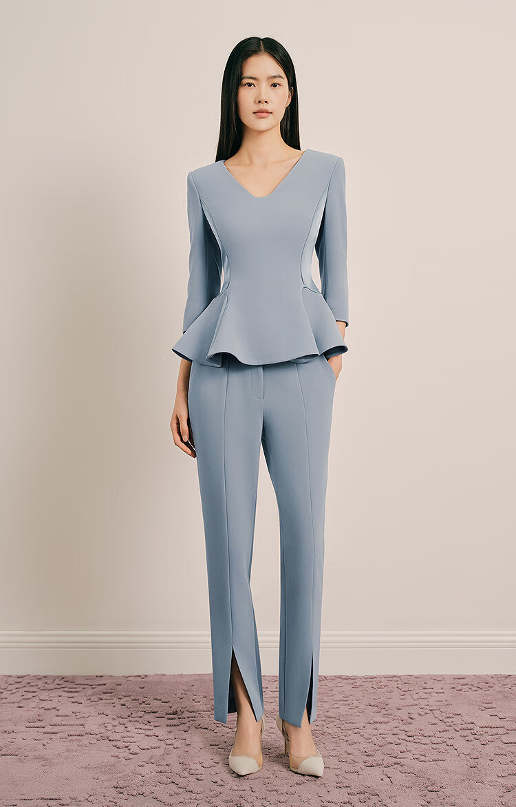 OBBLIGATO Olegato spring V-neck ruffled slim fit top women's pants lime blue L