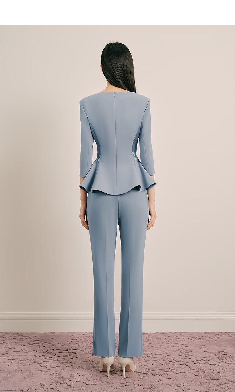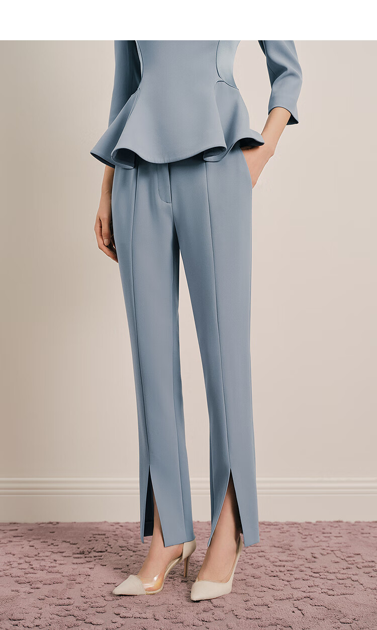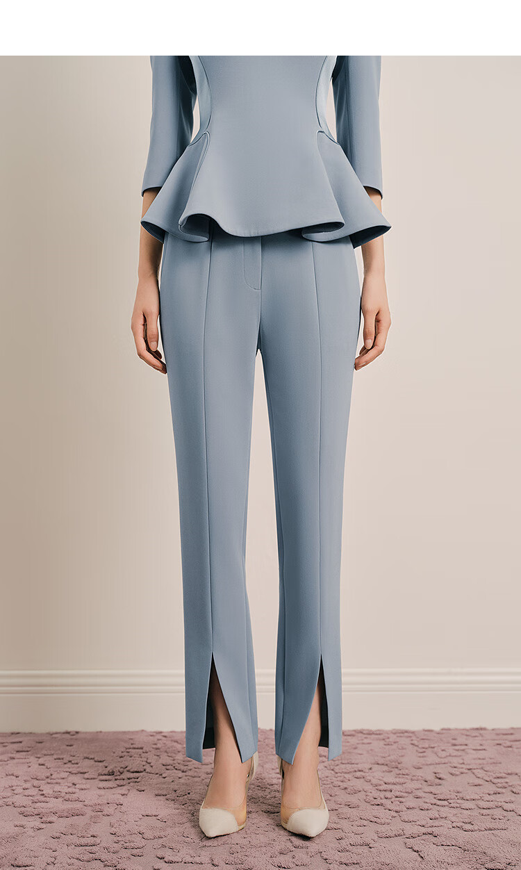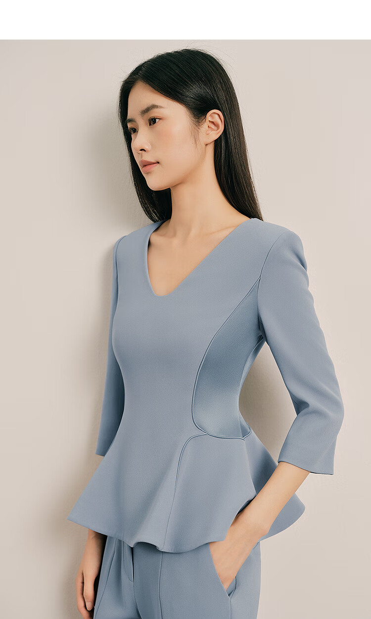 OBBLIGATO Olegato spring V-neck ruffled slim fit top women's pants lime blue L