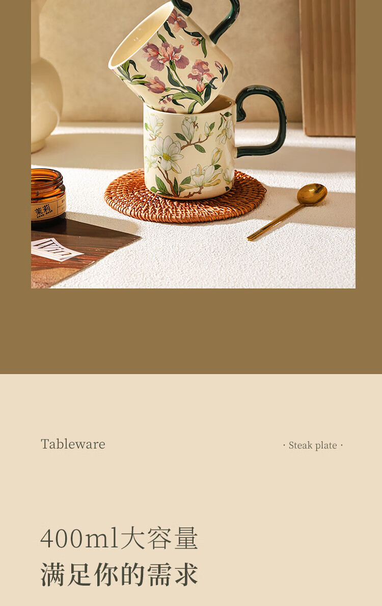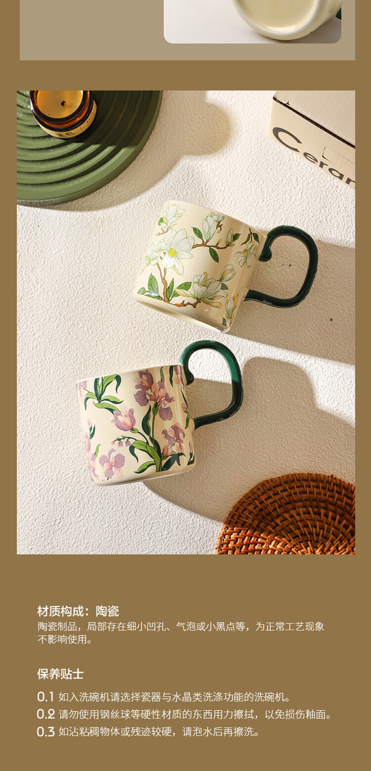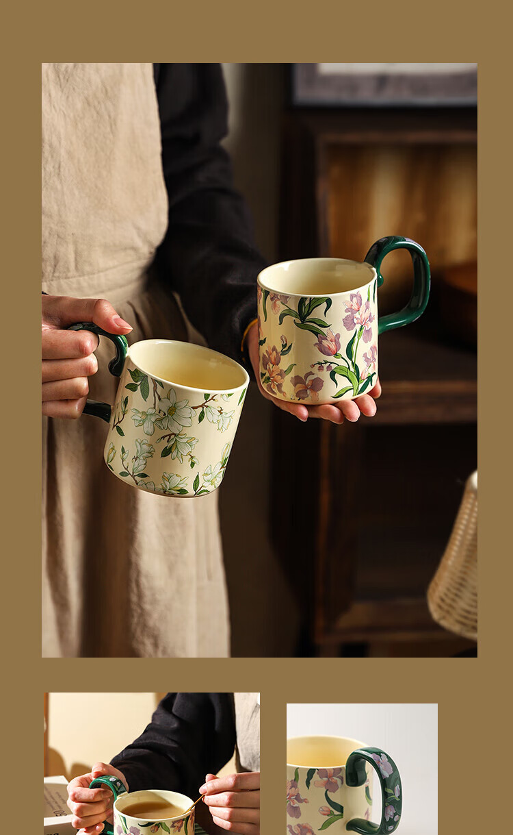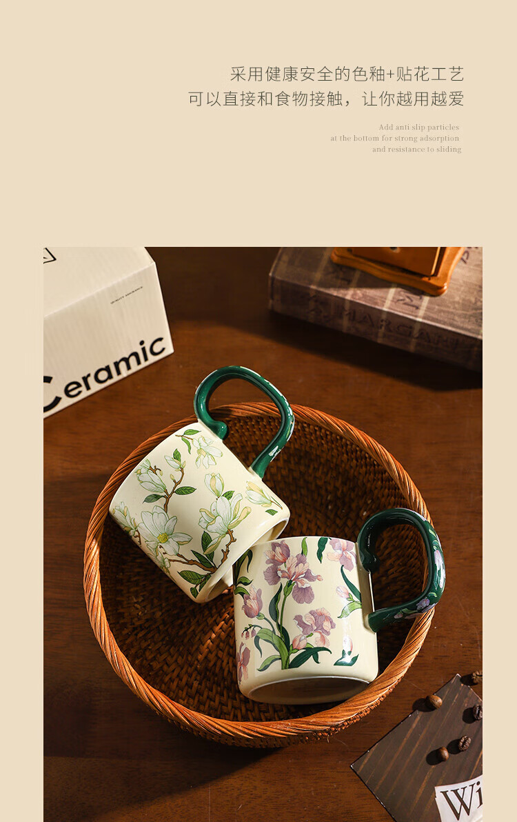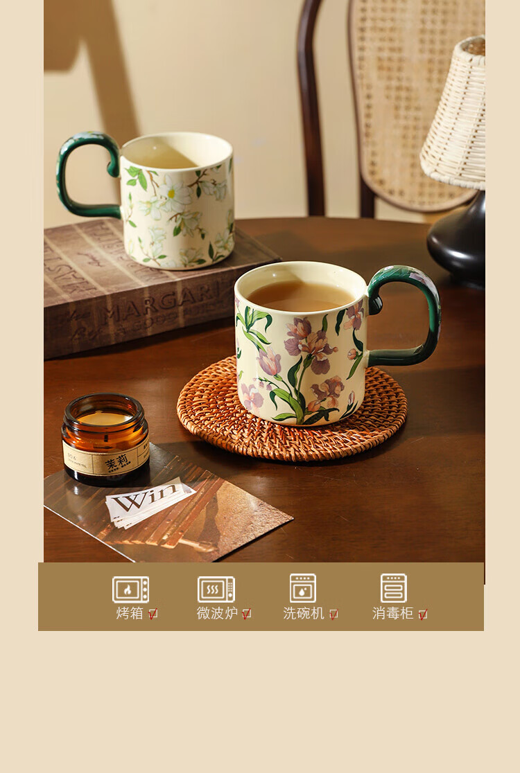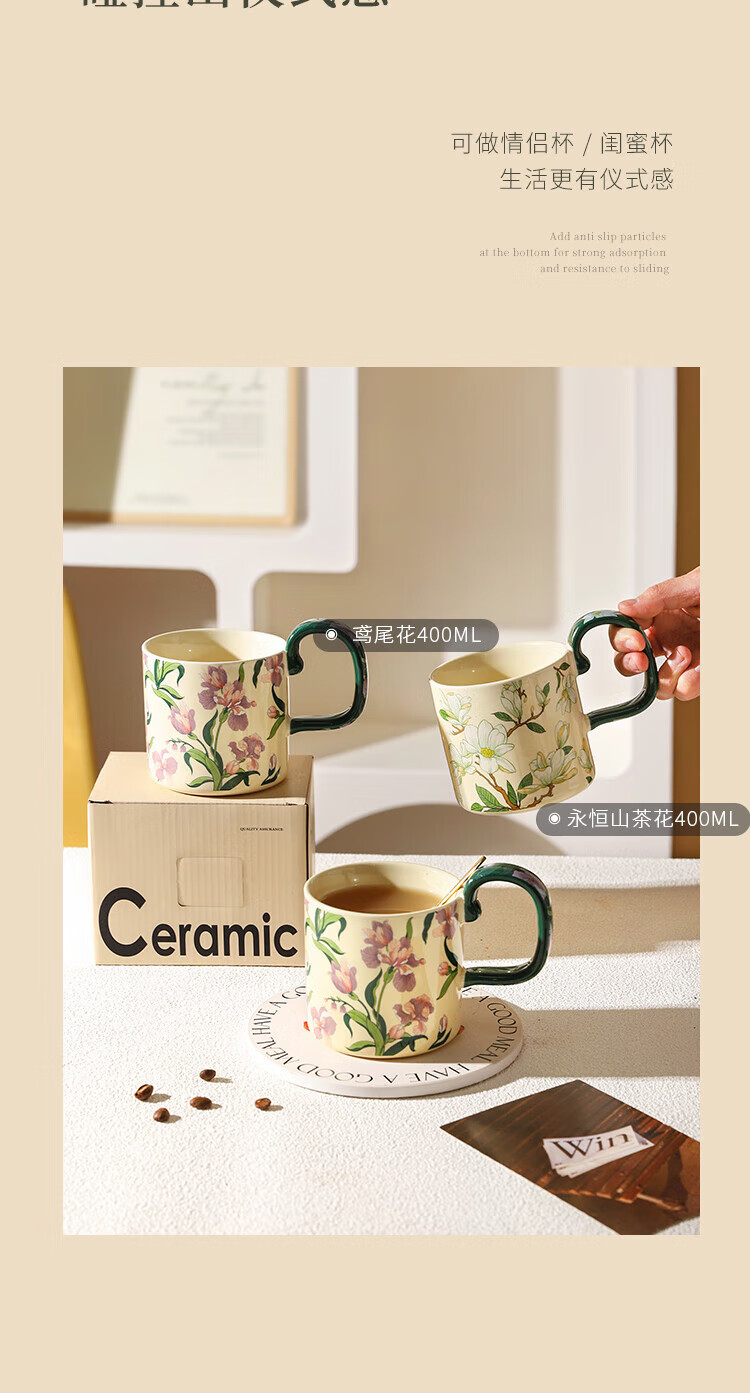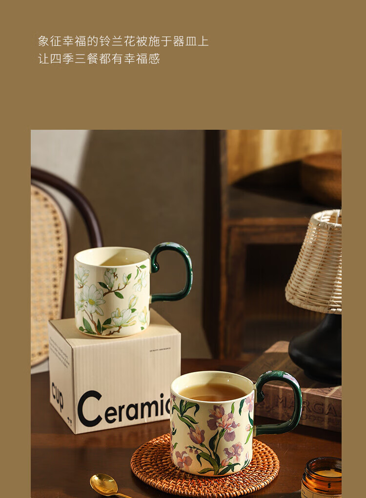 Sherry French retro ceramic couple mug niche coffee cup water cup girl high-looking office drinking cup Iris 400ML exquisite color box | can enter four machines