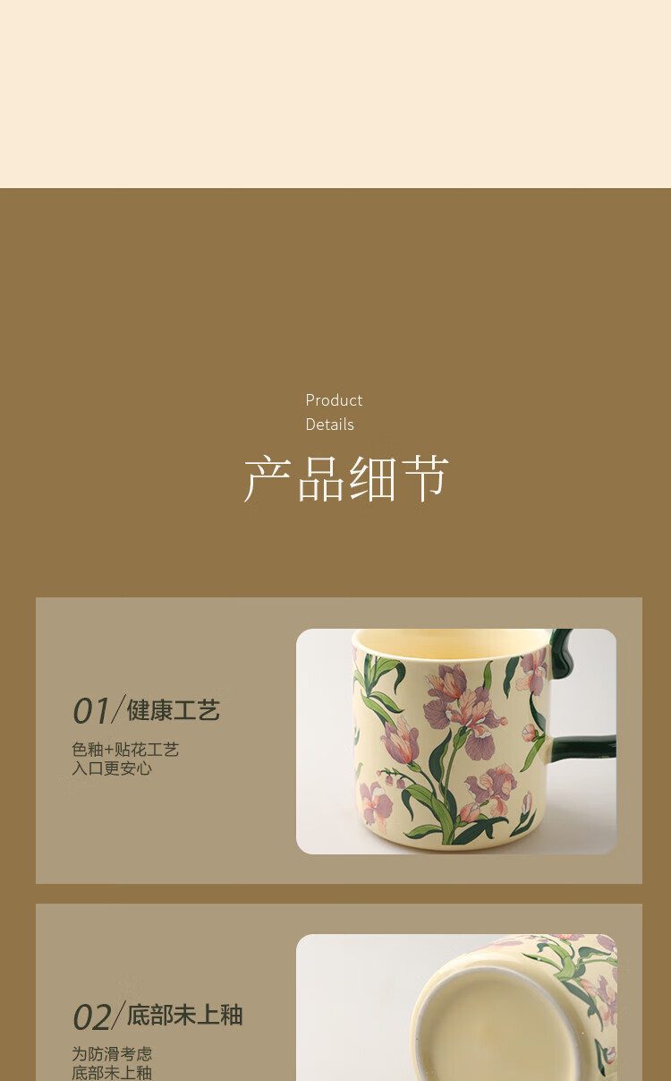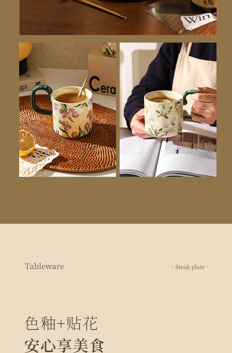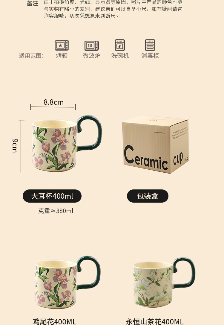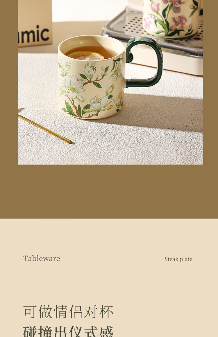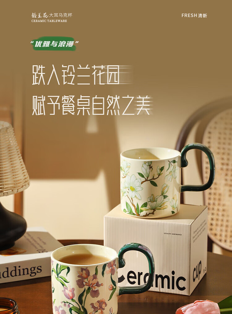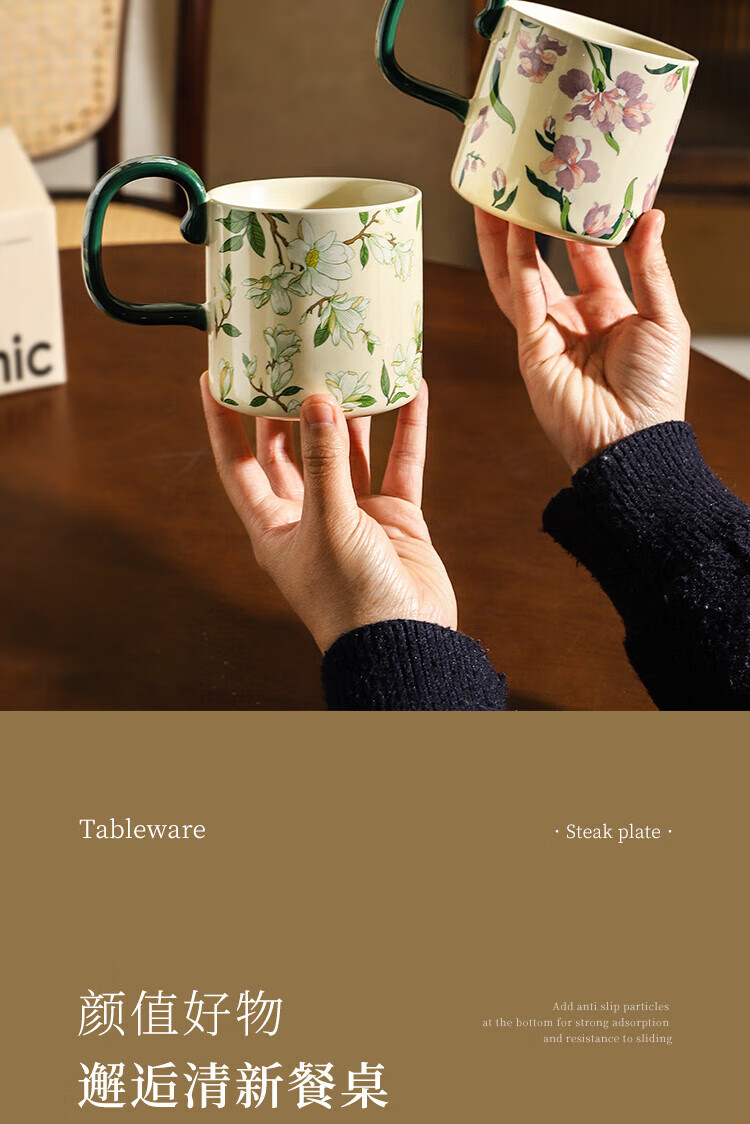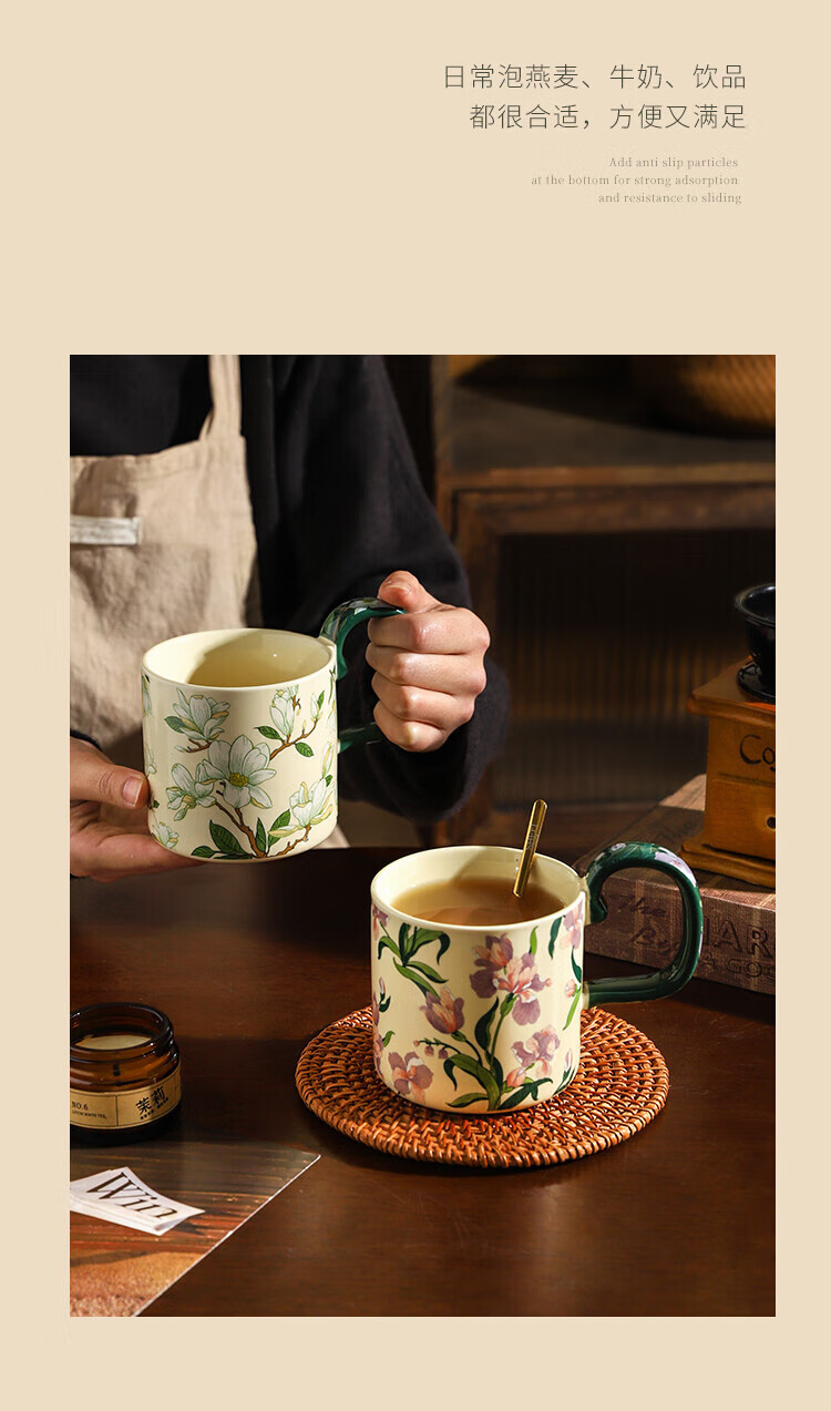 Sherry French retro ceramic couple mug niche coffee cup water cup girl high-looking office drinking cup Iris 400ML exquisite color box | can enter four machines