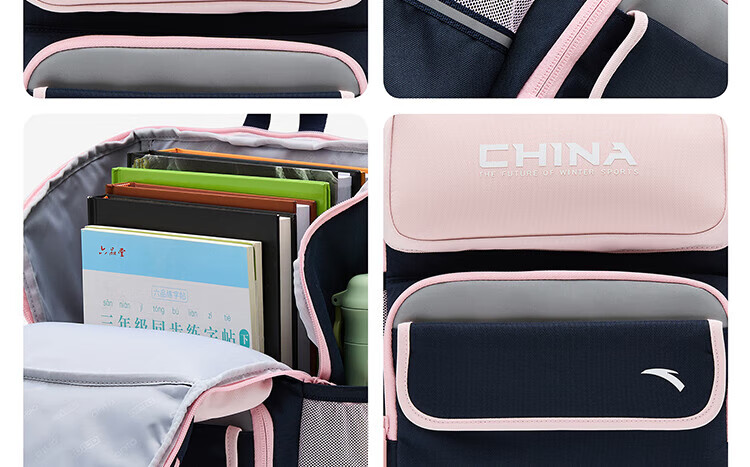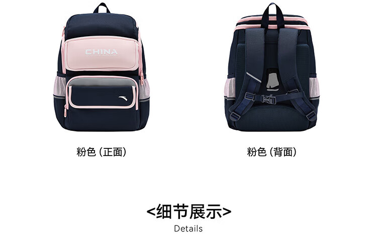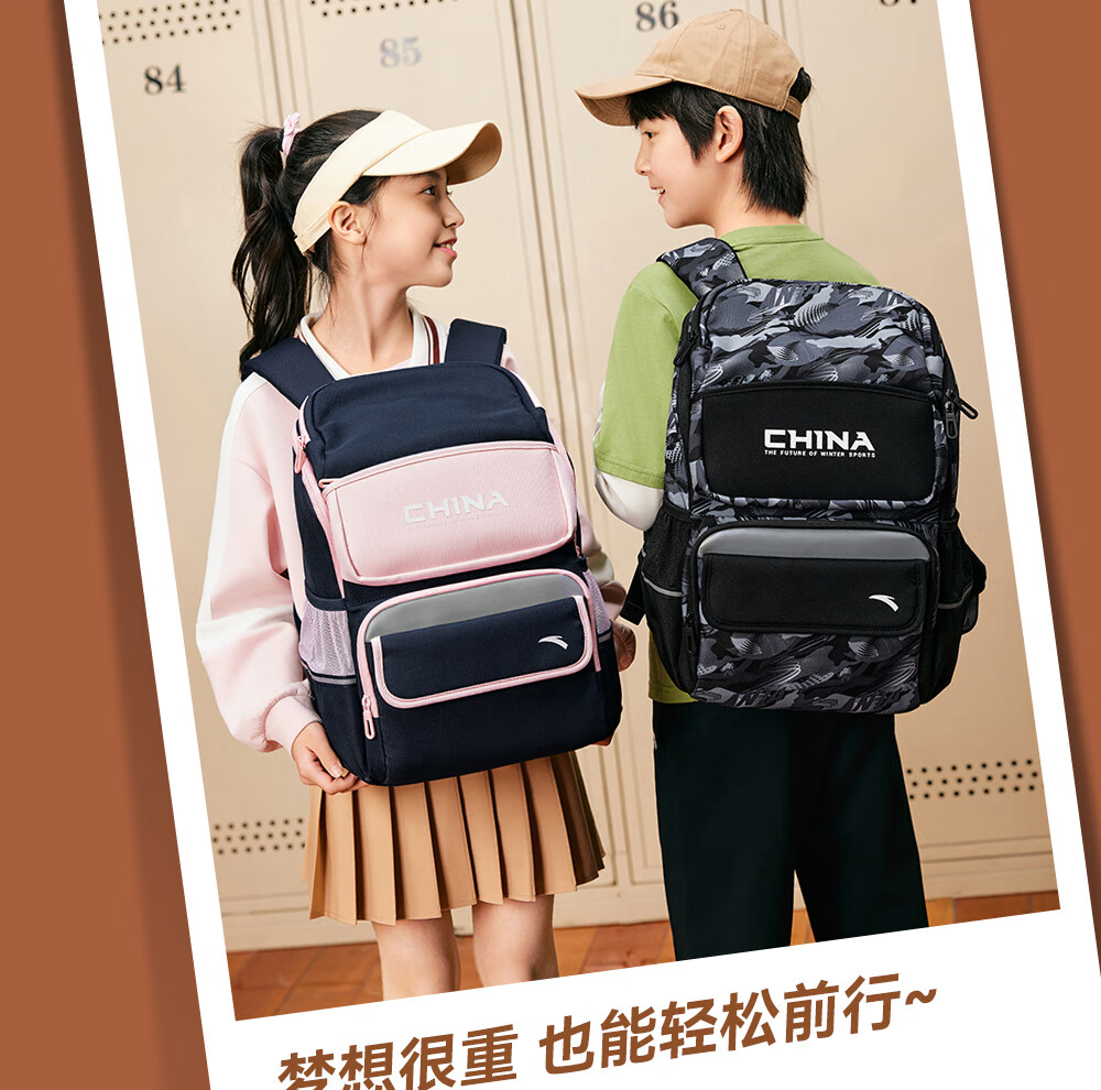 ANTA Children's School Bags Boys and Girls Backpacks 2025 Spring New Spine Protective Campus Primary School Students Large Capacity Backpack Pink-3 One Size