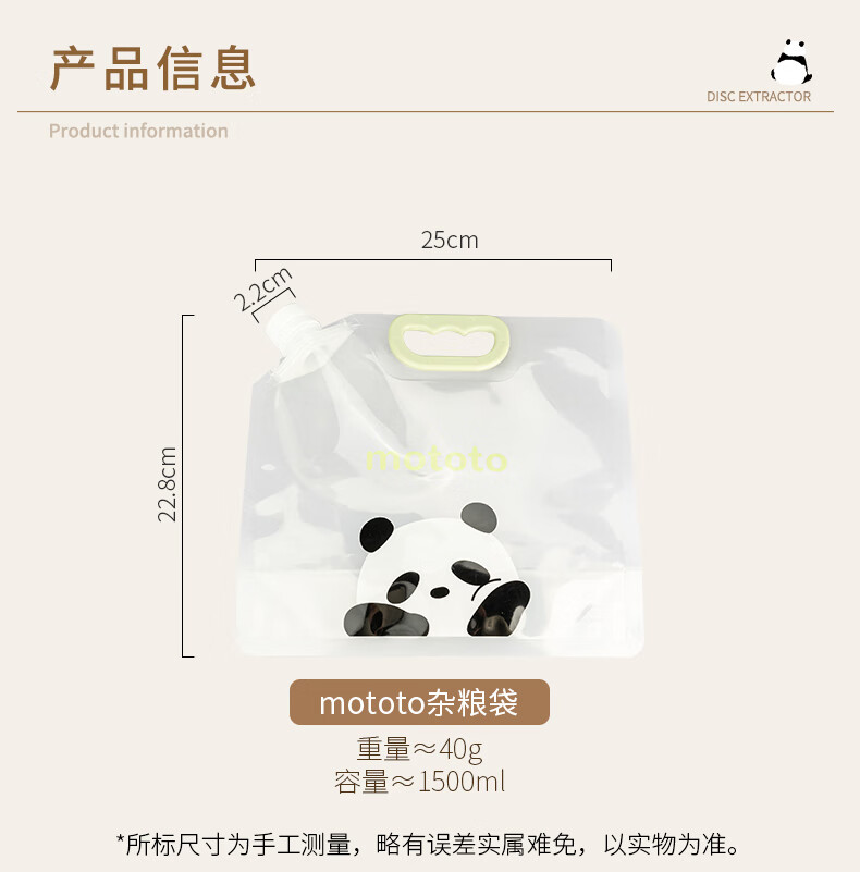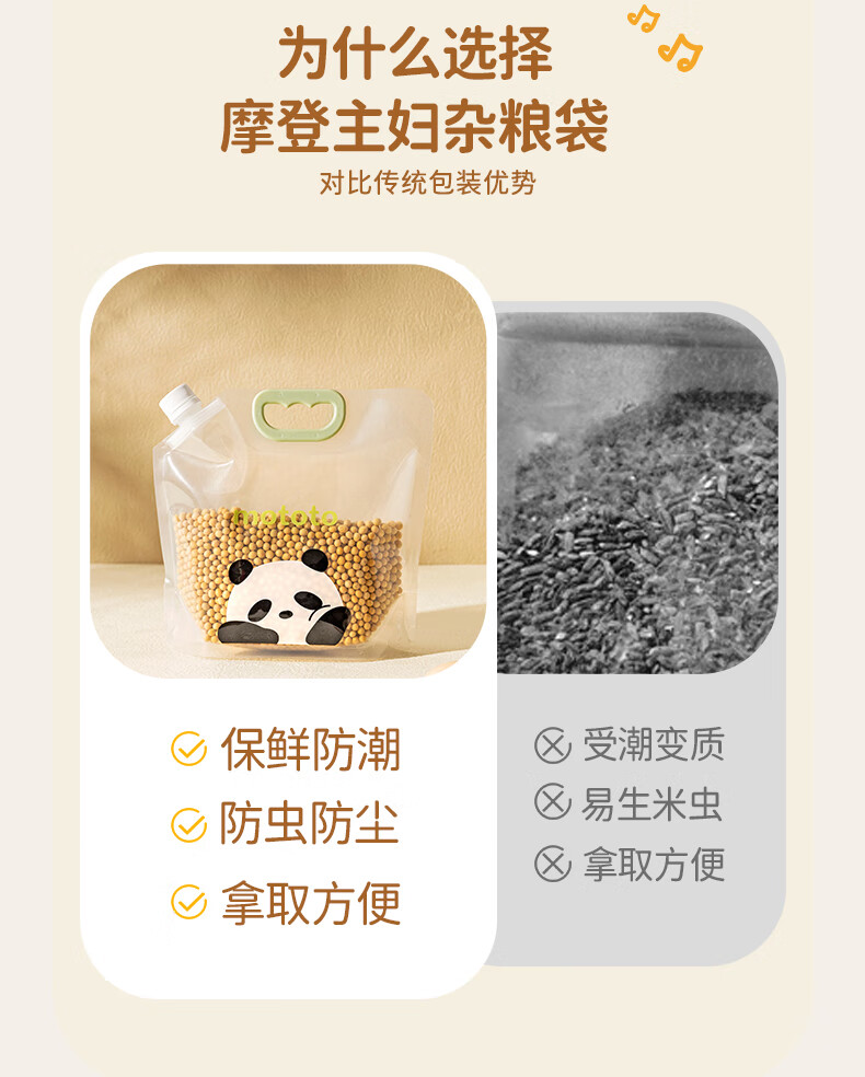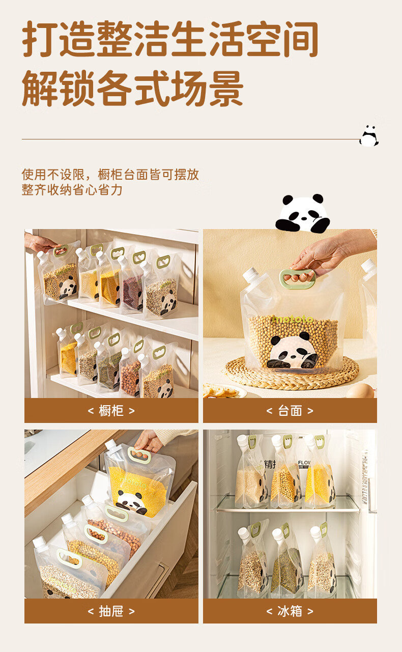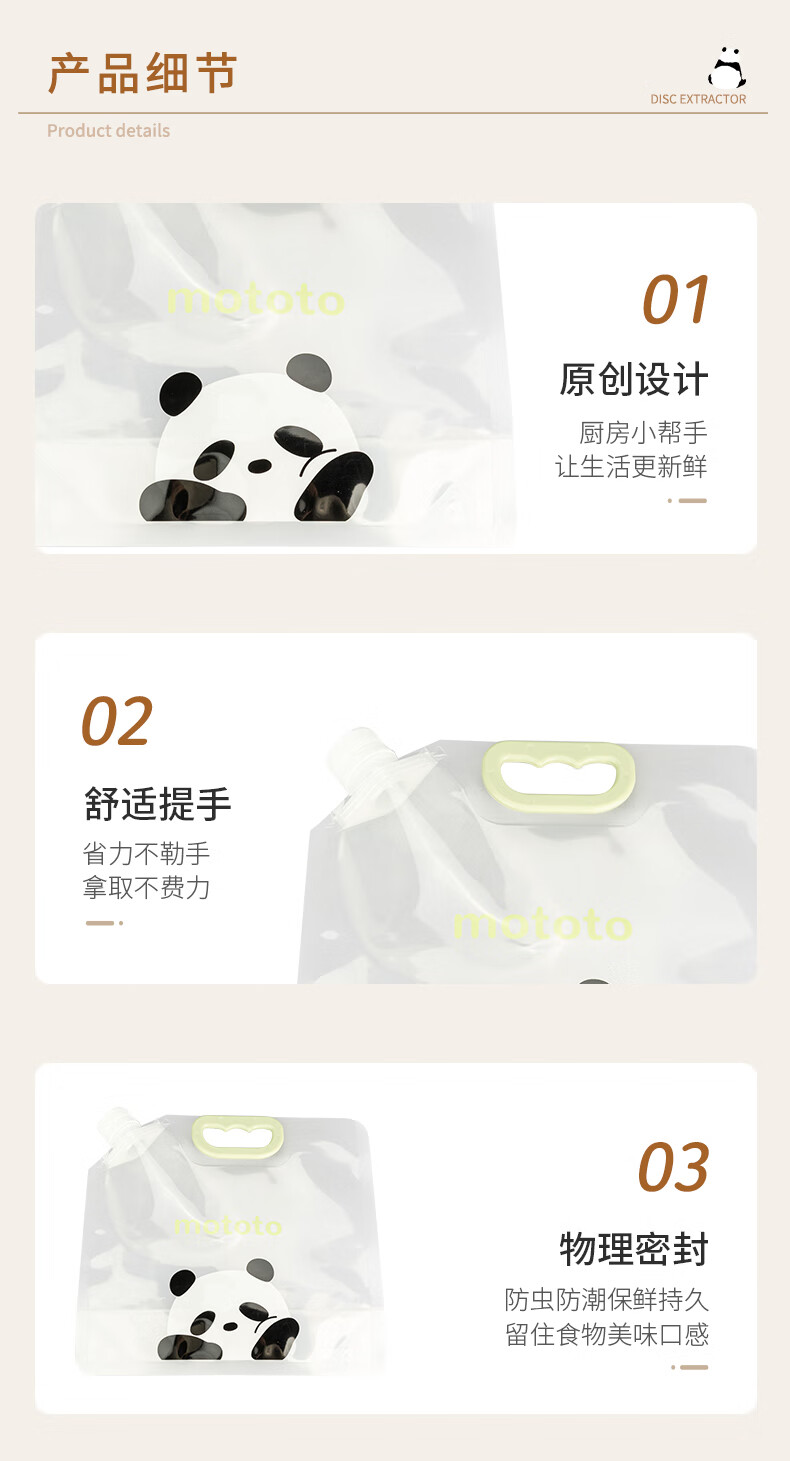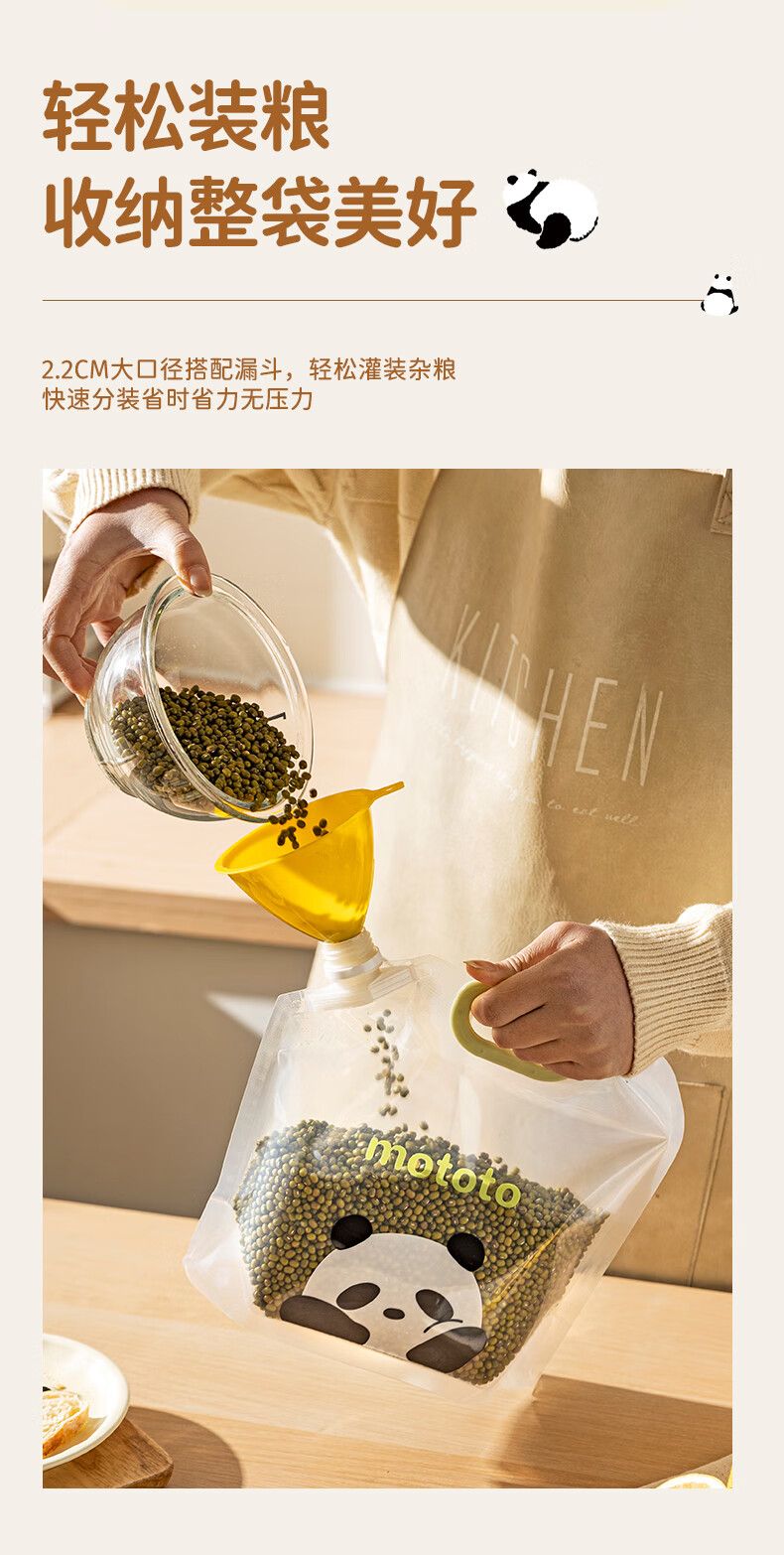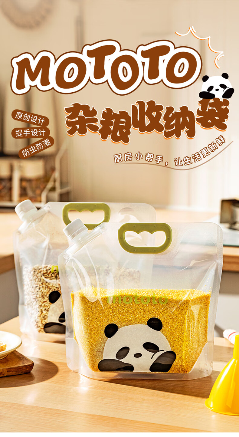 Modern housewife mototo panda grain storage bag sealed insect-proof and moisture-proof rice storage bucket 6 pieces mototo grain bag (free funnel)