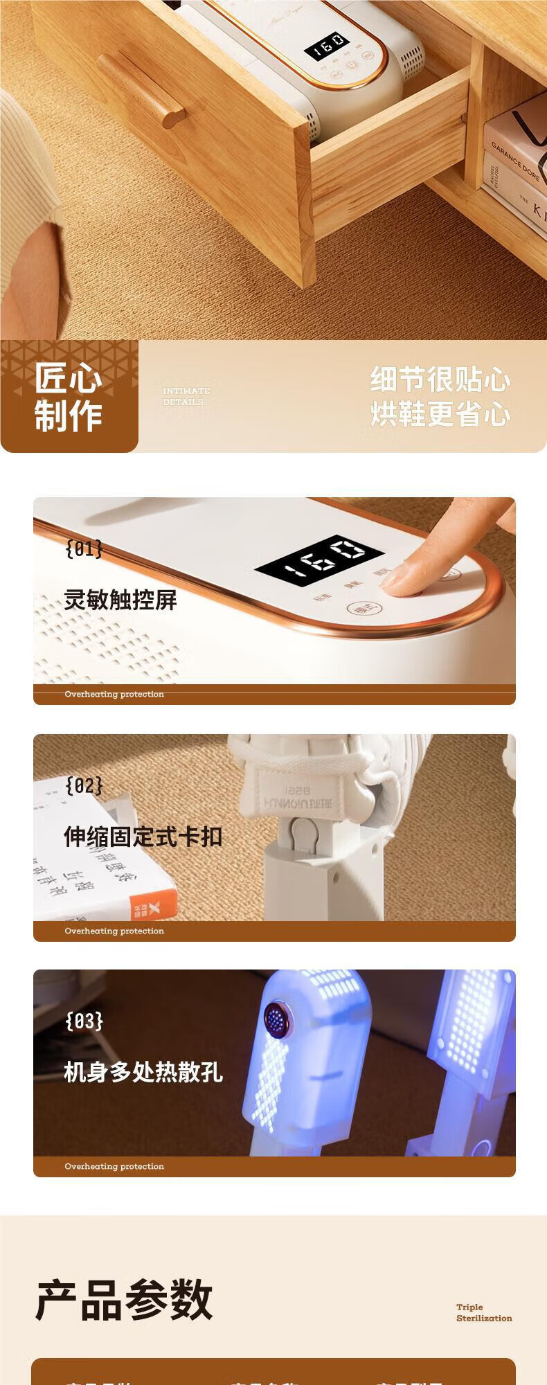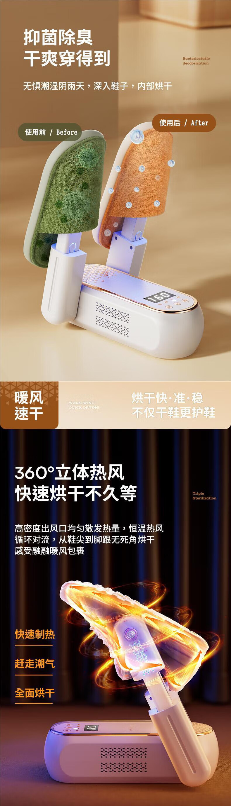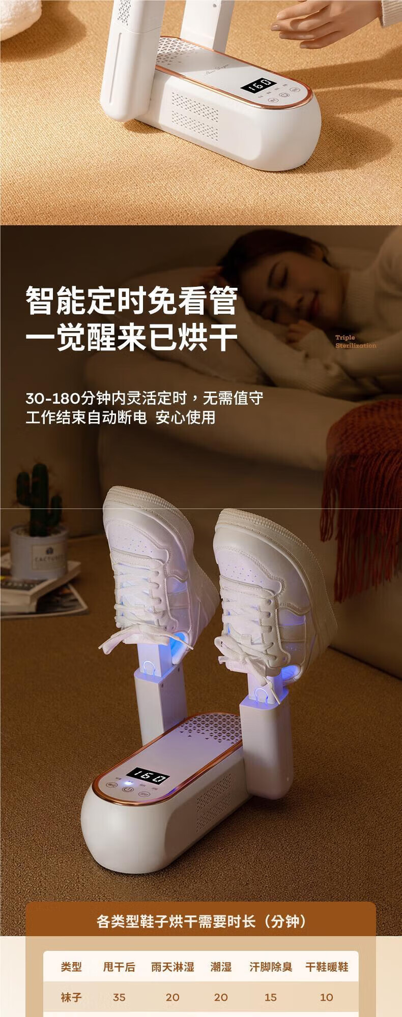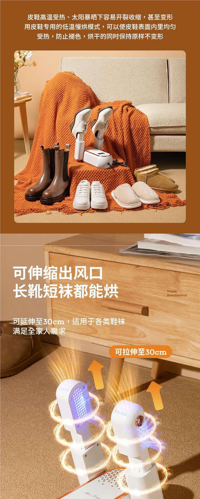 Xiaomi Buyi 2024 new shoe dryer shoe drying machine artifact sterilization and deodorization shoe dryer household smart constant temperature shoe dryer shoe dryer dry and wet dual-use shoe coaxing device Purple light telescopic version Purple light + knob timing + constant temperature quick drying + easy storage