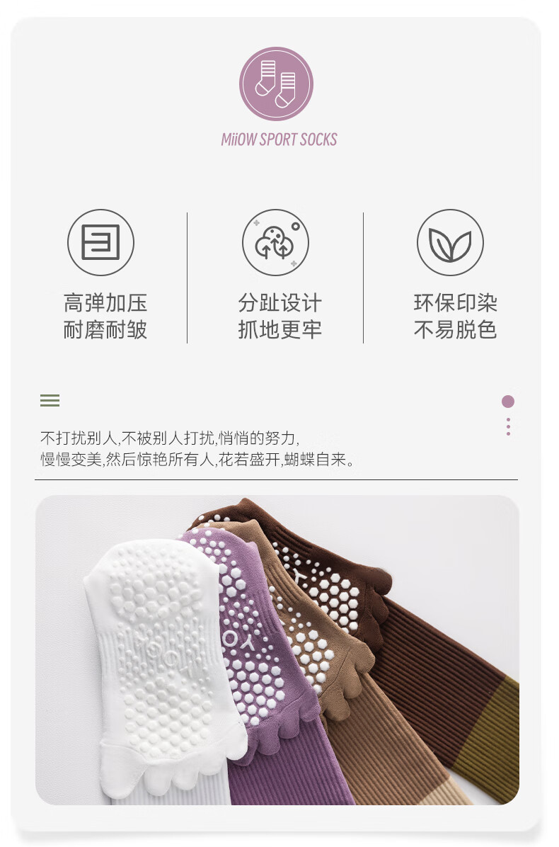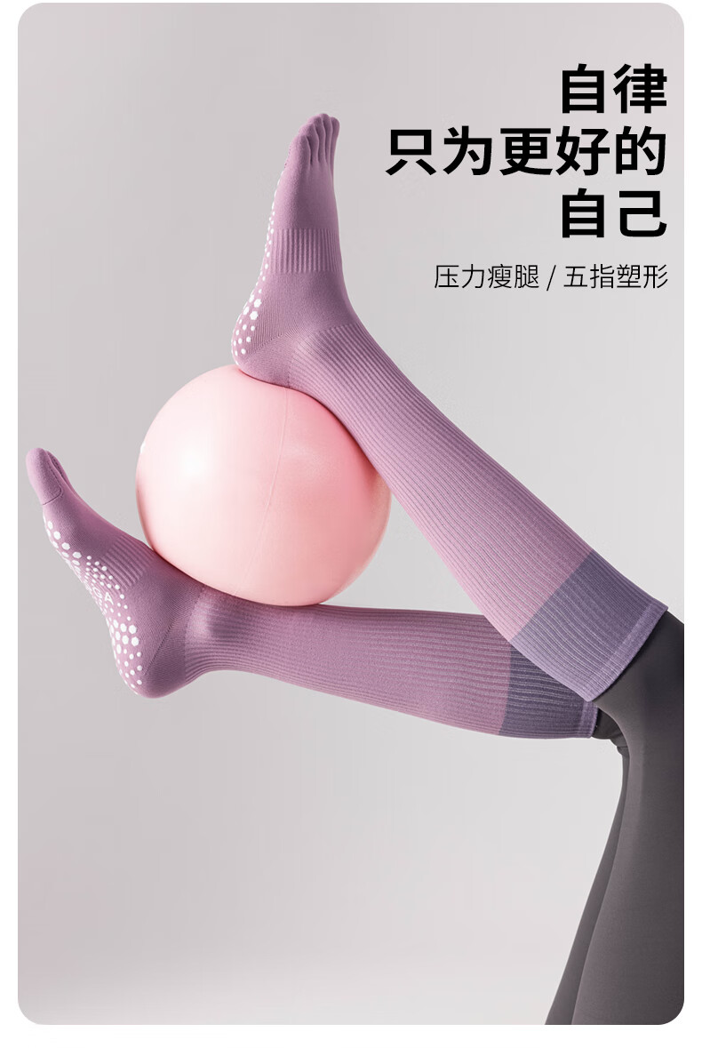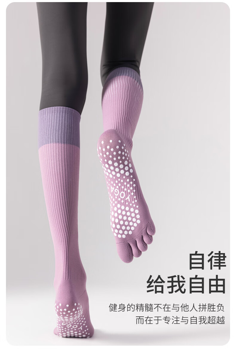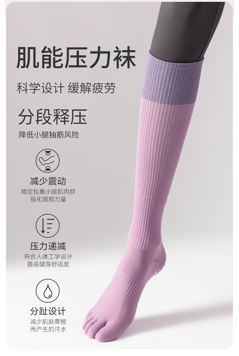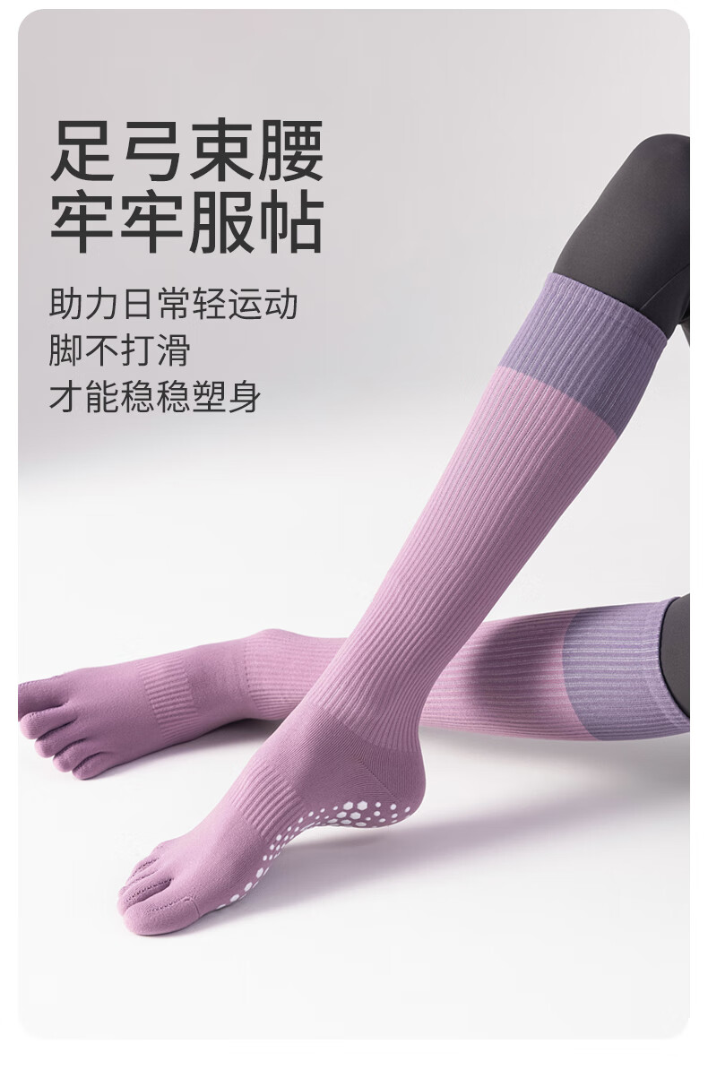 Catman five-finger yoga socks for women in spring and autumn professional sports non-slip mid-length Pilates fitness split-toe calf socks (purple) 1 pair one size fits all (suitable for sizes 35-39)
