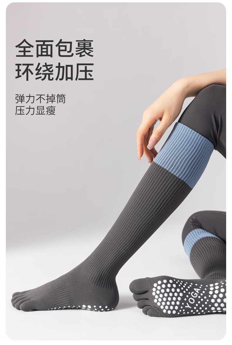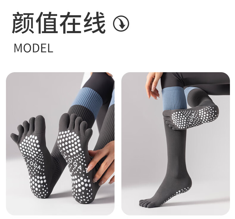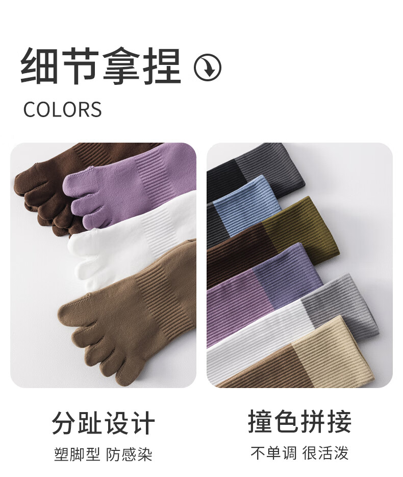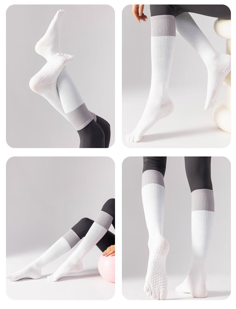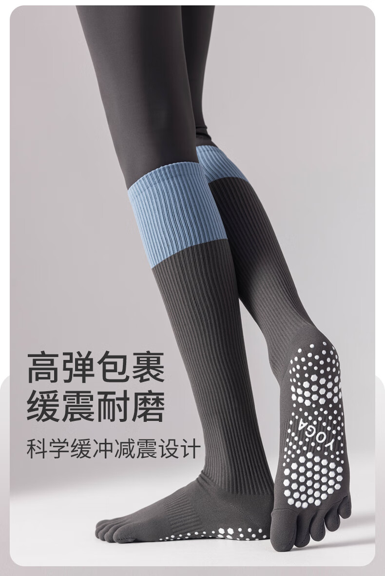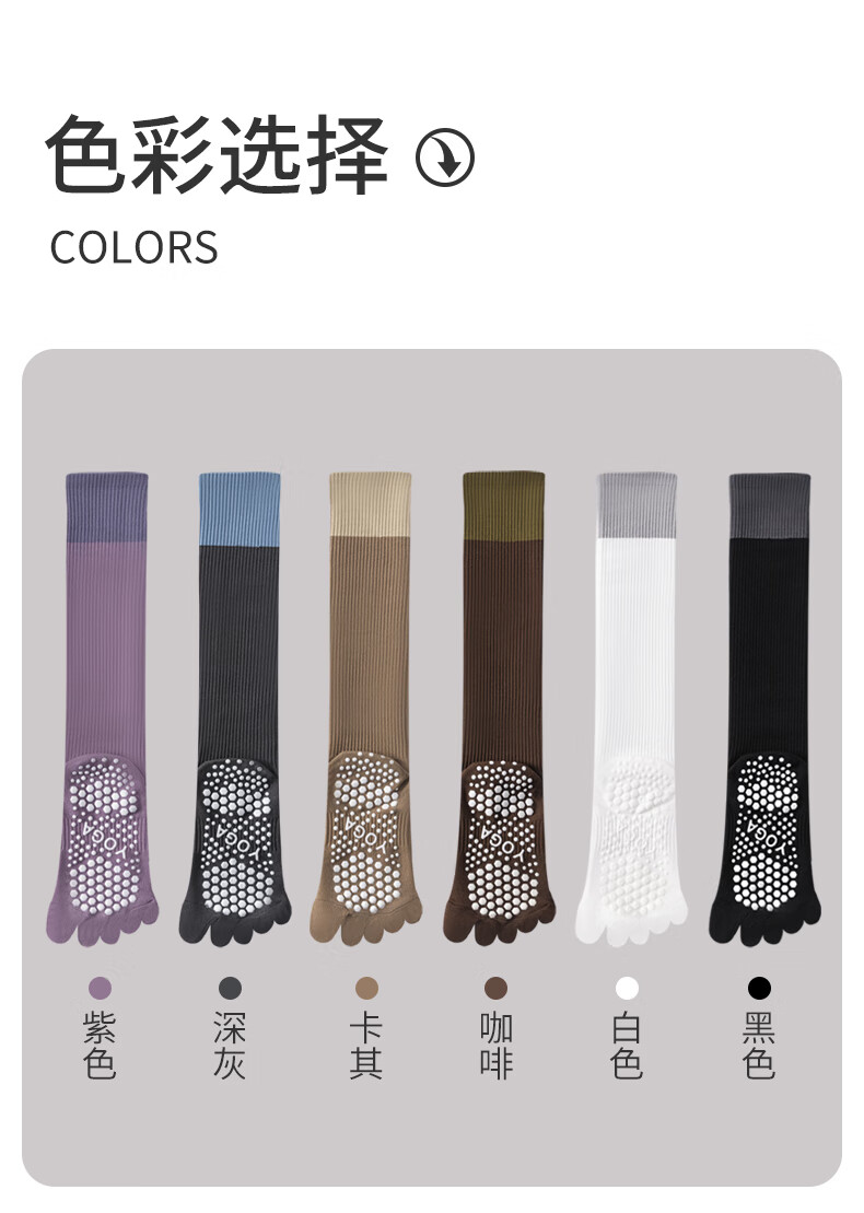 Catman five-finger yoga socks for women in spring and autumn professional sports non-slip mid-length Pilates fitness split-toe calf socks (purple) 1 pair one size fits all (suitable for sizes 35-39)