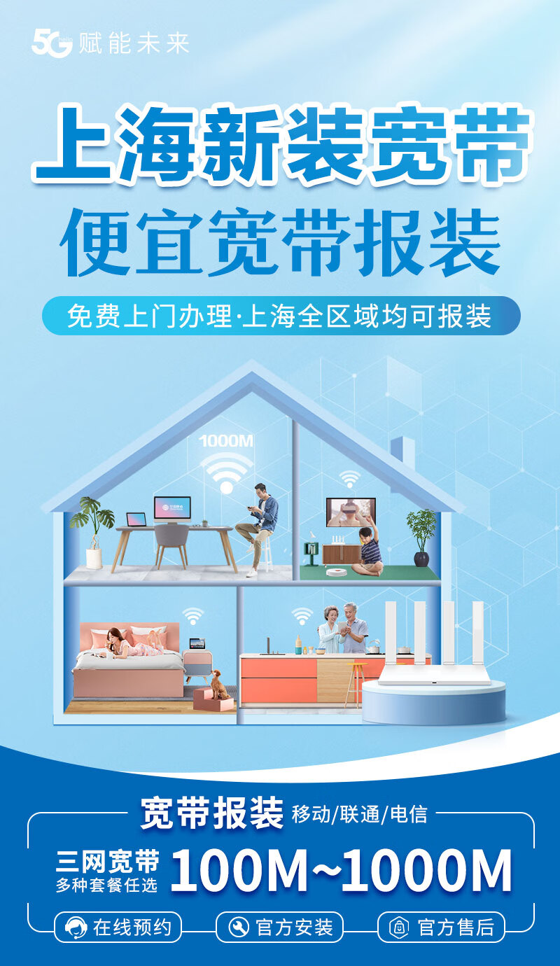 China Telecom Shanghai Unicom Mobile Broadband handles single-fusion package home WIFI door-to-door installation Shanghai Broadband 300M 510 one year free installation fee Shanghai Broadband makes an appointment official installation after-sales service