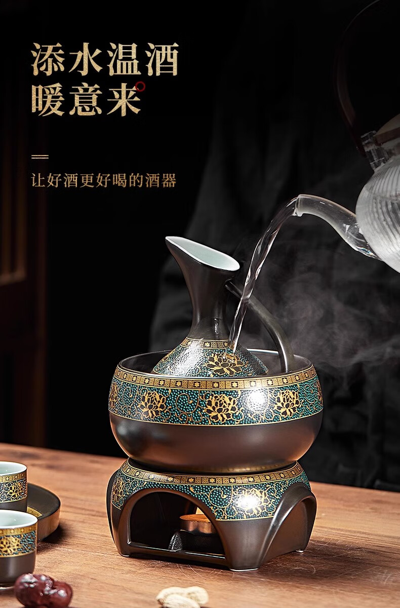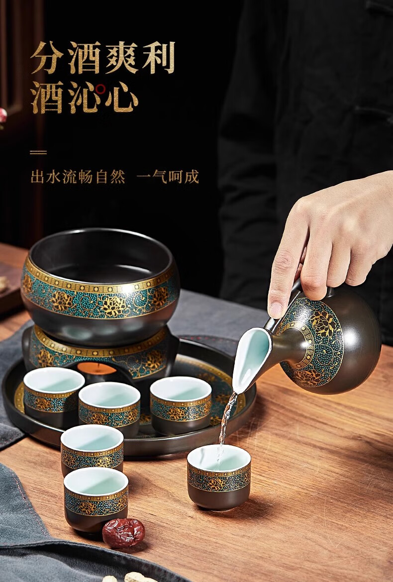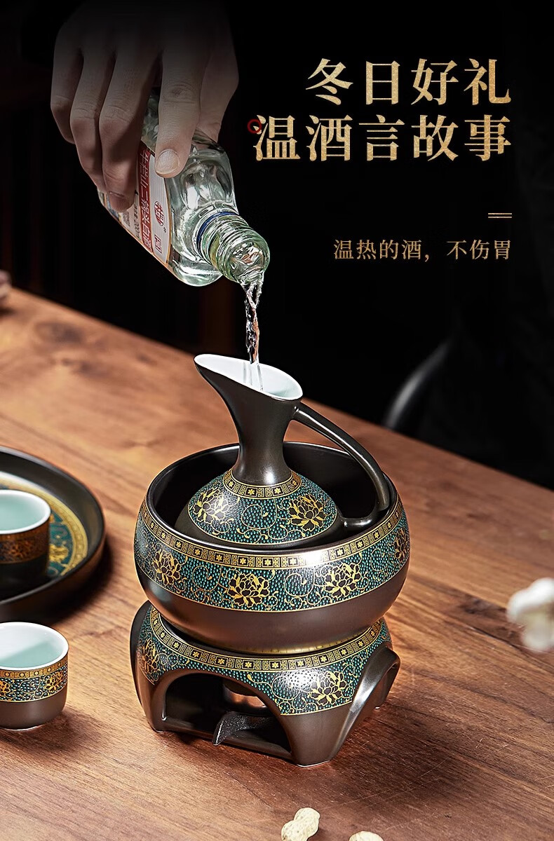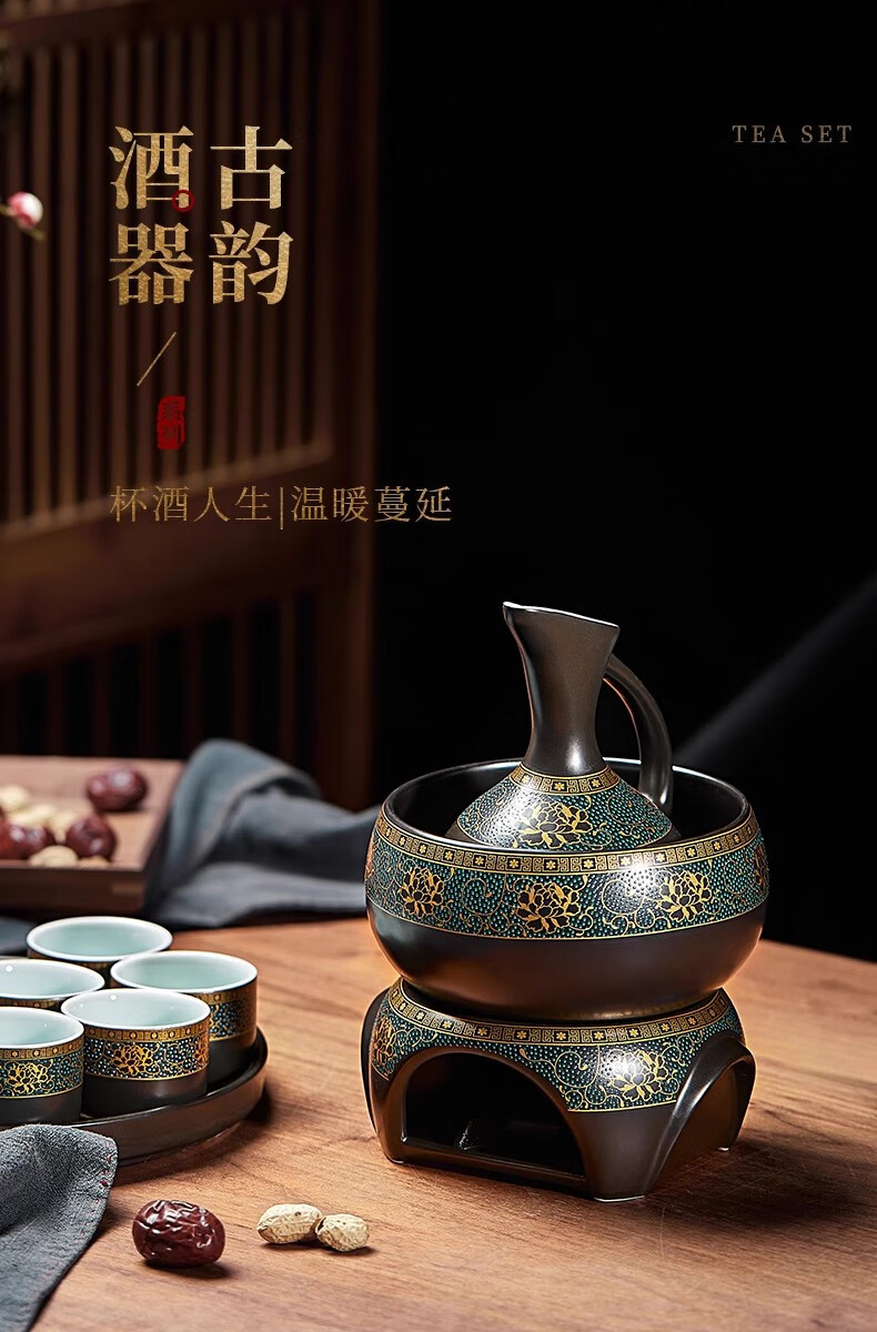 Yanhetang Chinese-style liquor wine set, high-end exquisite ceramic wine cup, household wine warmer, gift for elders and leaders, ancient wine set (style 1)