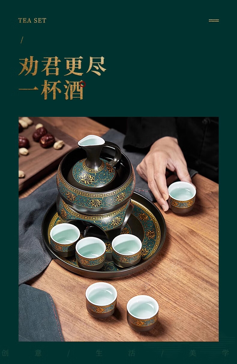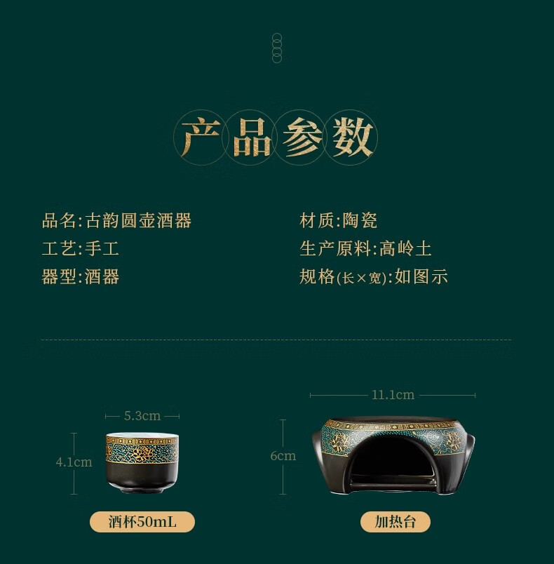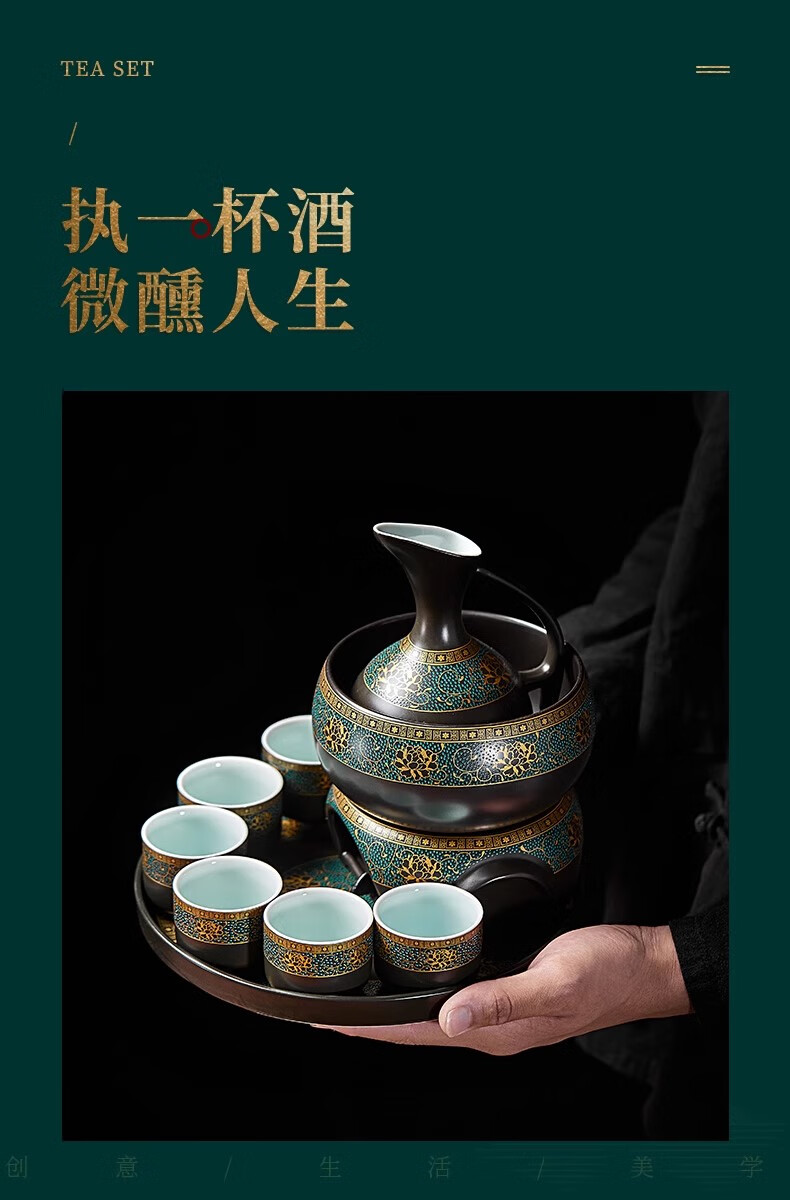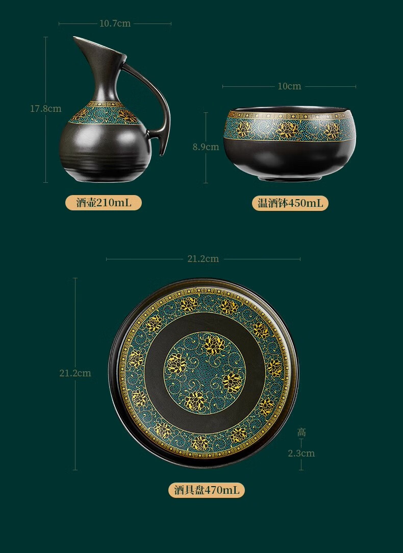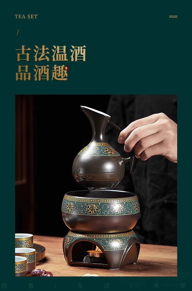 Yanhetang Chinese-style liquor wine set, high-end exquisite ceramic wine cup, household wine warmer, gift for elders and leaders, ancient wine set (style 1)