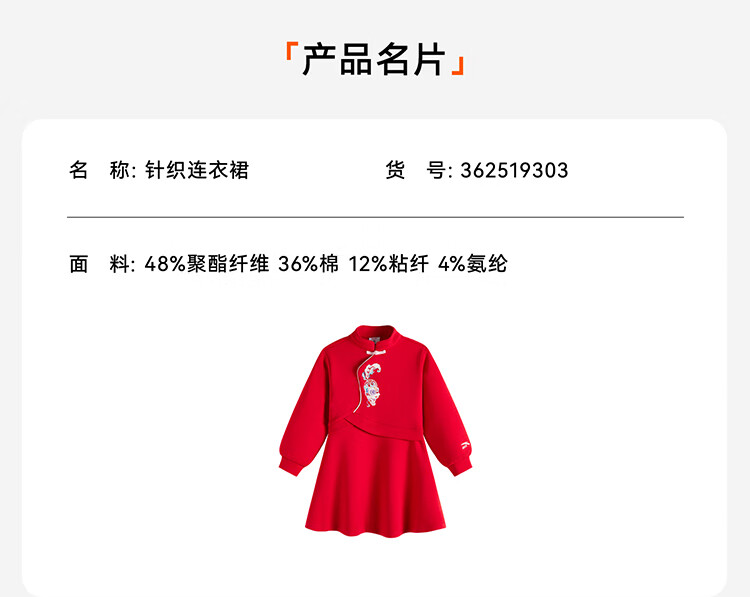 Anta children's dress girl's Cocos New Year knitted dress 362519303 He red-2 120