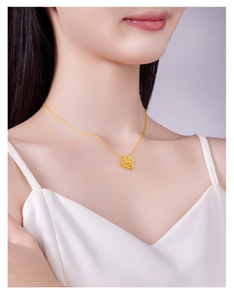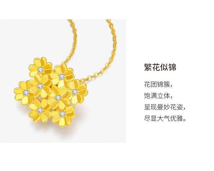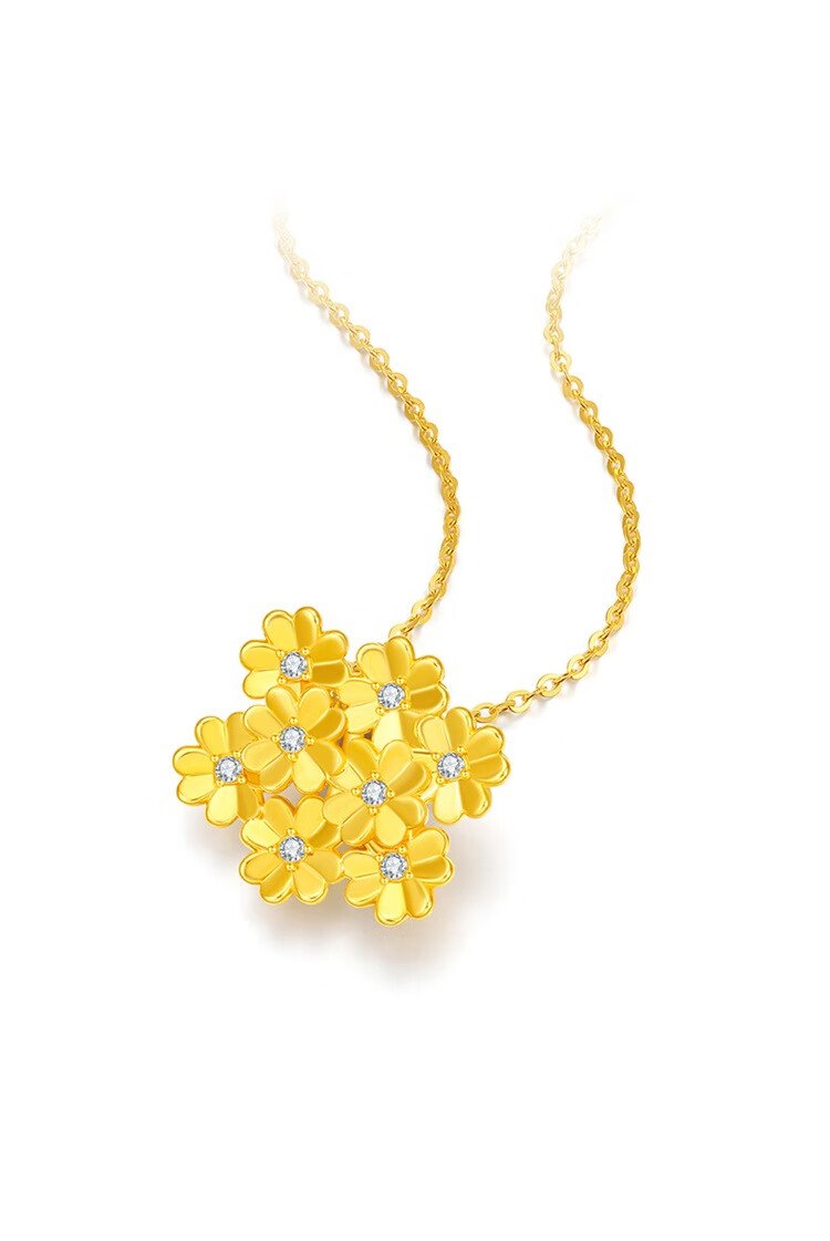 Saphire 18K gold pendant for women, flowery K gold inlaid moissanite pendant, colorful gold pendant for birthday gift, flower pendant + K gold O-shaped chain + heart-beating rose gift box