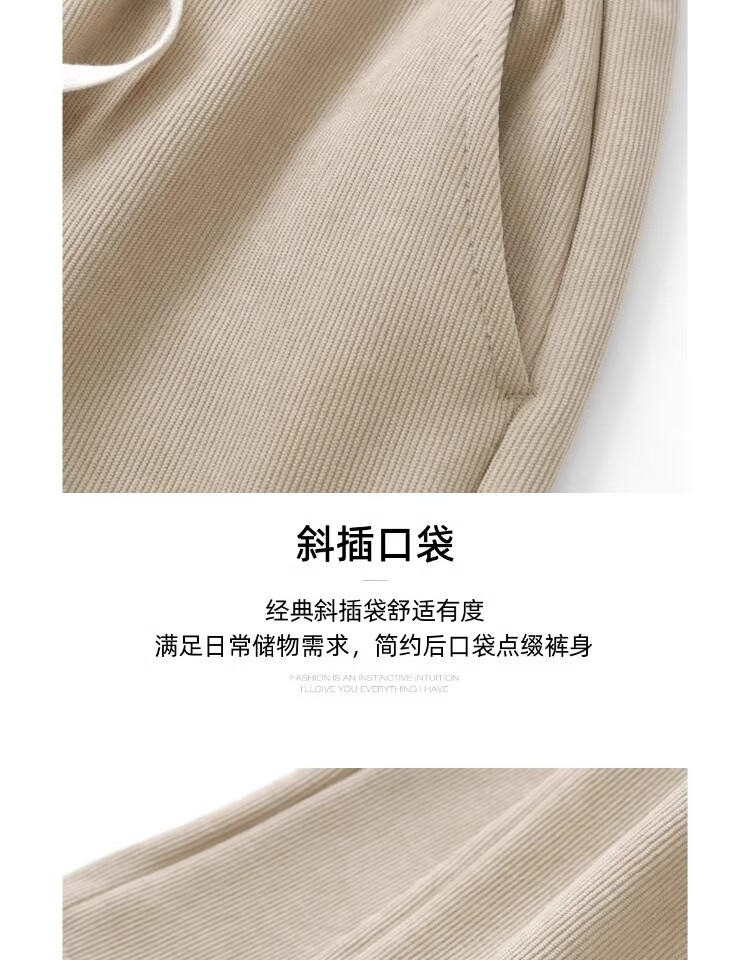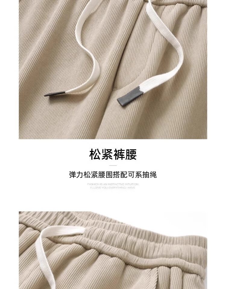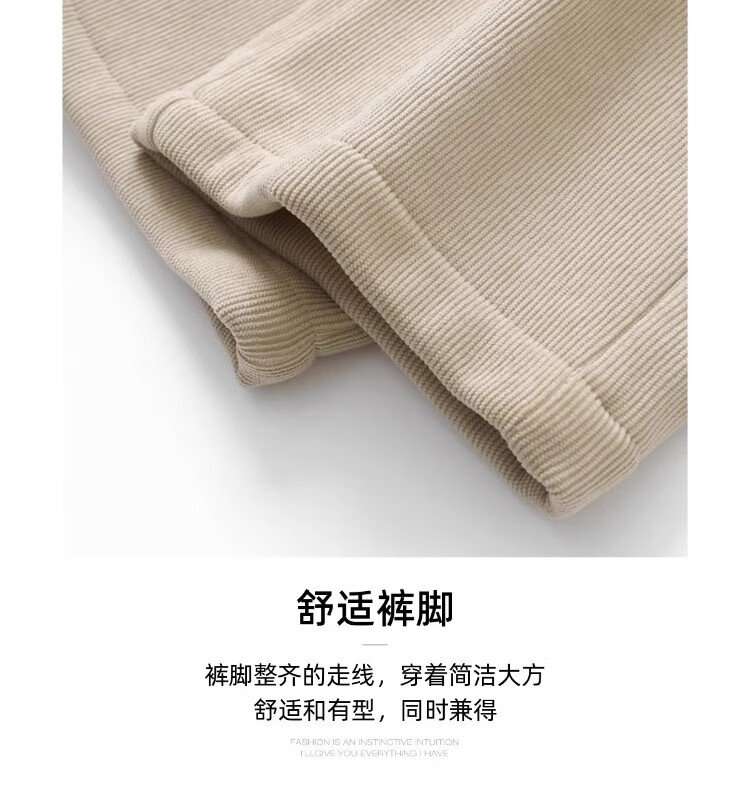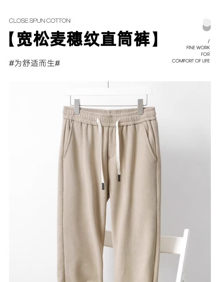 ROMON wheat ear pattern casual pants men's autumn and winter plus velvet thickened corduroy loose straight pants anti-wrinkle wide-leg new sports pants khaki spring and autumn suitable for -100-130Jin Jin equals 0.5 kg M