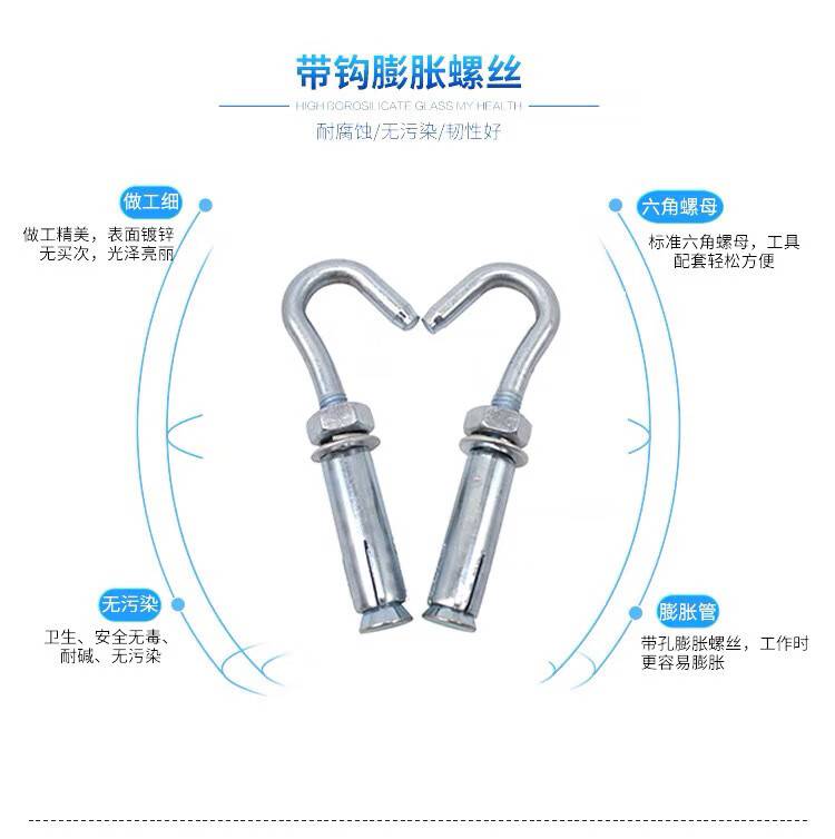FANCYCHIC wholesale galvanized iron expansion hook hook with hook expansion screw hook ceiling hook hook expansion hook 681012 M10 expansion hook 40 pieces