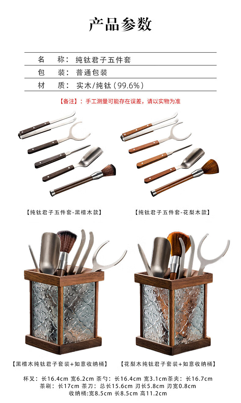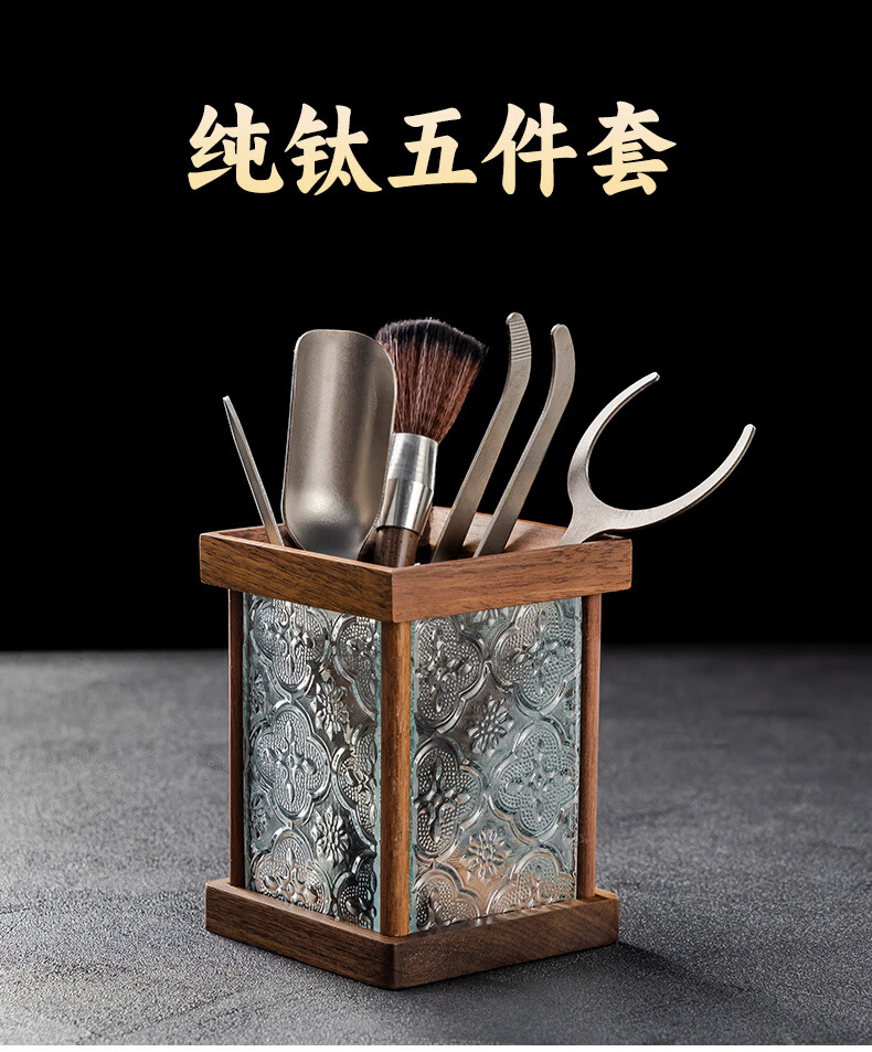 Rongshantang Pure Titanium Tea Ceremony Six Gentlemen Set Tea Knife Tea Clip Pot Pen Tea Cup Holder Fork Tea Bucket Tea Set Accessories Rosewood Pure Titanium Gentleman Set + Ruyi Storage Bucket
