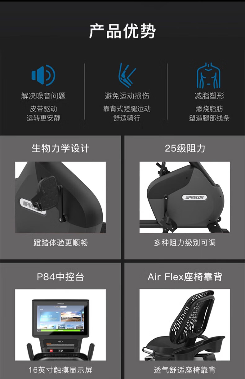 PRECOR exercise bike RBK885 indoor home luxury magnetically controlled horizontal exercise bike smart touch screen original imported black