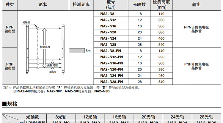 Second-hand Panasonic safety light curtain grating area sensor NA2-N8N12N16N20N24N28D/P-PN SF4C-H12