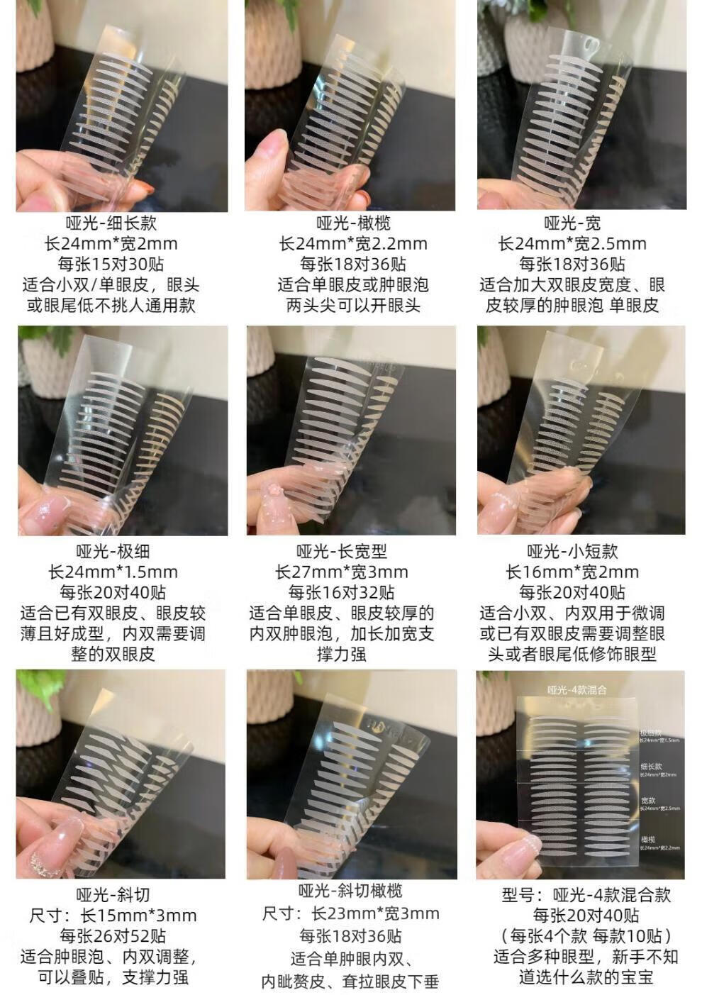 Hanbel Matte Super Sticky Double Eyelid Sticker Lace Seamless Natural Invisible Slender Style Inner Double Makeup Artist Waterproof Matte-7 Matte-Long and Wide Type Total 10 sheets 320 sheets