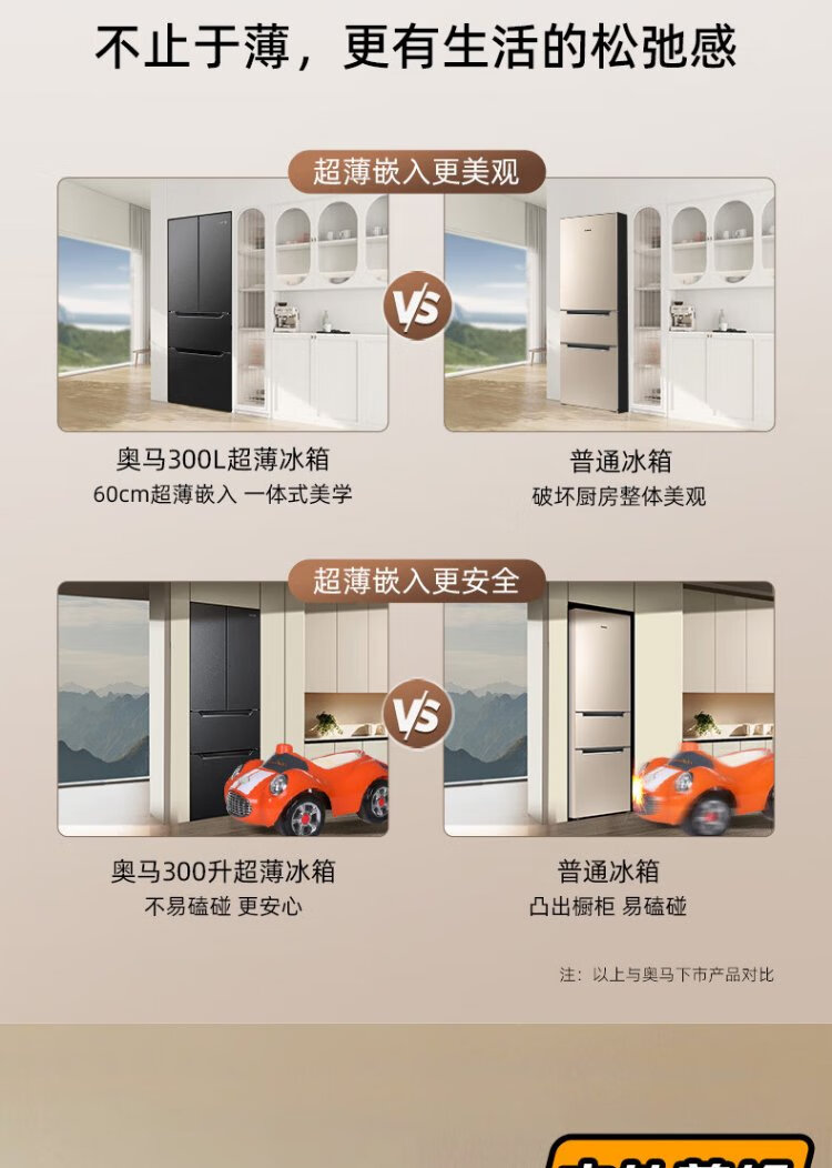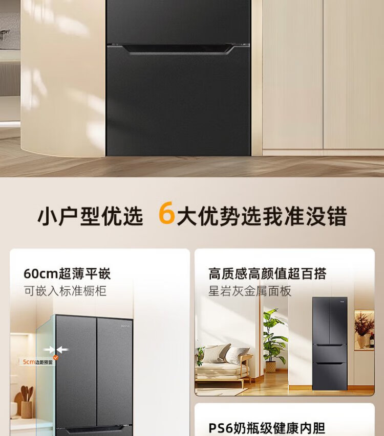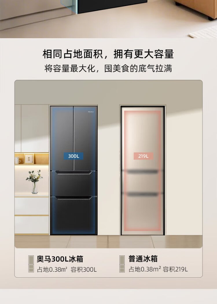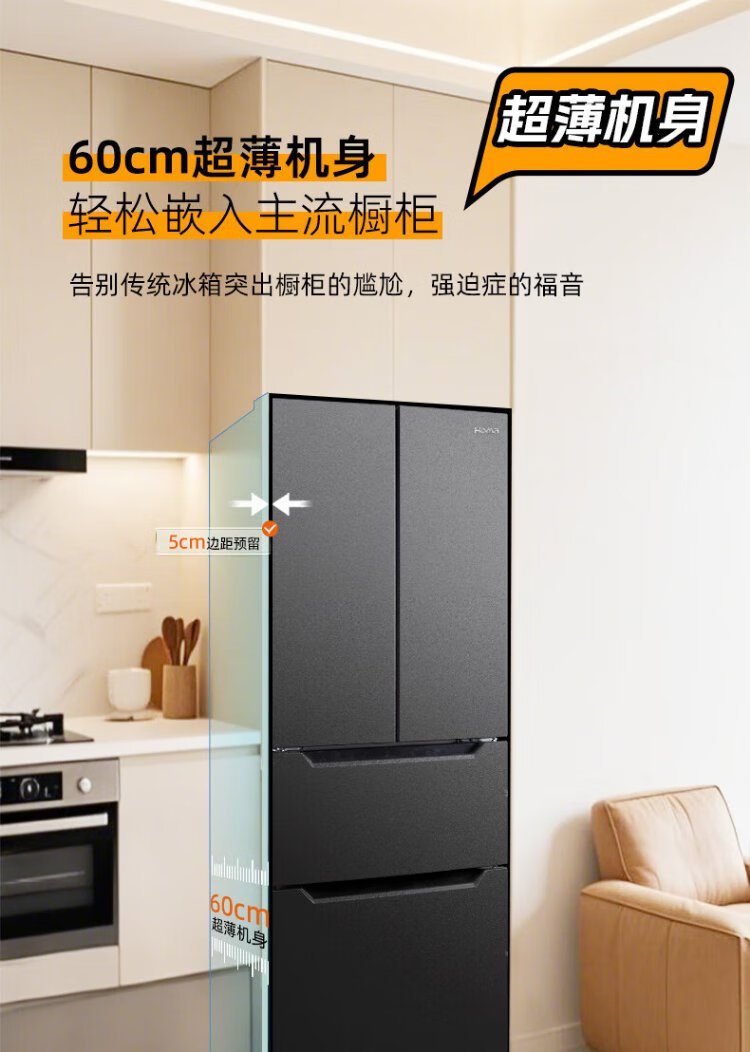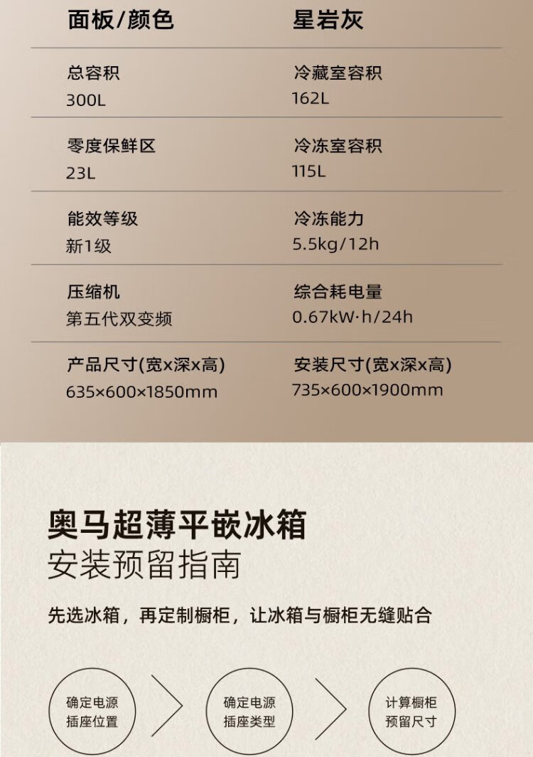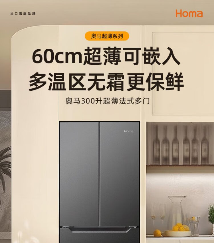 Omar 300 liter small apartment 60cm thin 63.5 wide embedded refrigerator three-door double door four-door household refrigerator dual frequency conversion first-level energy-saving power-saving frost-free refrigerator