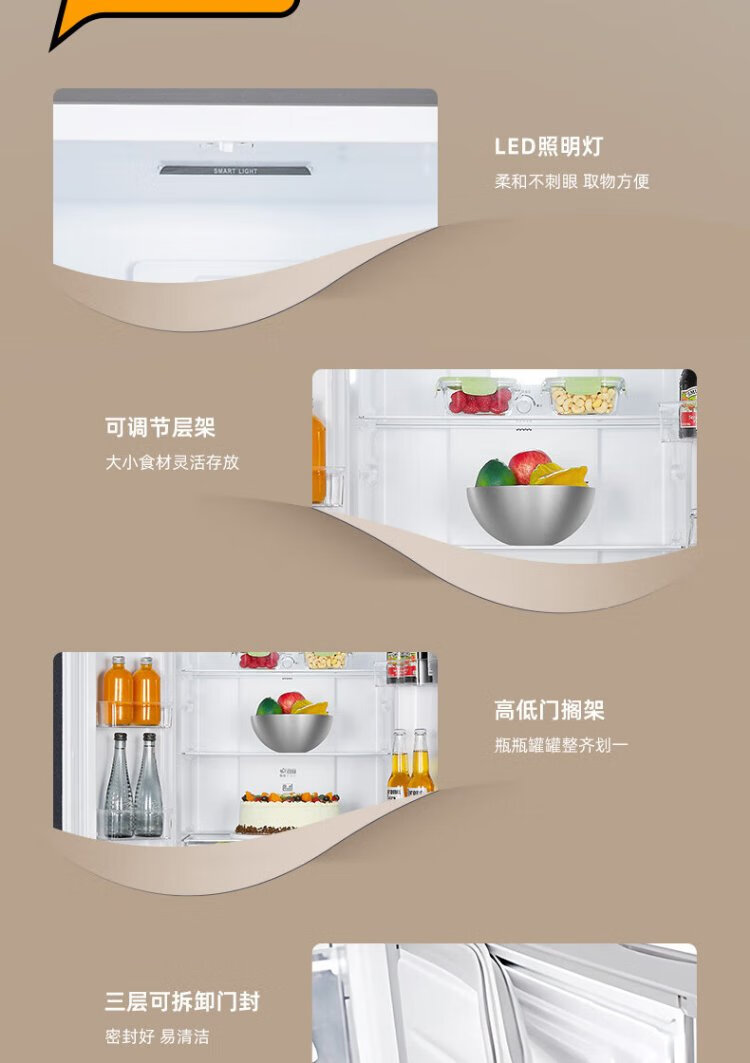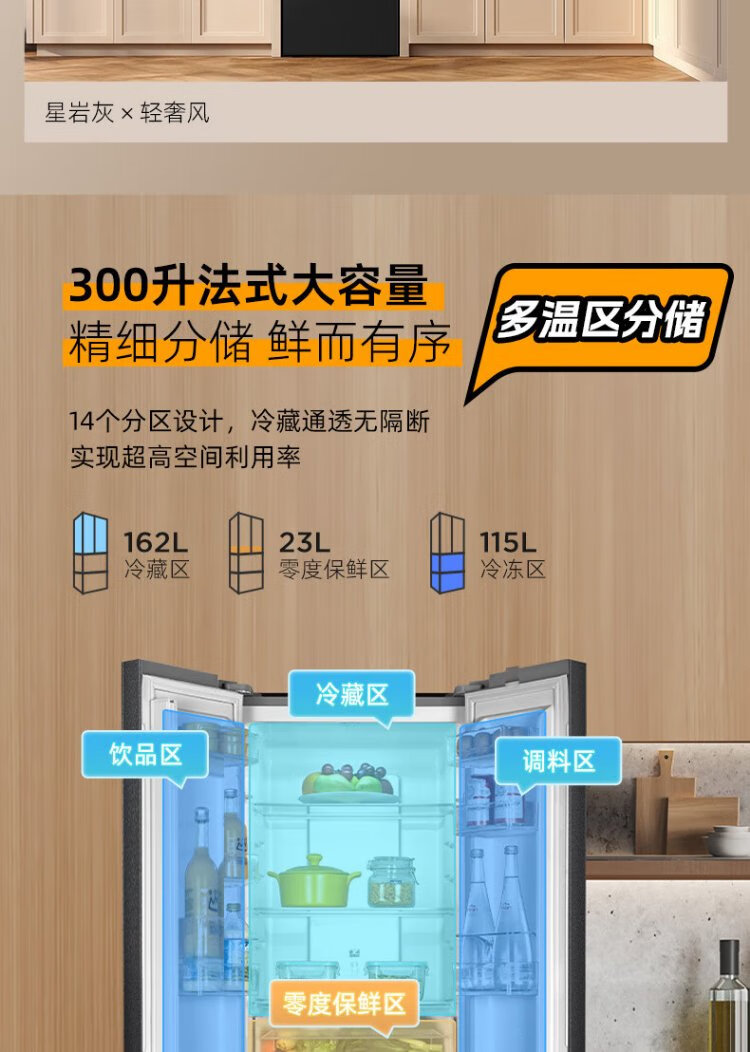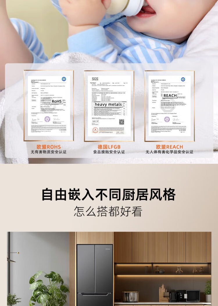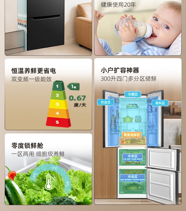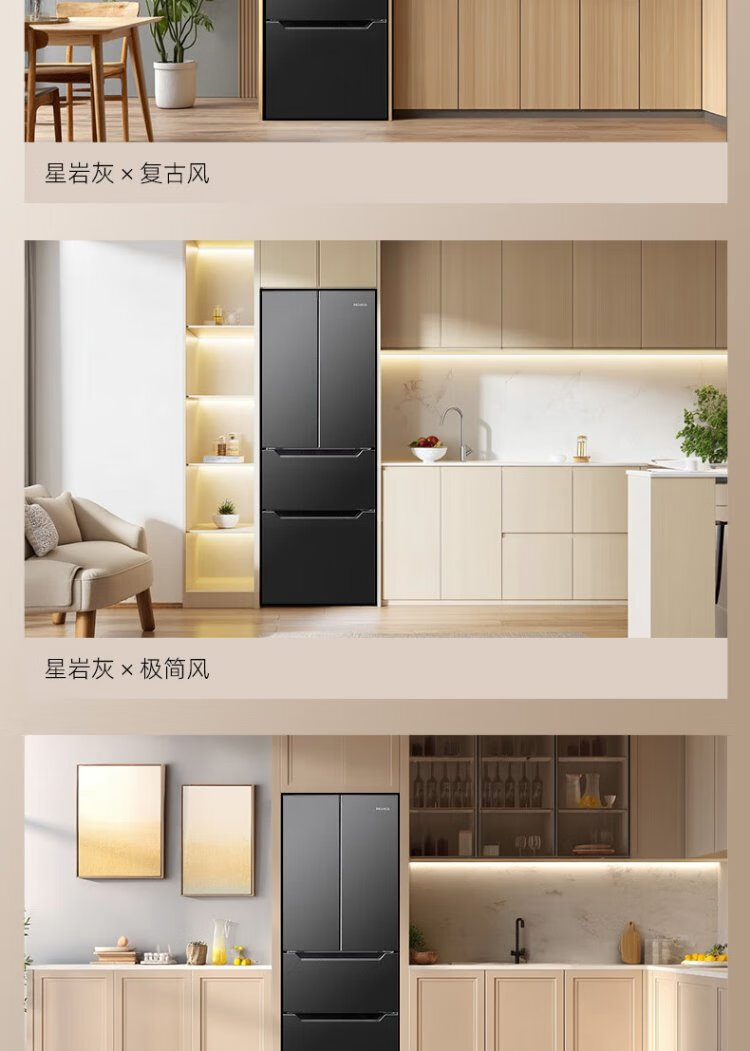 Omar 300 liter small apartment 60cm thin 63.5 wide embedded refrigerator three-door double door four-door household refrigerator dual frequency conversion first-level energy-saving power-saving frost-free refrigerator
