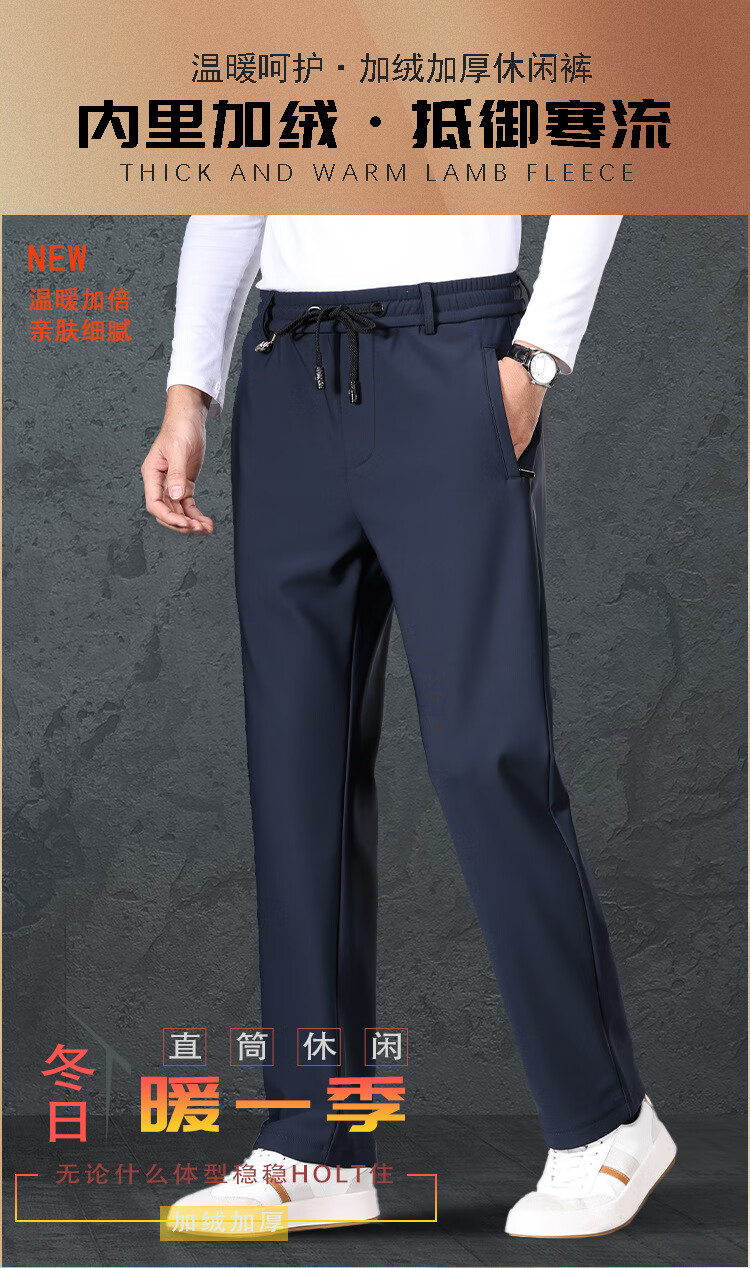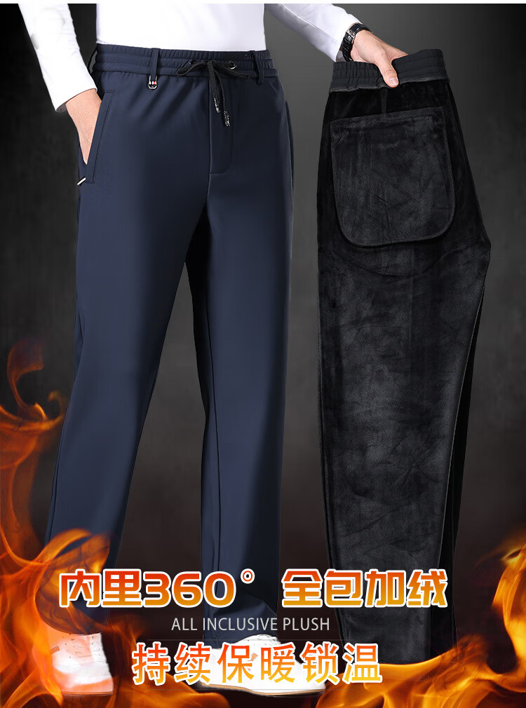 MAGIOPY light luxury high-end temperament sports pants men's autumn and winter plus velvet men's casual pants loose straight daddy pants winter flat black plus velvet -160-180Jin Jin equals 0.5 kg 2XL
