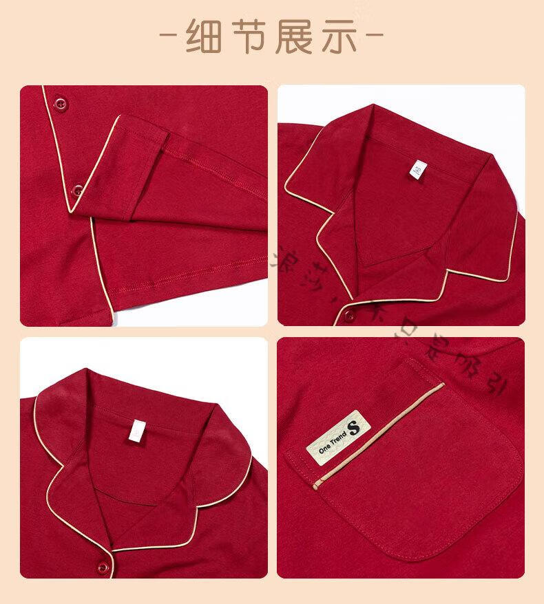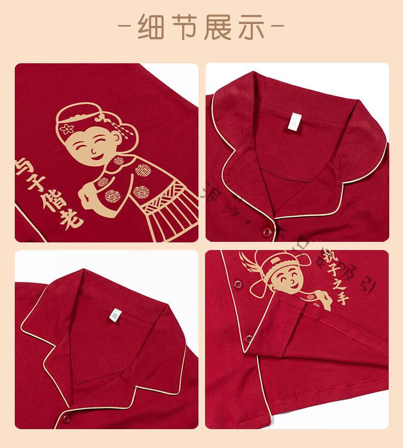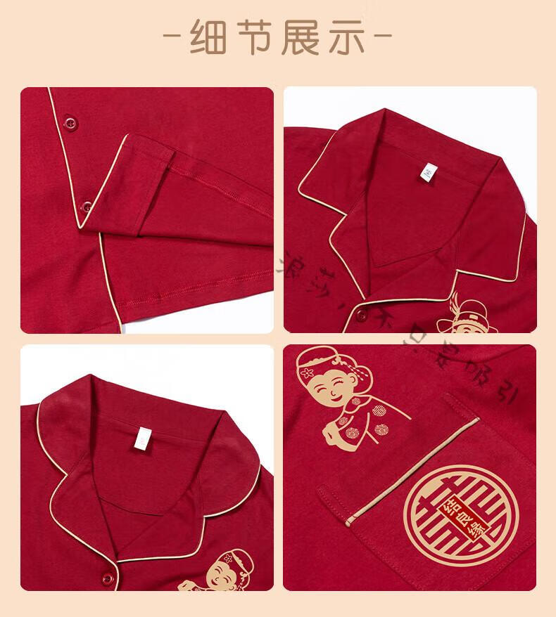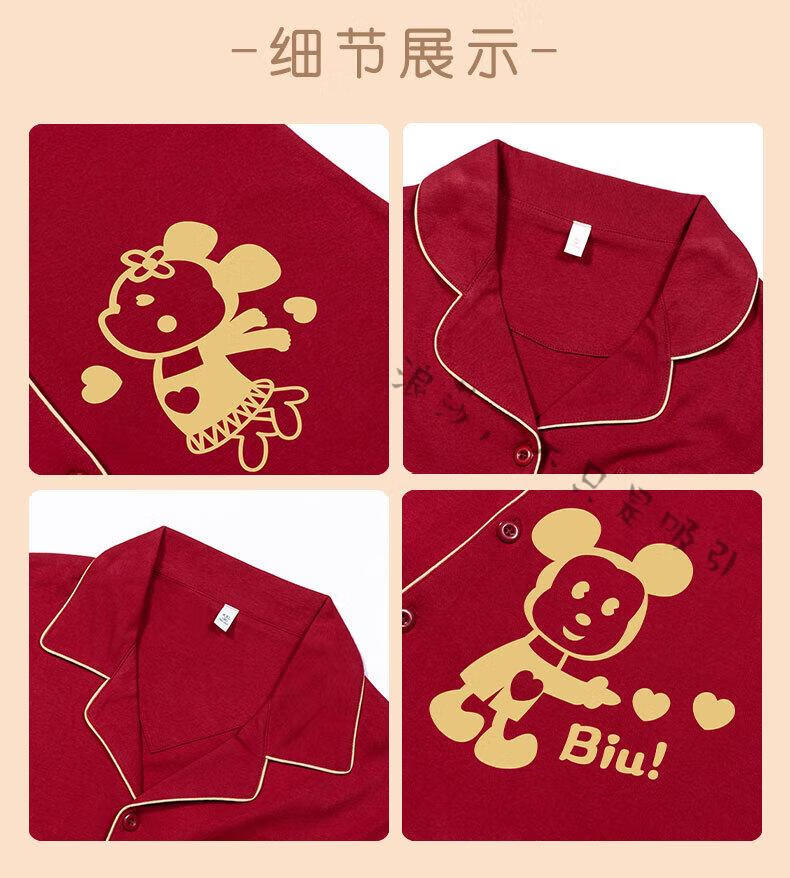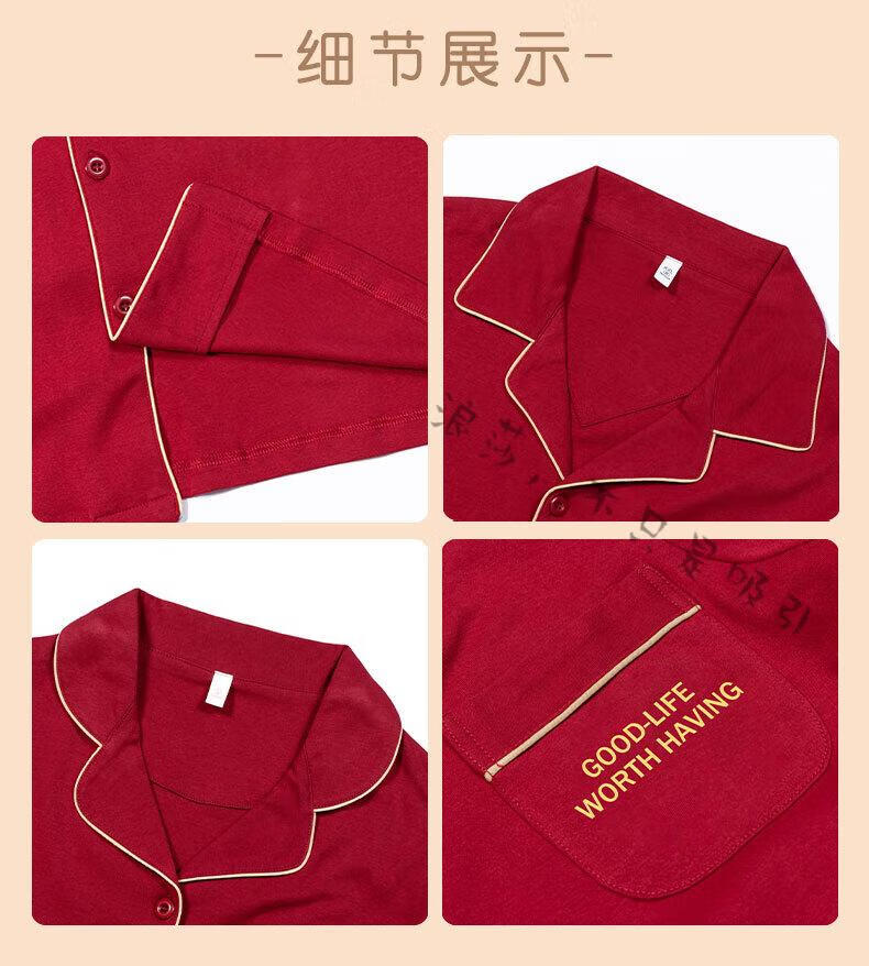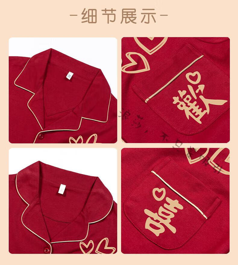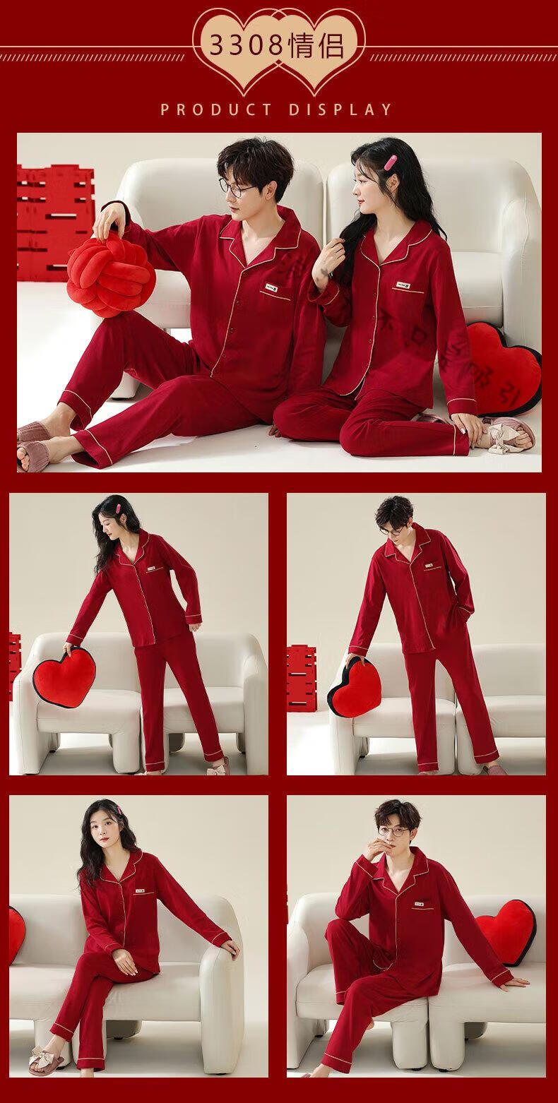 LangSha Wedding Pajamas Couple Outfits One Man and One Woman Pure Cotton Red Spring and Autumn Cotton Festive High-Level Home Clothing Set 3307 Love Launch M Female + 2XL Male