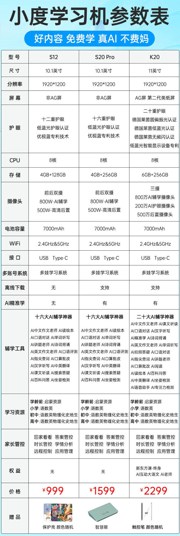 Xiaodu Learning Machine S20/K20/Z20/K30 Primary School Middle and High School Students General Education Synchronous English Homework Tutoring Intelligent Learning Machine Tablet Children Early Education Machine GY27SR7 S12/10.1 Inch/4G+128G/Hot Recommendation Baidu True AI-Simple Learning-Where you don’t know where to click