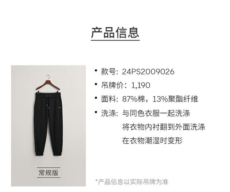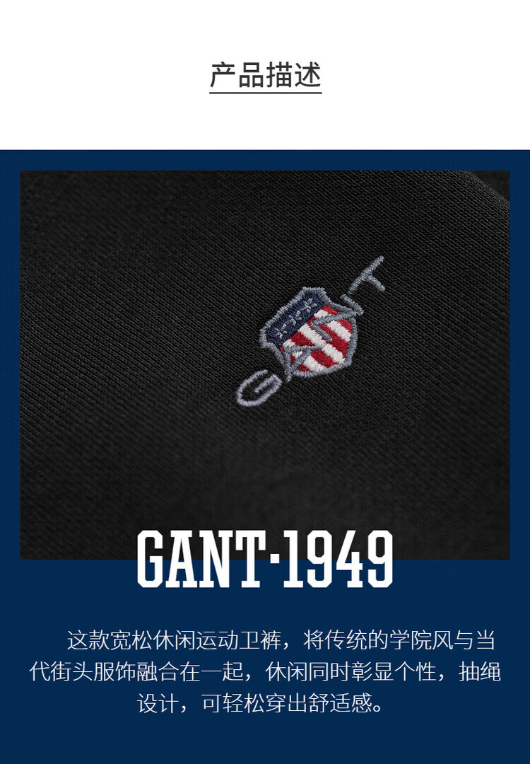 GANT GANT 2024 Spring New Men's Versatile Casual Sports Sweatpants 2009026 5 Black S