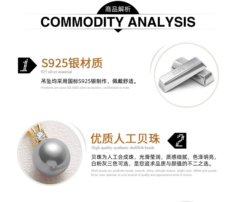 Elegant pigeon pearl silver pendant single pendant 925 silver imitation pearl necklace for women without chain single rose gold plated color silver pendant white gold S925 silver cross chain 38+5cm