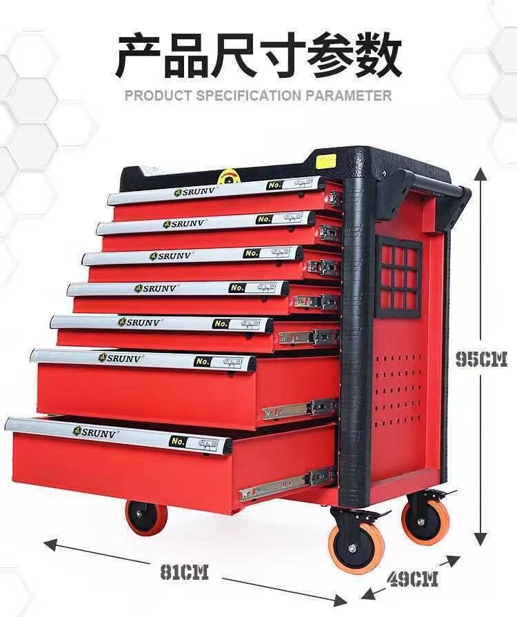 Ling Yuxun Auto Repair Tool Cart 368 Piece Set Combination Tool Box Cabinet Trolley Industrial Grade Drawer Full Set Hot Sale 463 Piece Set Tools + 7 Layers Red