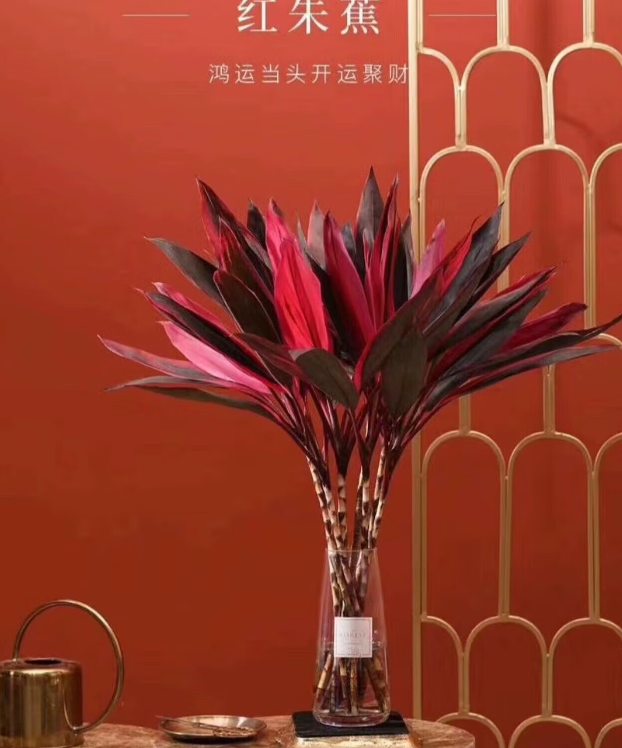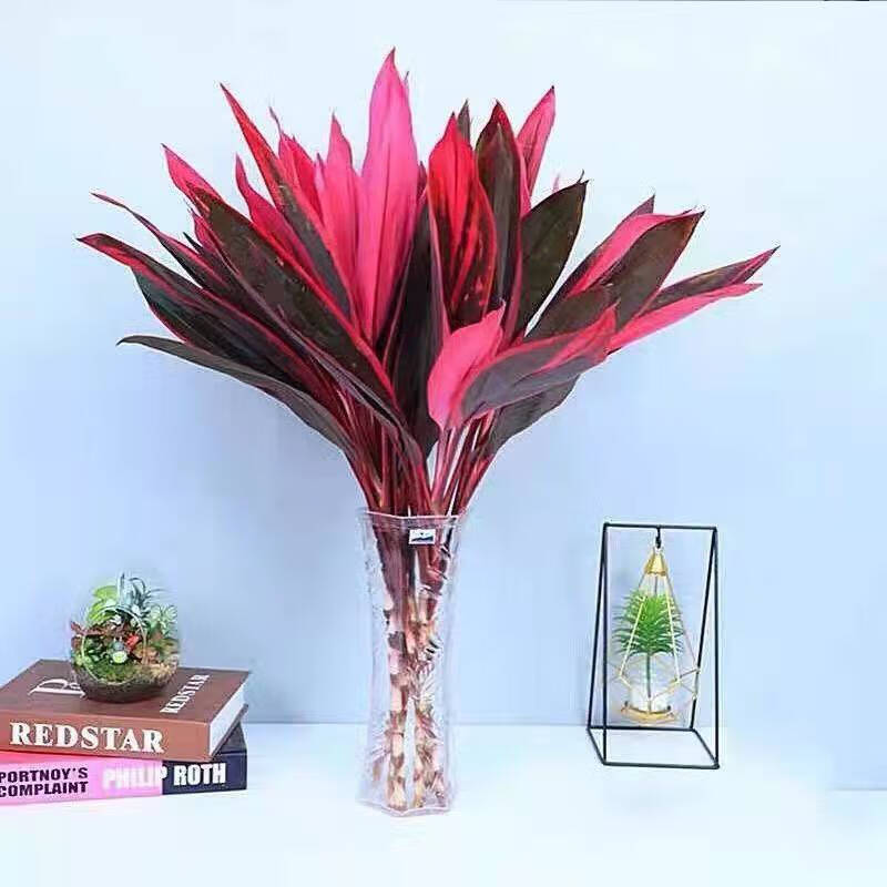 Red Vermilion Banana Lucky Bamboo Hydroponic Plant Lucky Flowers Red Leaves Lucky Bamboo for Buddha Good Care Chinese Valentine's Day Gift Fresh-cut Hydroponic Lucky Bamboo 6 Branches Not Bottle