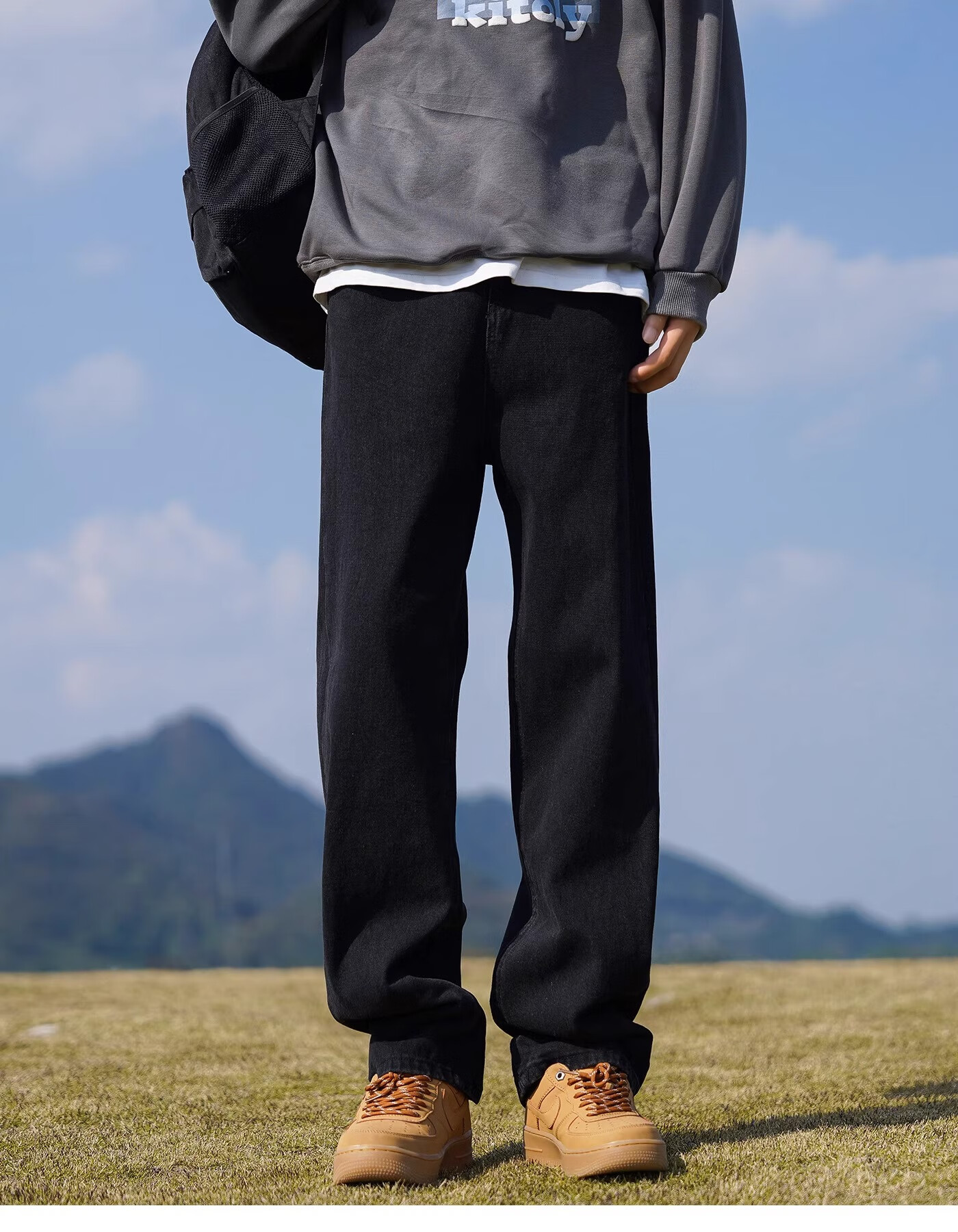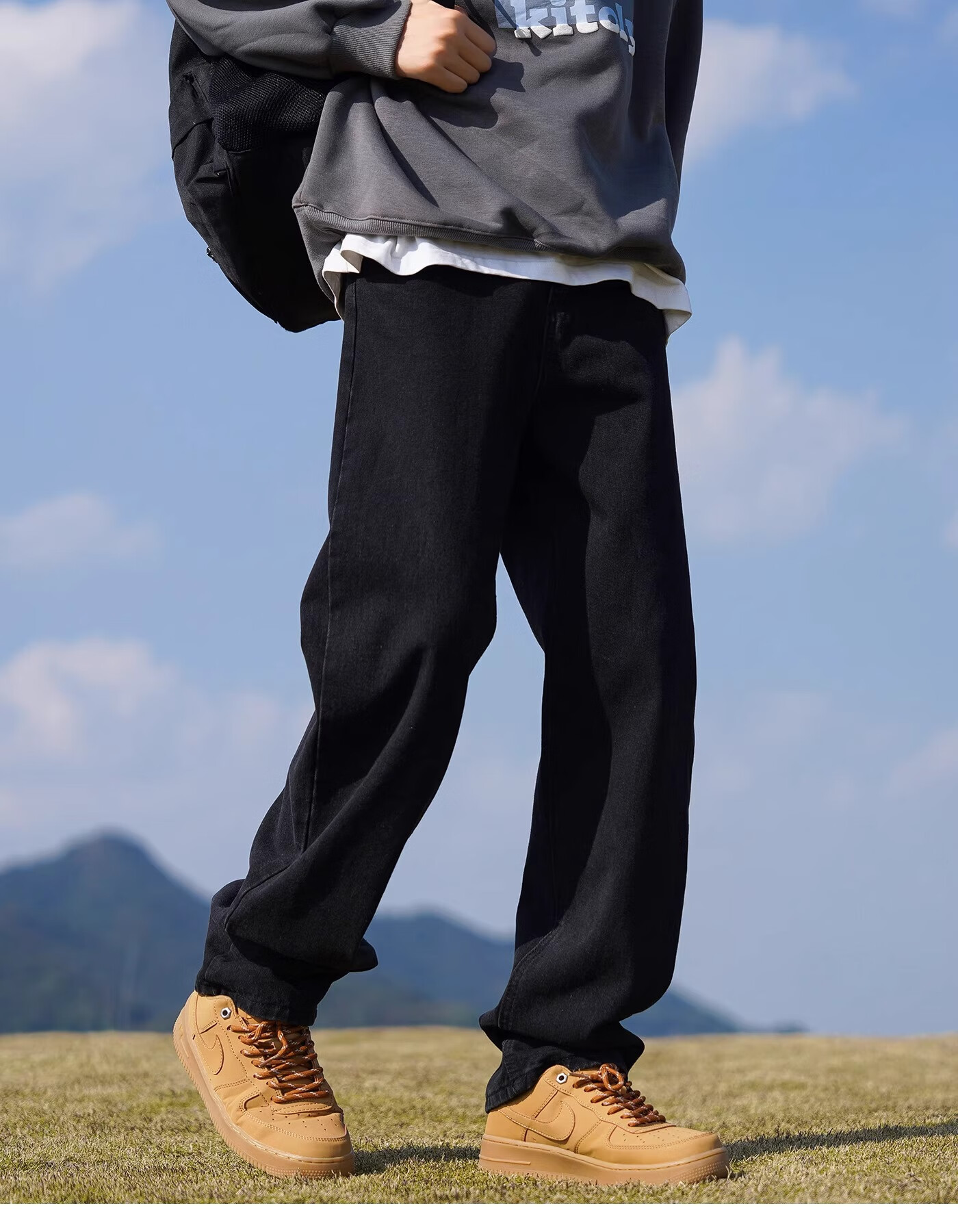 WHIM NASA Мужские черные джинсы Мужские свободные прямые мужские брюки для мальчиков Повседневные брюки с ятаганами Весна и осень Мужские зимние бархатные черные бархатные утолщенные брюки XL