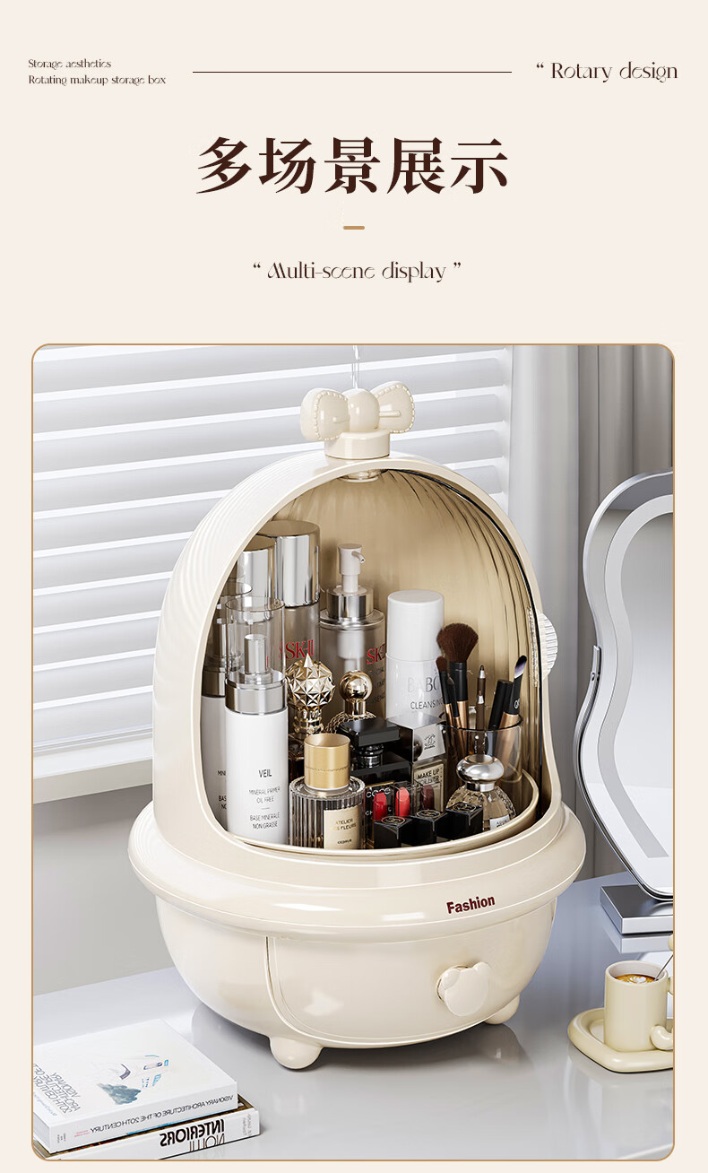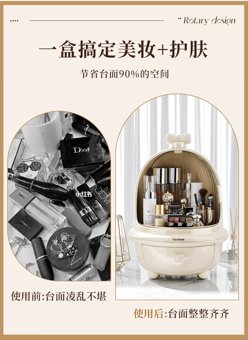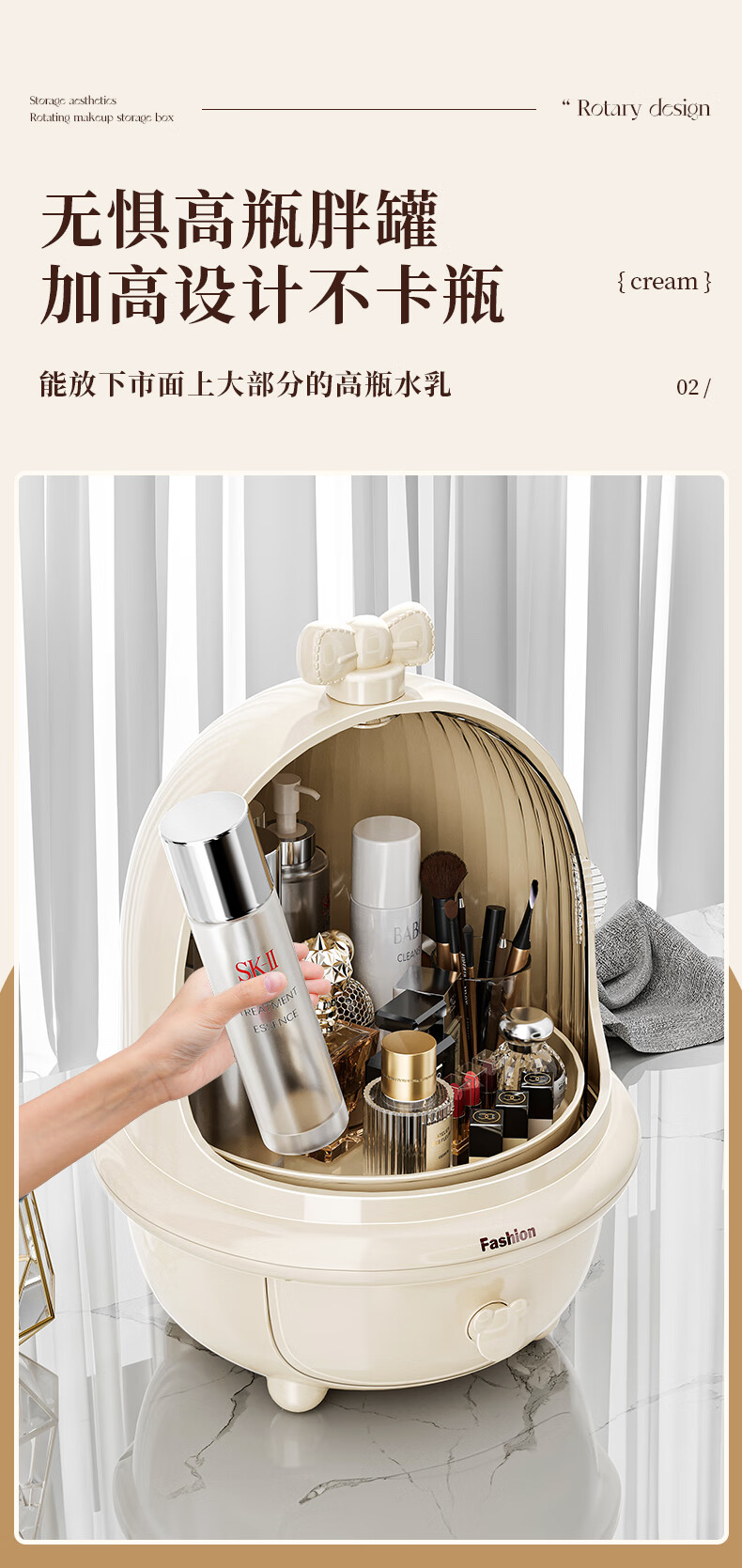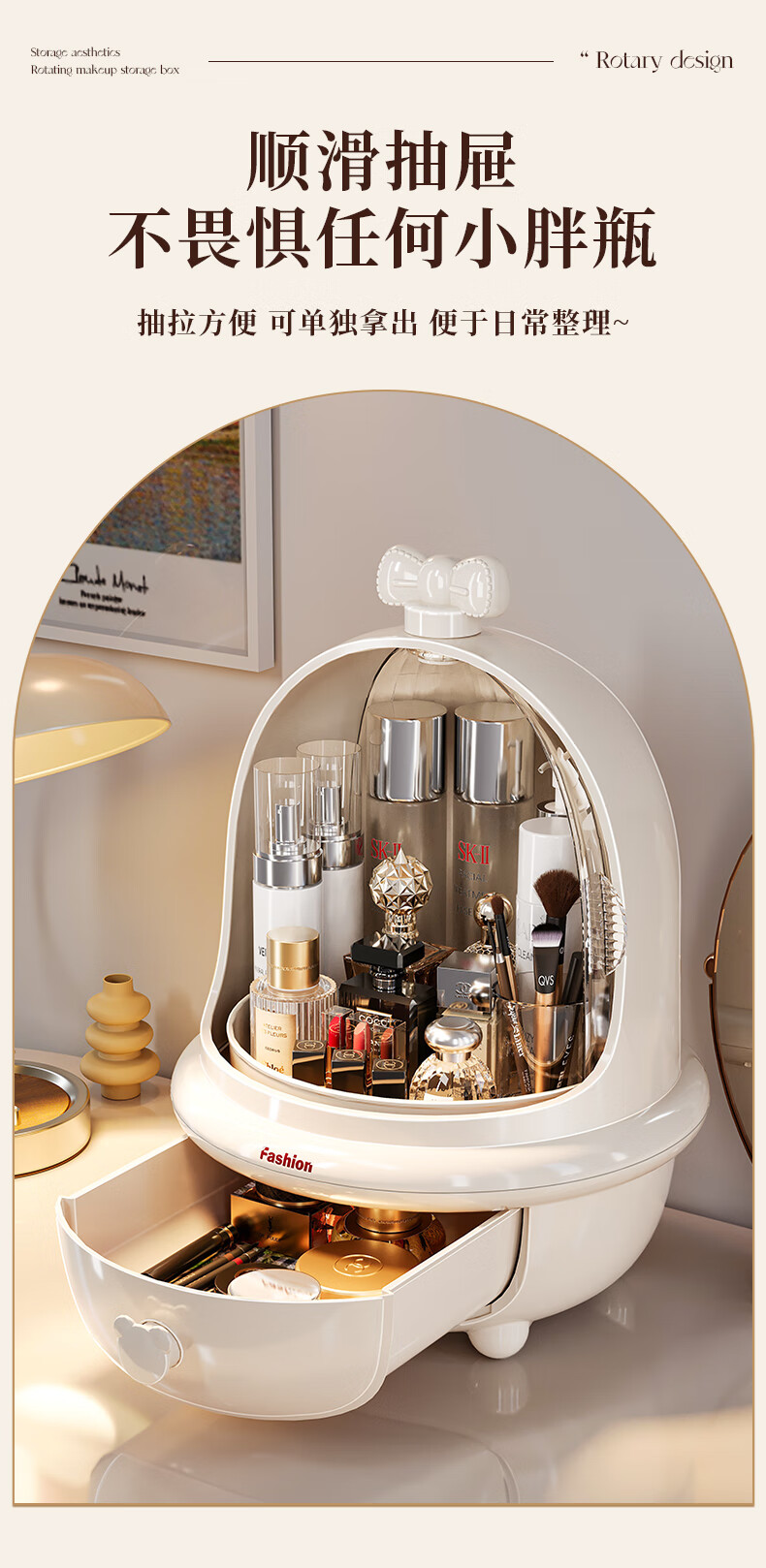 Mei Zhuo Fu Cosmetic Storage Box Light Luxury Drawer Desktop Storage Box Countertop Skin Care Rotating Storage Cabinet Large Capacity Dustproof Small Size - Cream White