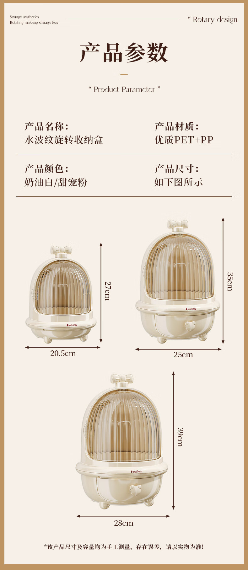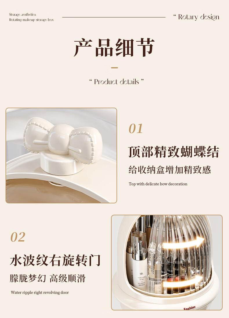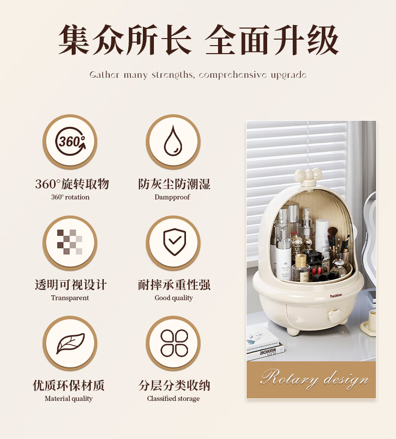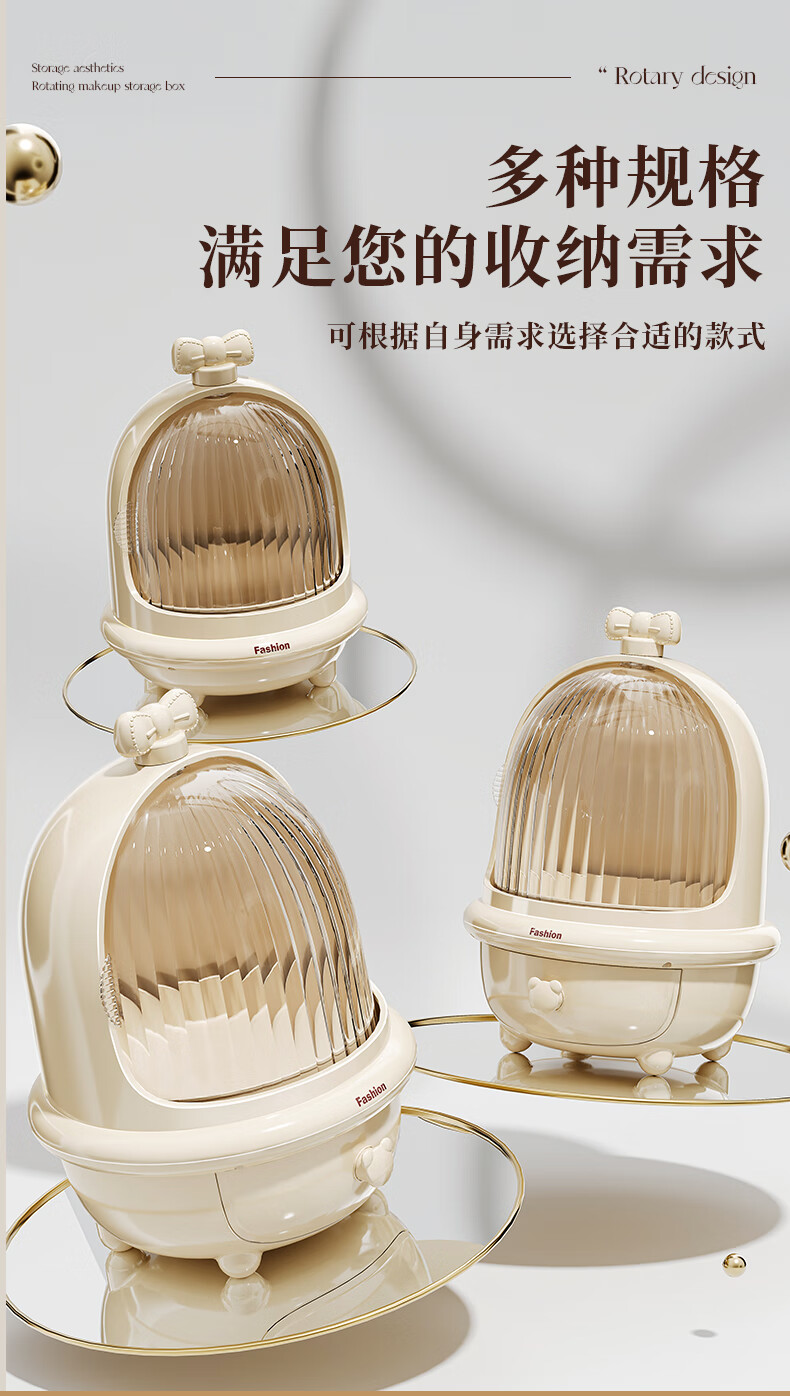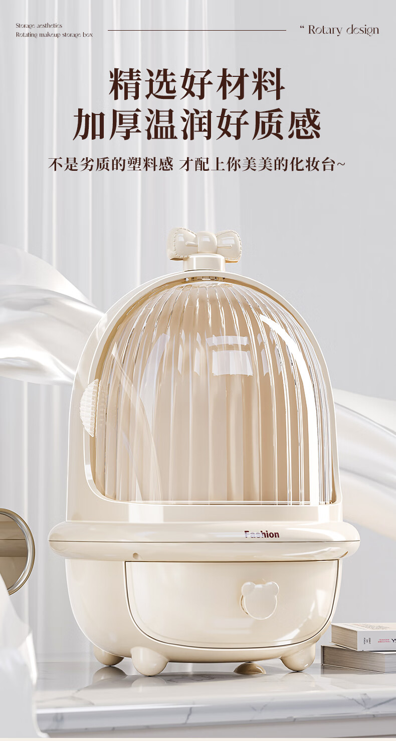 Mei Zhuo Fu Cosmetic Storage Box Light Luxury Drawer Desktop Storage Box Countertop Skin Care Rotating Storage Cabinet Large Capacity Dustproof Small Size - Cream White