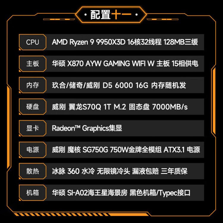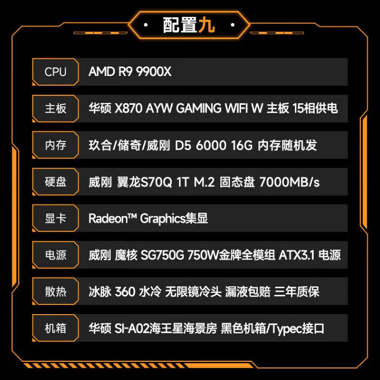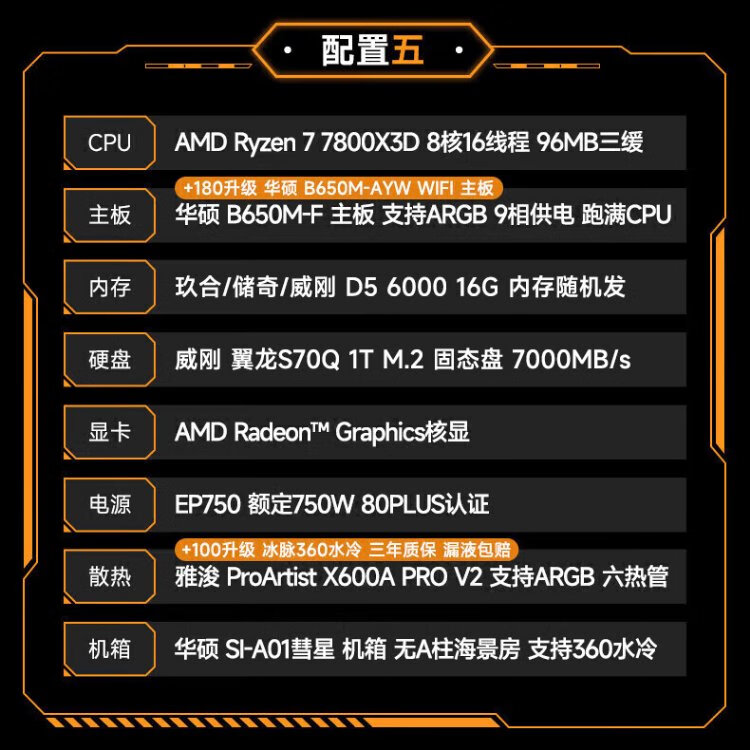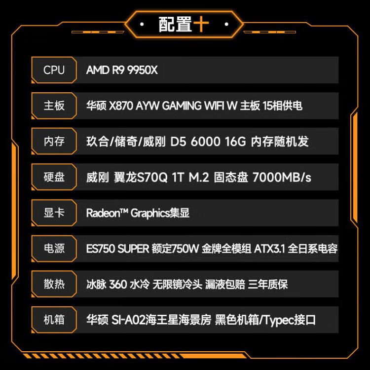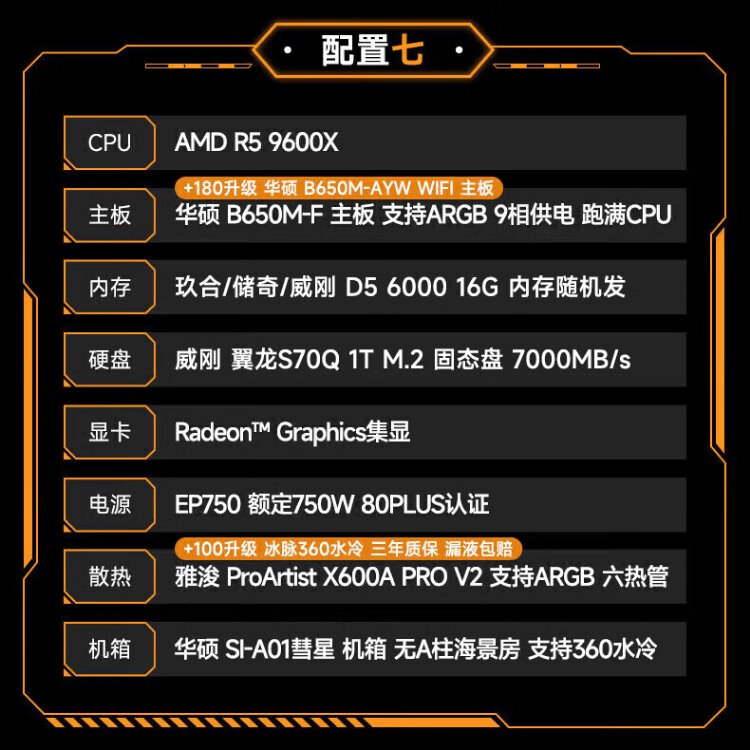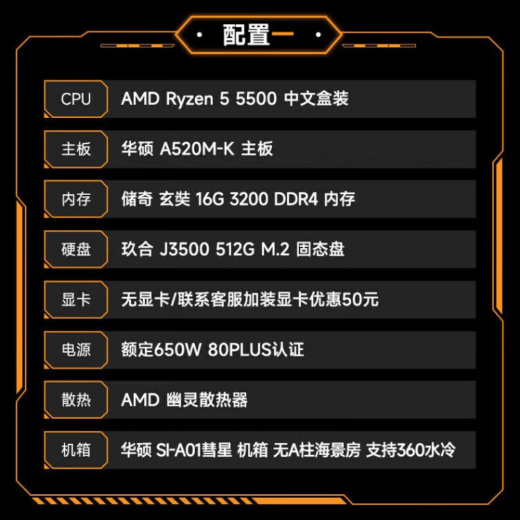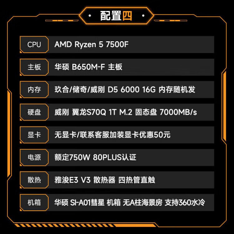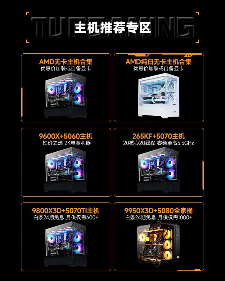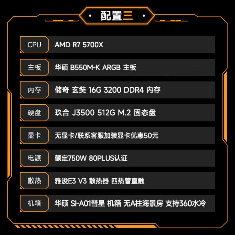 ASUS AMD cardless host 5600/5700X/7500F/9600X/9700X/7800X3D/9800X3D cardless barebone assembly computer host DIY complete machine configuration three 5700X丨16G丨512G