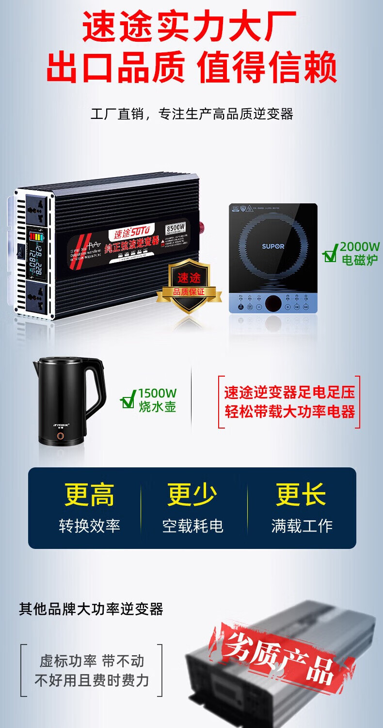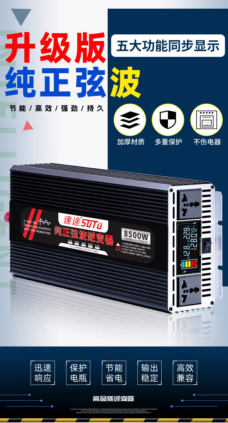 Sutu pure sine wave inverter high power vehicle household converter truck power supply electric tricycle stall universal pure sine wave 3000w 24V to 220V