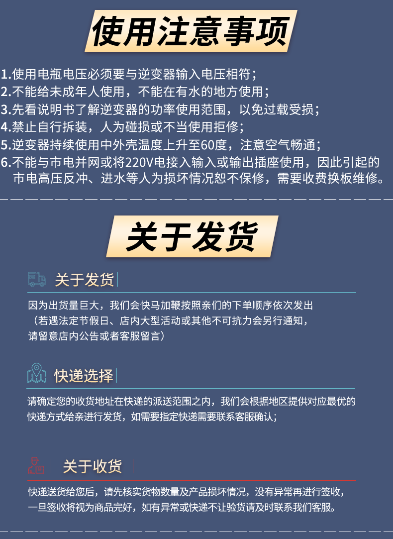 The following items (but not limited) might only could ship with specific logistic lines,