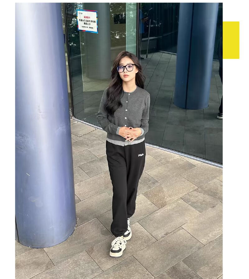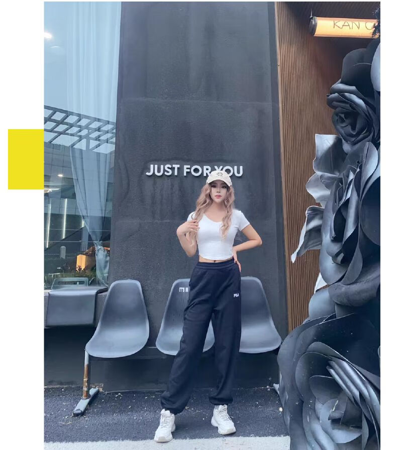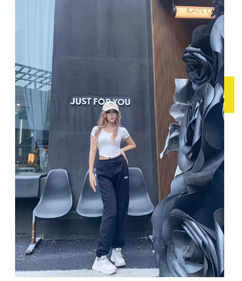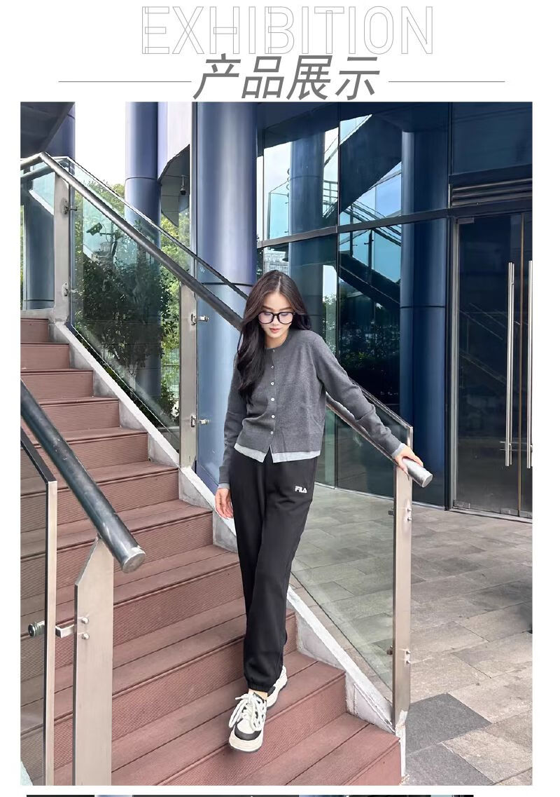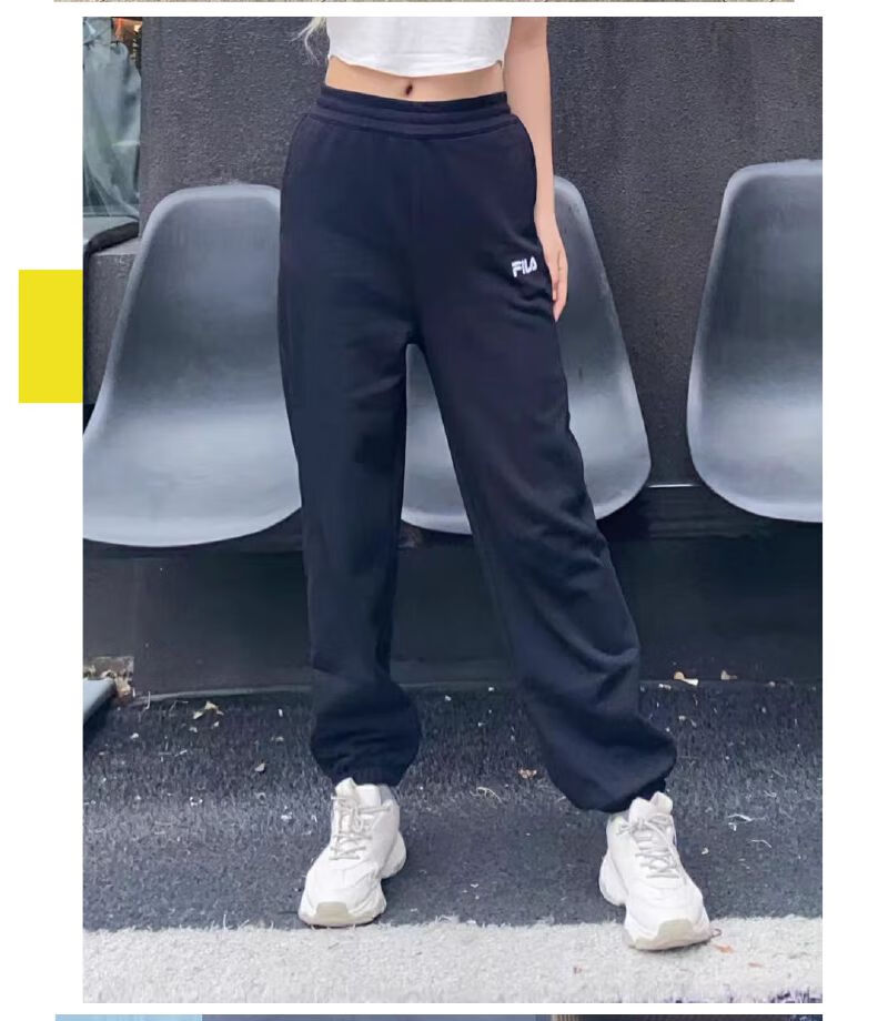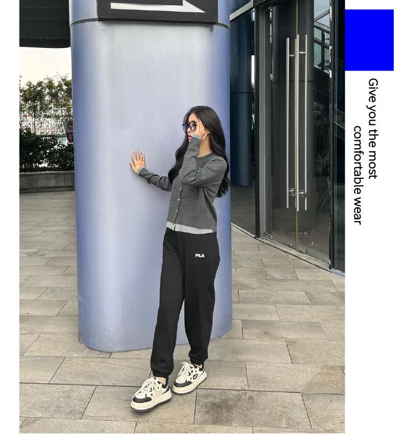 Fila 2024 Couple Sports Pants Autumn and Winter Style Velvet Men's and Women's Trousers Casual Pants Loose Tie-Leg Sweatpants F51W449601FBK Black Women's Style Velvet XS