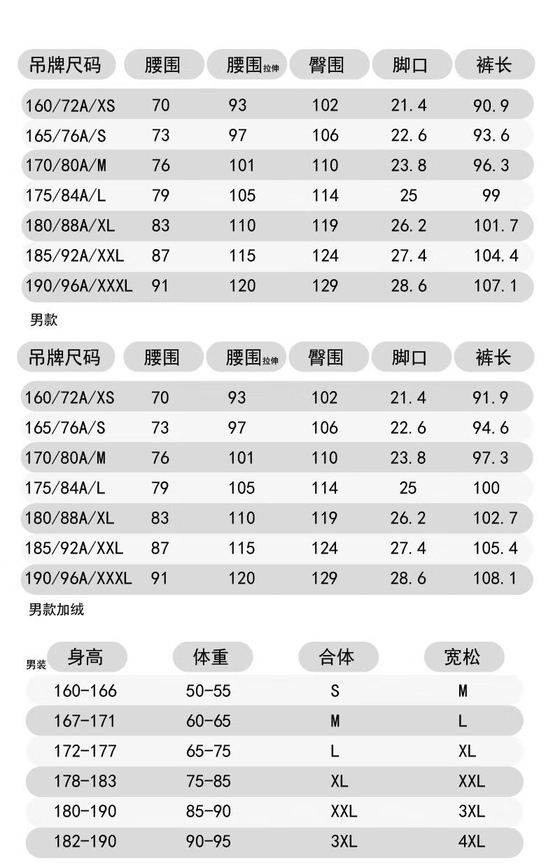 Outseam (cm) 99 cm 101.5 cm 104 cm 106.5 cm 109 cm