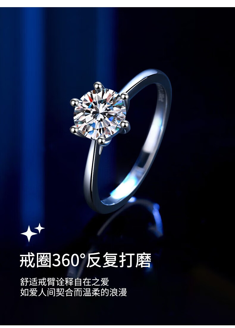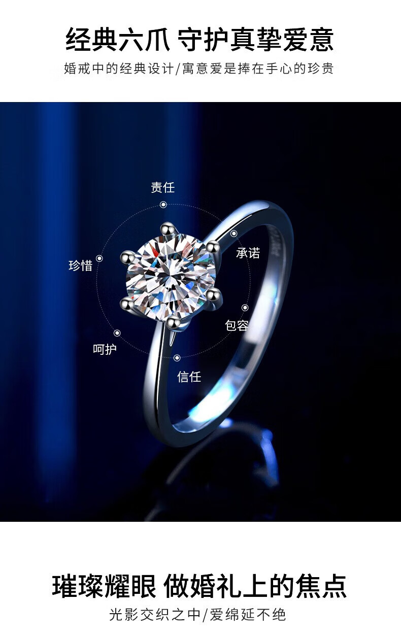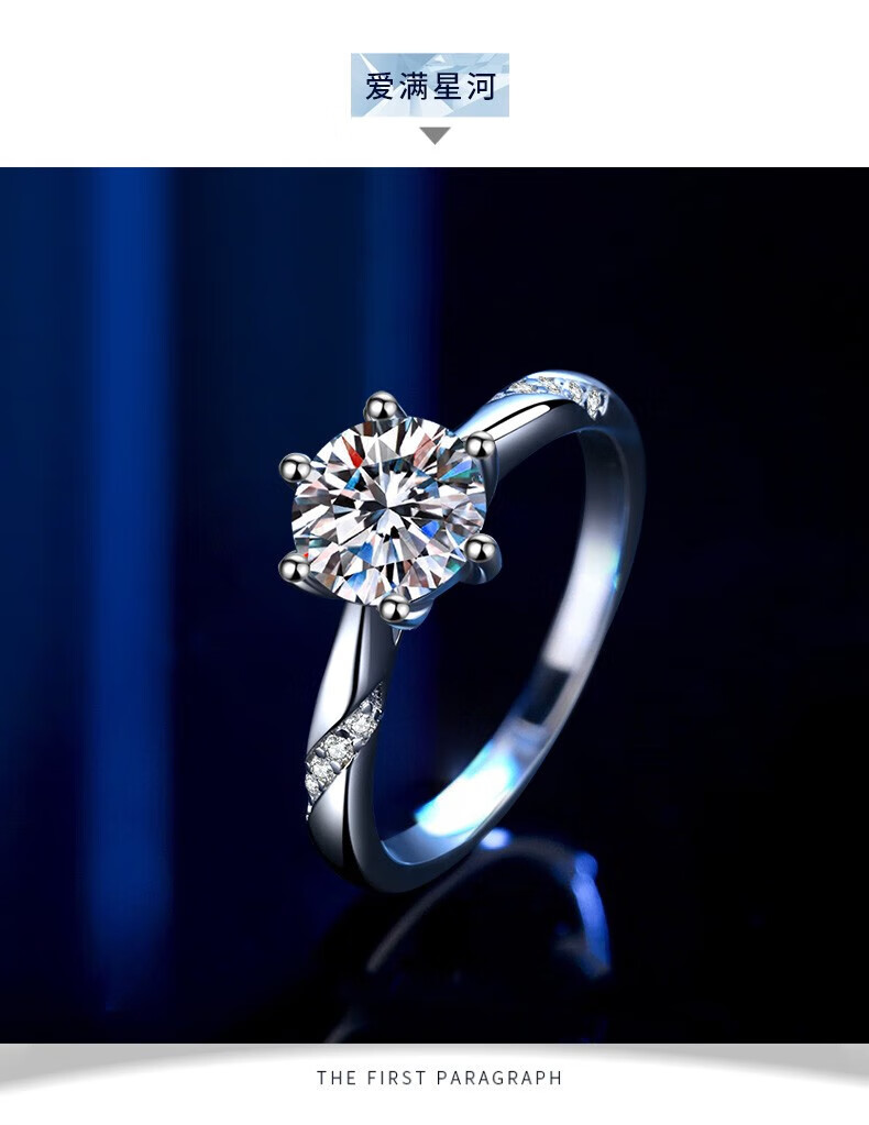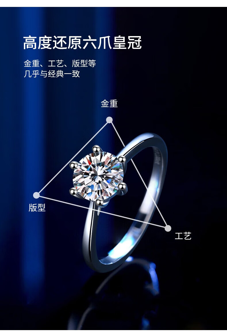 Zhou Dajin CHOW TAI KING One Carat Moissanite Diamond Ring Women's Knot Proposal Diamond Ring Couple's Valentine's Day Gift for Girlfriend and Wife's Birthday Classic Six Claw Diamond Ring One Carat Diamond