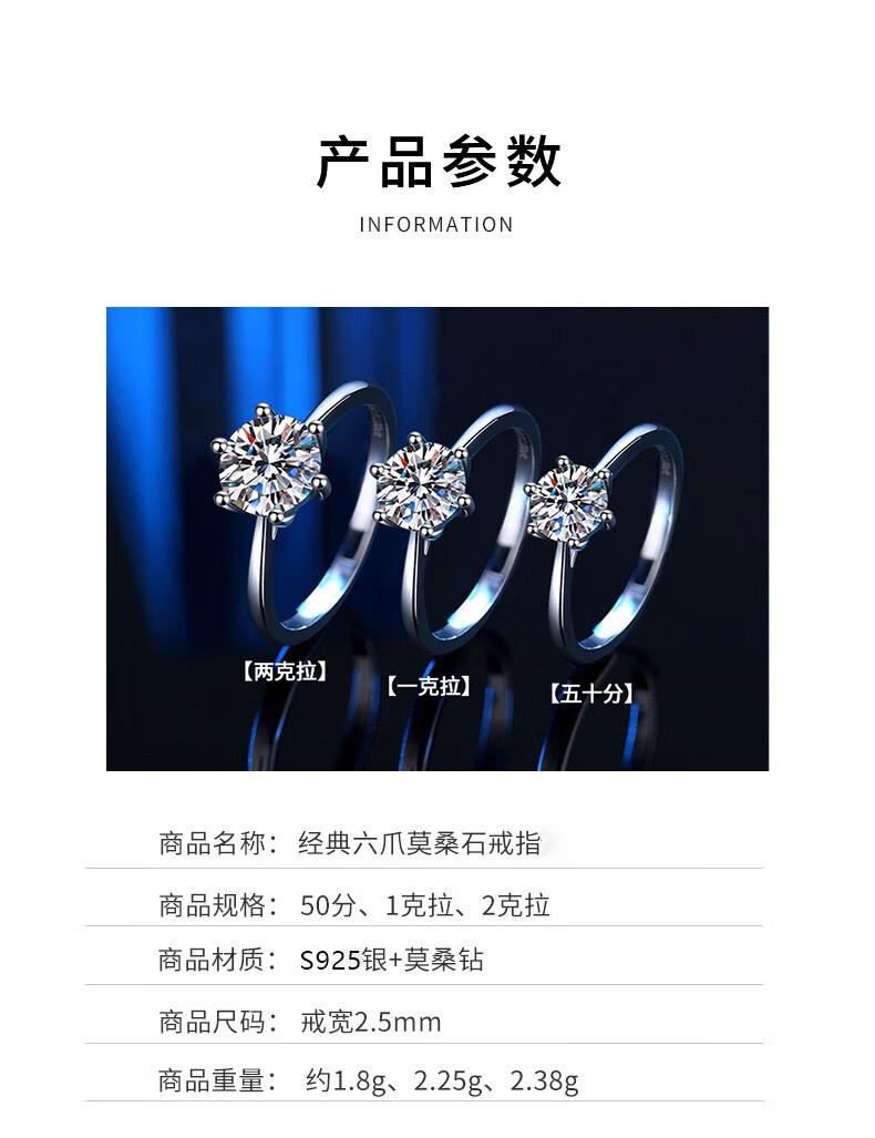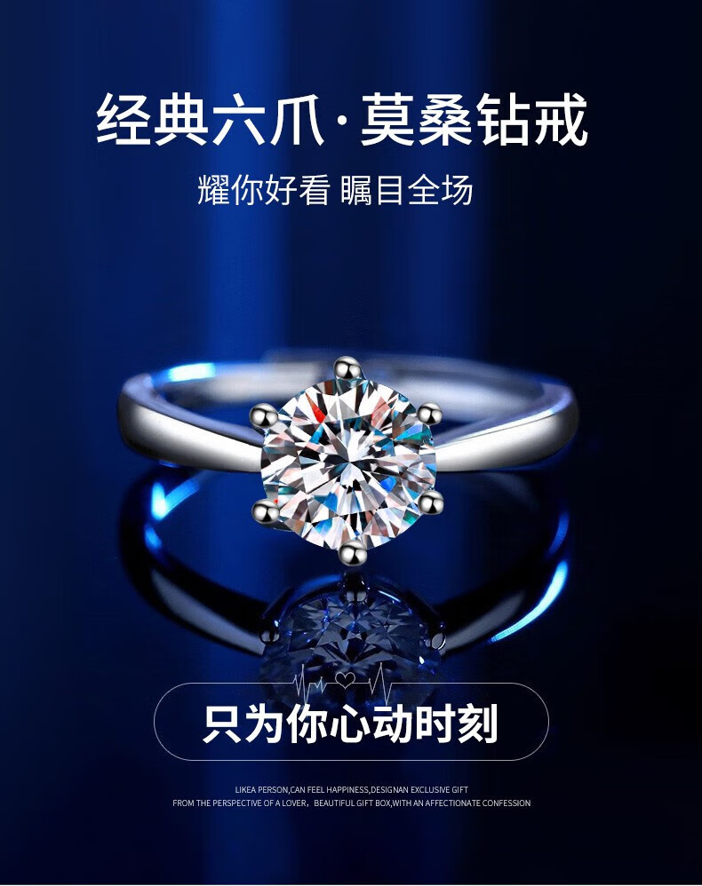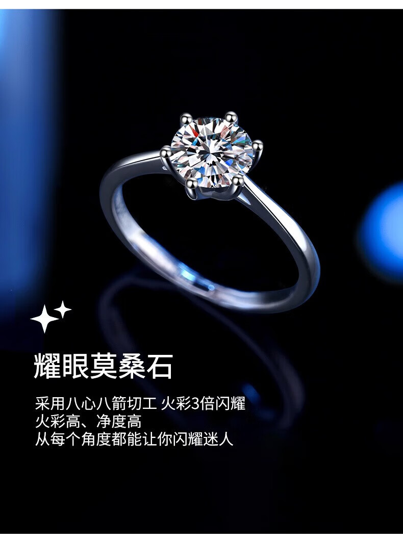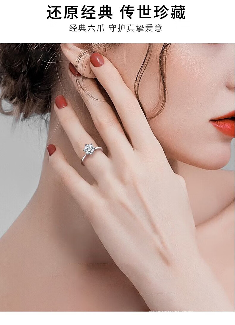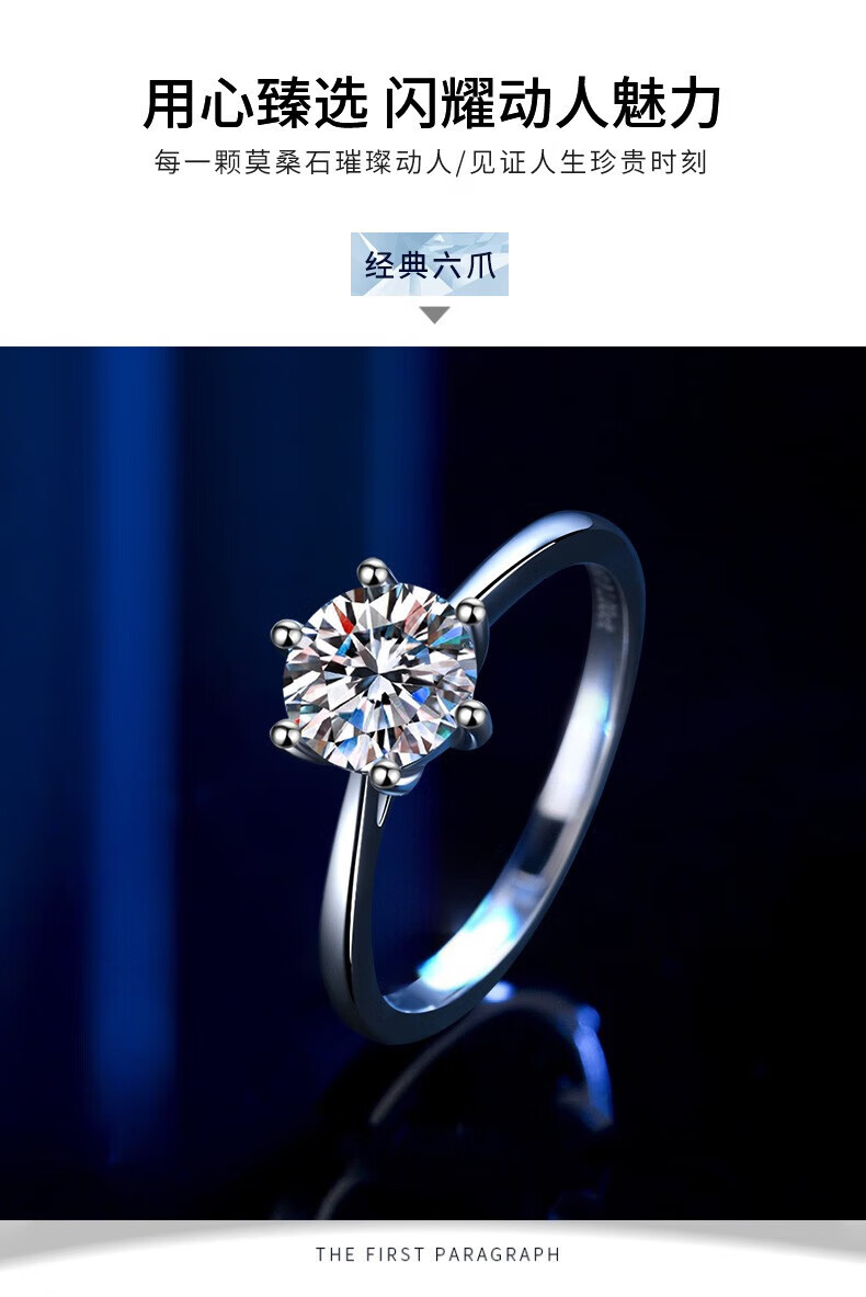 Zhou Dajin CHOW TAI KING One Carat Moissanite Diamond Ring Women's Knot Proposal Diamond Ring Couple's Valentine's Day Gift for Girlfriend and Wife's Birthday Classic Six Claw Diamond Ring One Carat Diamond