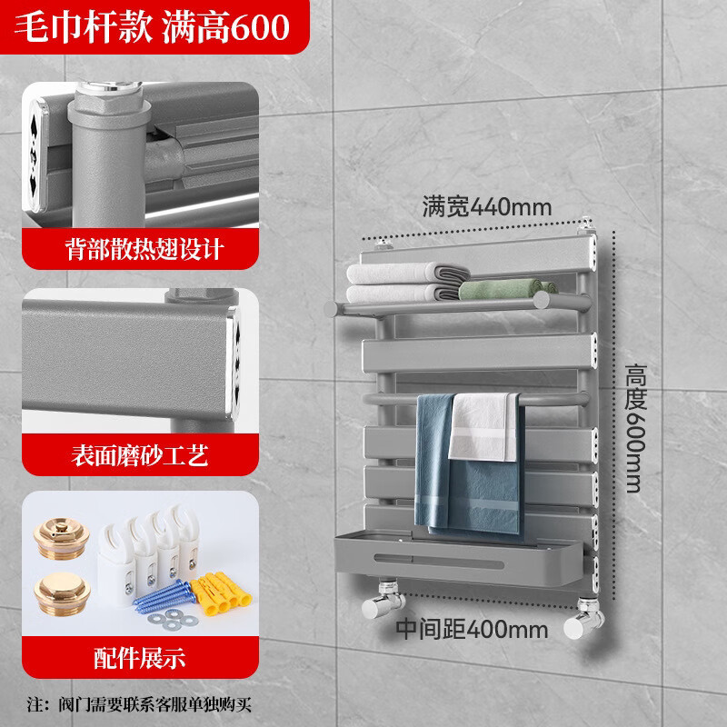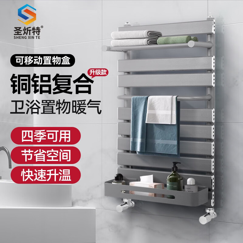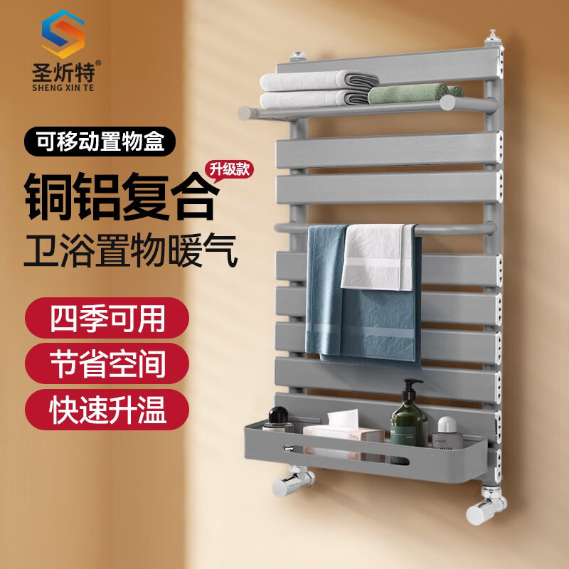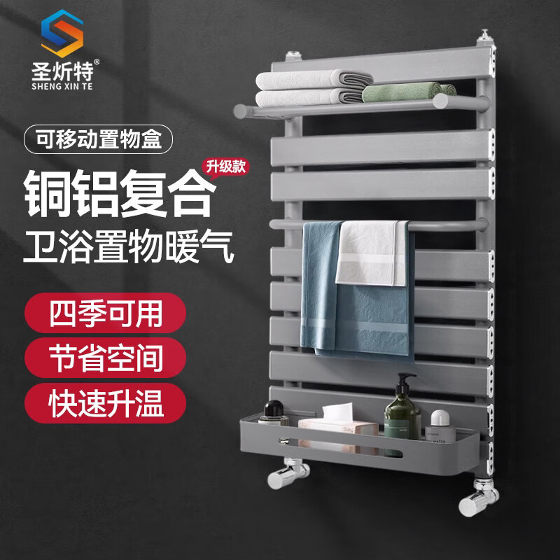 Qinkai radiator household copper-aluminum composite water heating radiator towel rack small basket bathroom wall-mounted bathroom toilet copper-aluminum basket luxury model gun gray - height 600mm