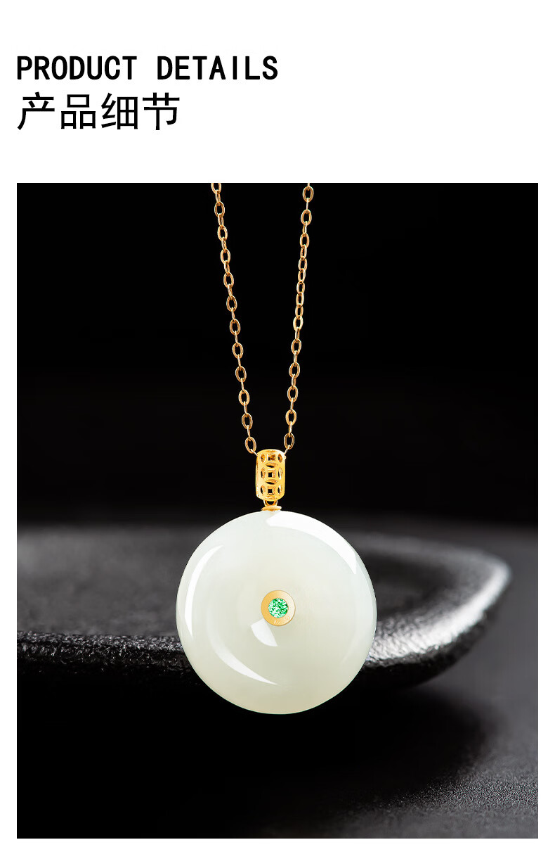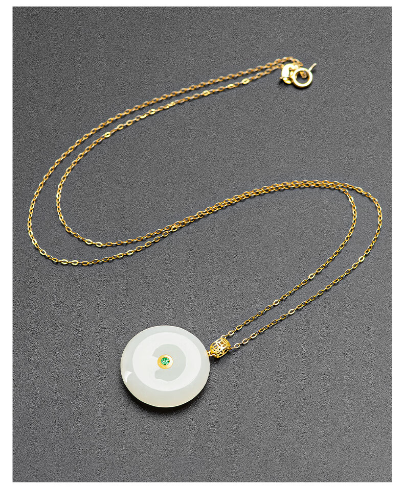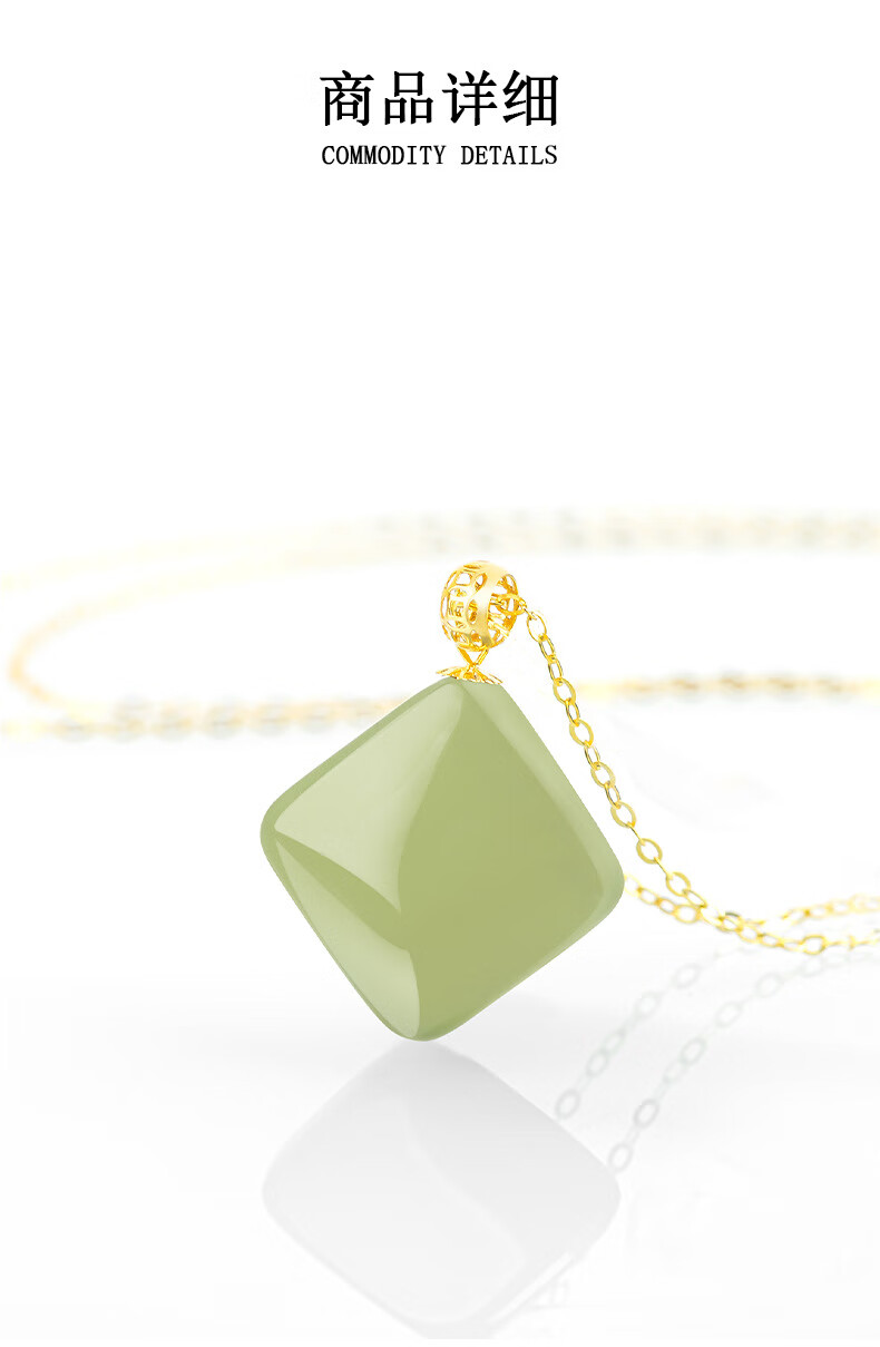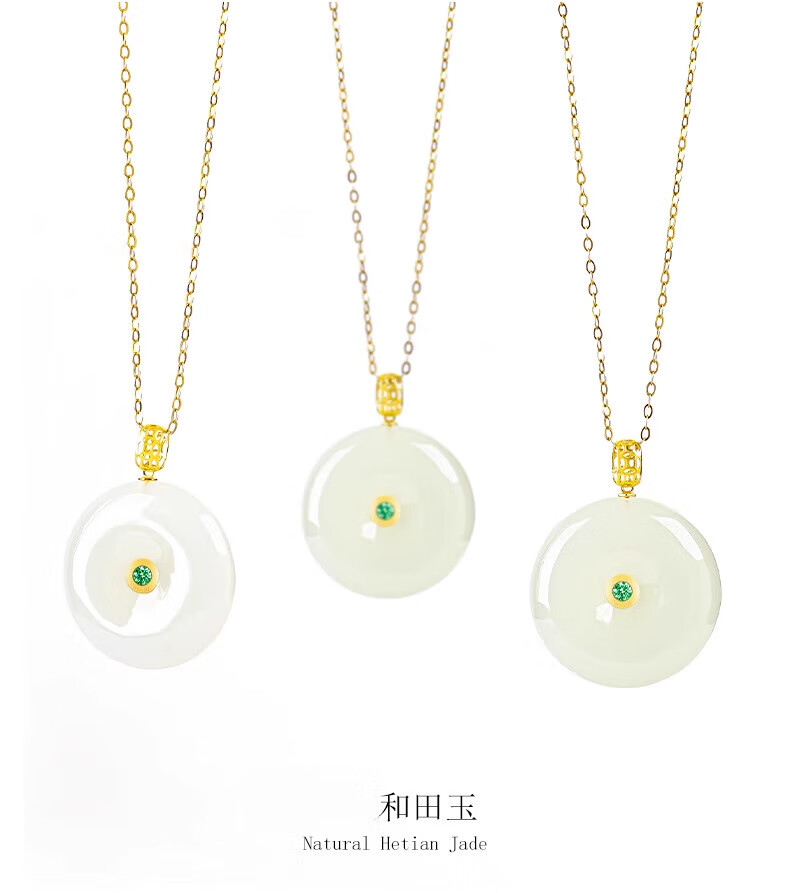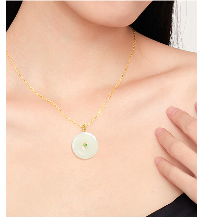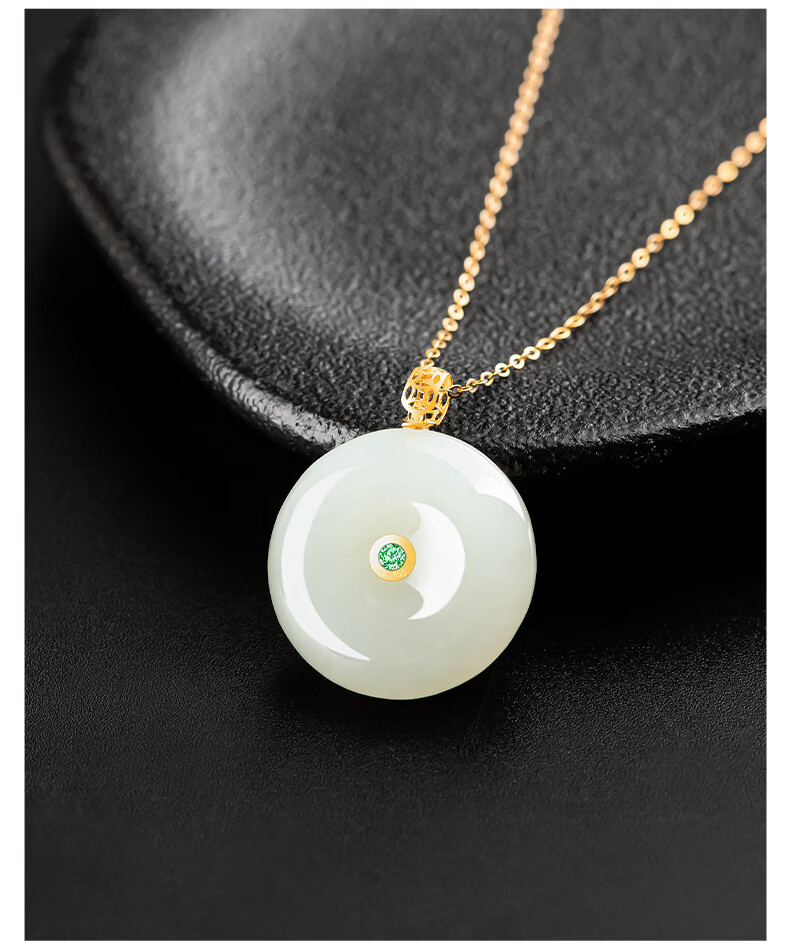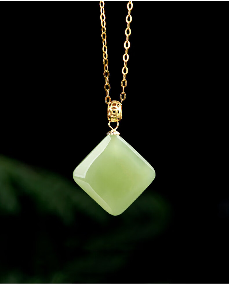 Jincuixi luxury high-end women's 18K gold inlaid necklace old material Hetian jade green and white jade safety buckle square jade pendant Hetian white jade safety buckle skin-friendly lanyard (size 45cm