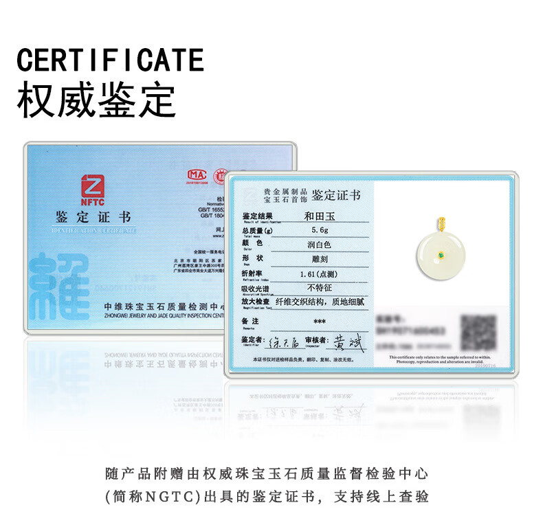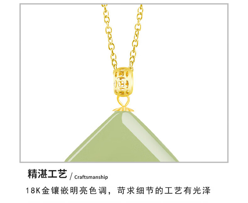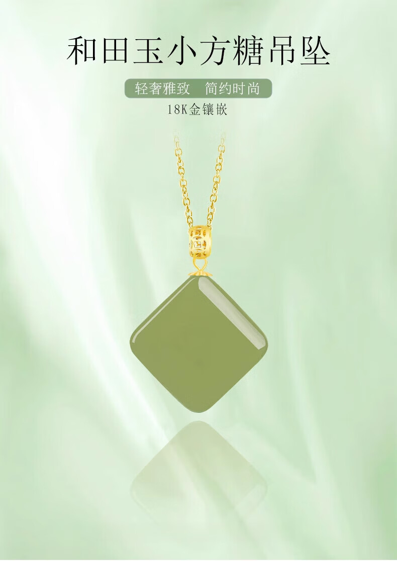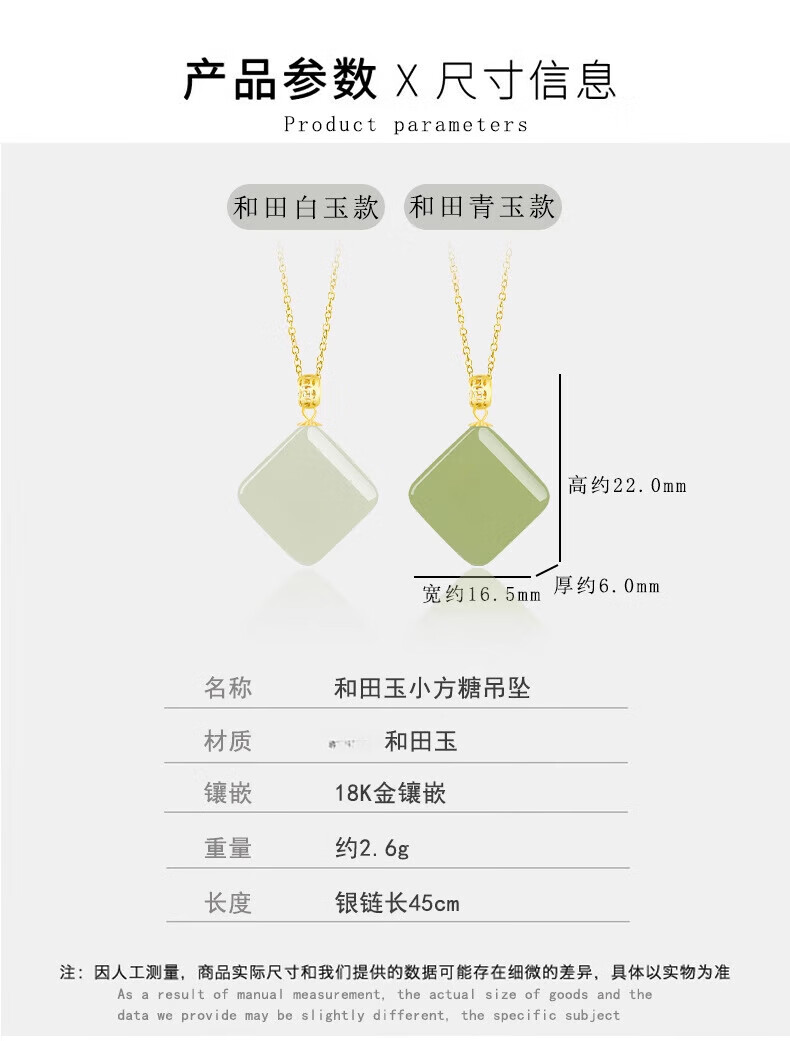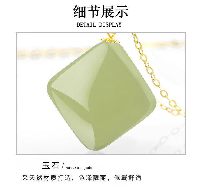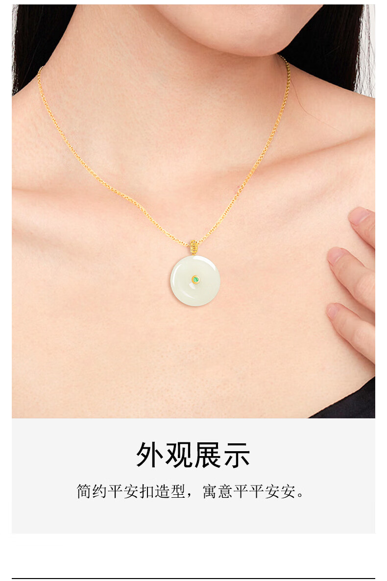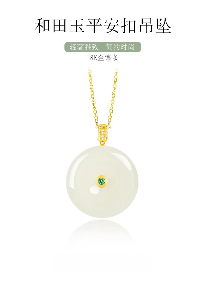 Jincuixi luxury high-end women's 18K gold inlaid necklace old material Hetian jade green and white jade safety buckle square jade pendant Hetian white jade safety buckle skin-friendly lanyard (size 45cm